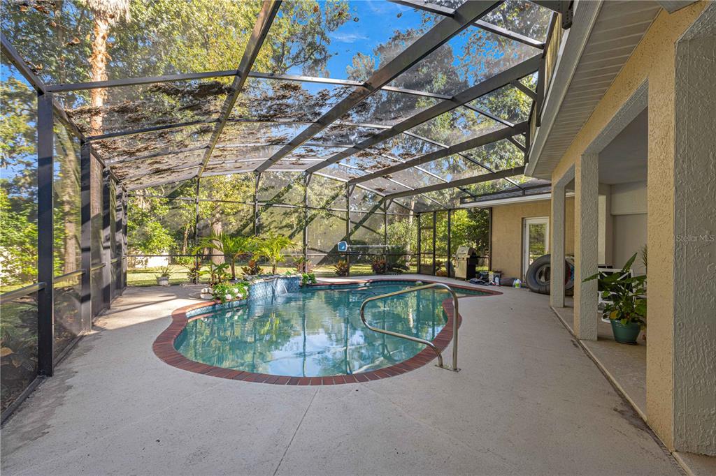 Located in the upscale and elegant lemonwood ii subdivision, this lovely and spacious 4 bedroom, 3 bath, split-floor plan home feels like a tropical paradise! featuring a floor plan where the house wraps around the beautiful pool area it is a the resort-like atmosphere. upon entering the home you will see the stately double door entry into the large foyer leading to one of the living rooms, formal dining area and to the spacious kitchen with stainless steel appliances and breakfast nook which opens to the family room with fireplace. there is a large master suite with walk-in closet, bath with double sinks, garden tub and shower. there are 3 other bedrooms and 2 additional full baths which adds to the wonderful living space available here. the home features vaulted ceilings and tile flooring in main living areas and bathrooms. 3 guest rooms are carpet. there is an inside laundry room and a 2 car garage. home is situated on a .86 acre lot with beautiful landscape, lighting and irrigation system. there is an additional climate controlled building that could be used for office, game room, converted into living quarters or other needed space. there is a circle paved driveway for additional parking and generac generator. roof 2014, hvac 2015. this is a no hoa neighborhood. call today for an appointment to see this dream home.4893 SW 4TH, OCALA, FL 34471