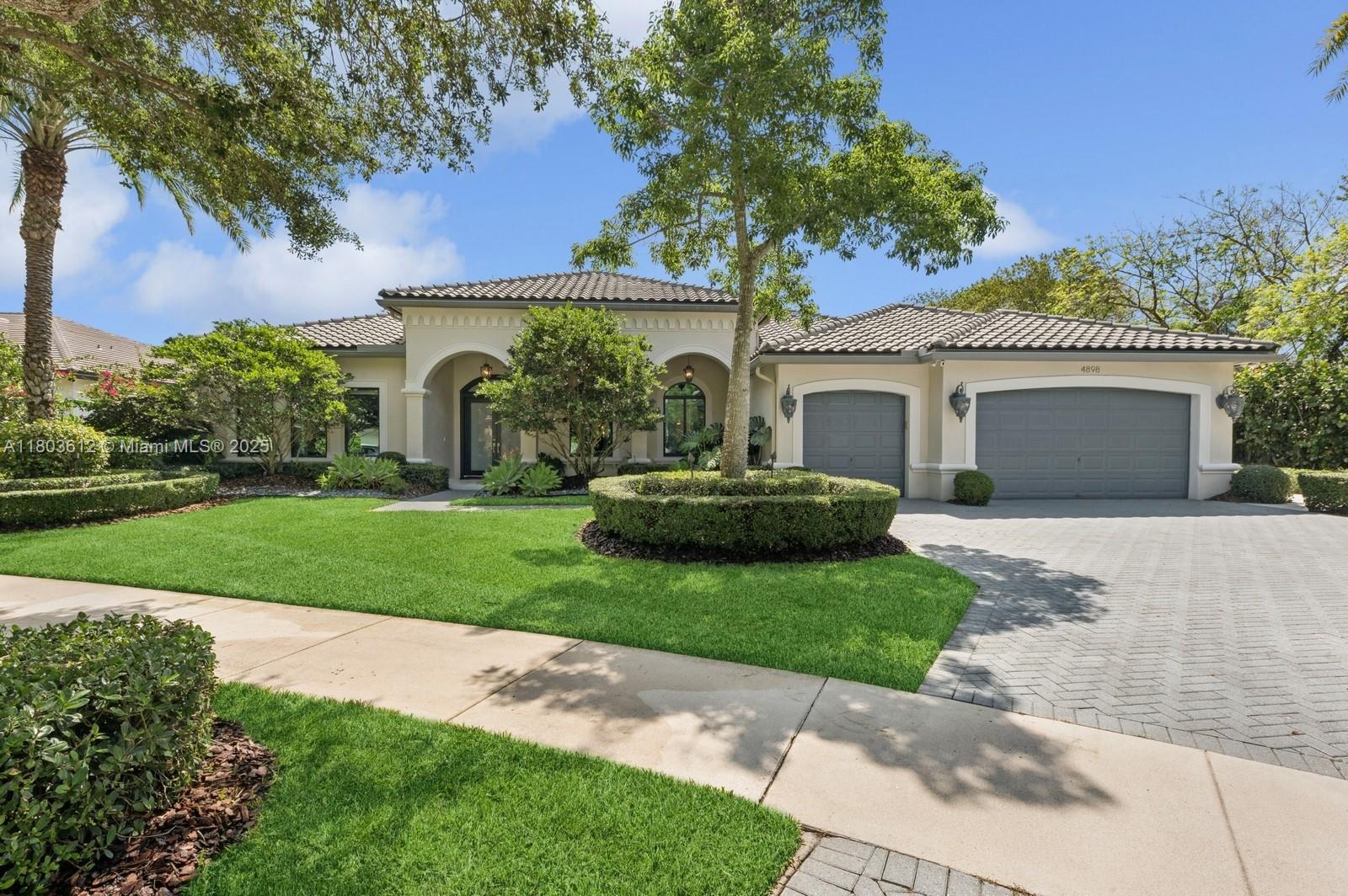Spectacular renovated home | move-in ready | gated community. this stunning 5br, 3.5ba home blends modern elegance with cozy family living. set on a 25,810 sf lot, it offers 5,343 sf of total space and over $700k in premium renovations. enjoy a new roof, impact windows, lutron smart home system, and high-end a/v throughout. the open-concept kitchen features top-tier appliances and an eat-in island. elegant wood floors flow through spacious living, family, dining, den, and office areas. fully updated bathrooms add a spa-like touch. the resort-style backyard boasts a gorgeous pool, custom pergola, and lush landscaping. equipped 3-car garage. located in a gated community with excellent access—this move-in ready home is a rare find. every detail has been professionally crafted. a must-see!4898 TROPICANA AVE, COOPER CITY, FL 33330