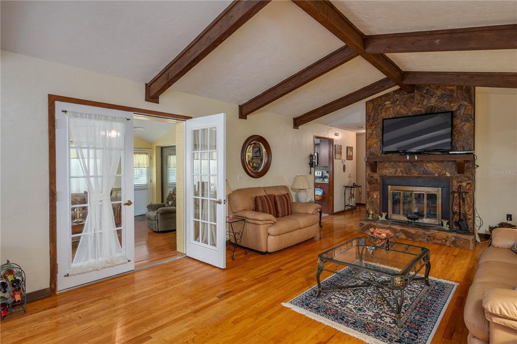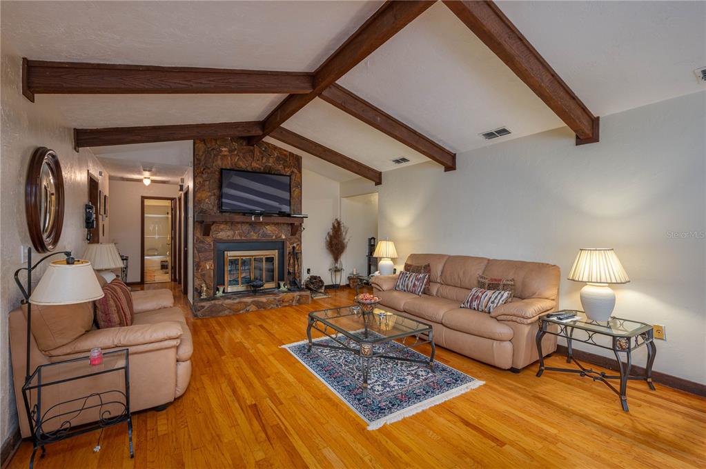 ****new price--sellers motivated to sell! welcome home! located in a quiet cul-de-sac in the desirable south lakeland fox run. this 3 bedroom 2 bath residence offers plenty of charm and character. if you're ready to move away from a standard cookie cutter home, look no further. upon entering, the home opens up to the living room/dining room area. from the wood burning stone fireplace to the original wood beam ceilings this area is elegant and beautifully crafted. proceeding further, step through the beautiful french doors into the large bonus living room that can be used for an entertainment area or office space and so much more! the spacious master bedroom is just off of the living room area with two walk-in closet spaces. the other two bedrooms are on the other end of the home for added privacy. the kitchen has wood cabinets, granite countertops, and stainless steel appliances. the kitchen also has a cozy breakfast nook area to enjoy your morning coffee. the home has an inside laundry that comes complete with washer and dryer. step outside to your private backyard oasis to find a beautiful outdoor space perfect for backyard barbecues. mature trees including banana and grape trees line the backyard. it is here that you can enjoy your very own in ground pool and 11x13 covered deck to savor the year round florida weather. the backyard is fully fenced and has a dedicated carport space to park your rv, boat, or other toys! roof (2017). no hoa! george jenkins high school, the ymca, south florida avenue, and a hosts of shops and restaurants are minutes away. enjoy an easy commute to tampa and orlando via the polk parkway.4910 FOXRUN PL, LAKELAND, FL 33813