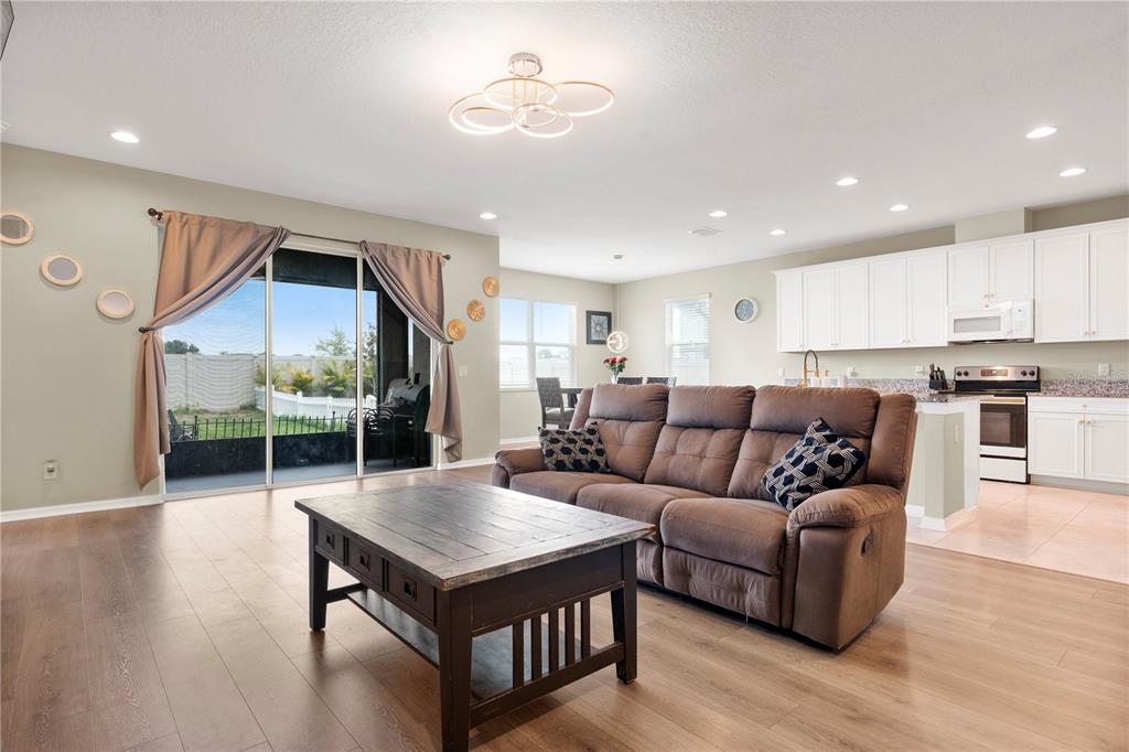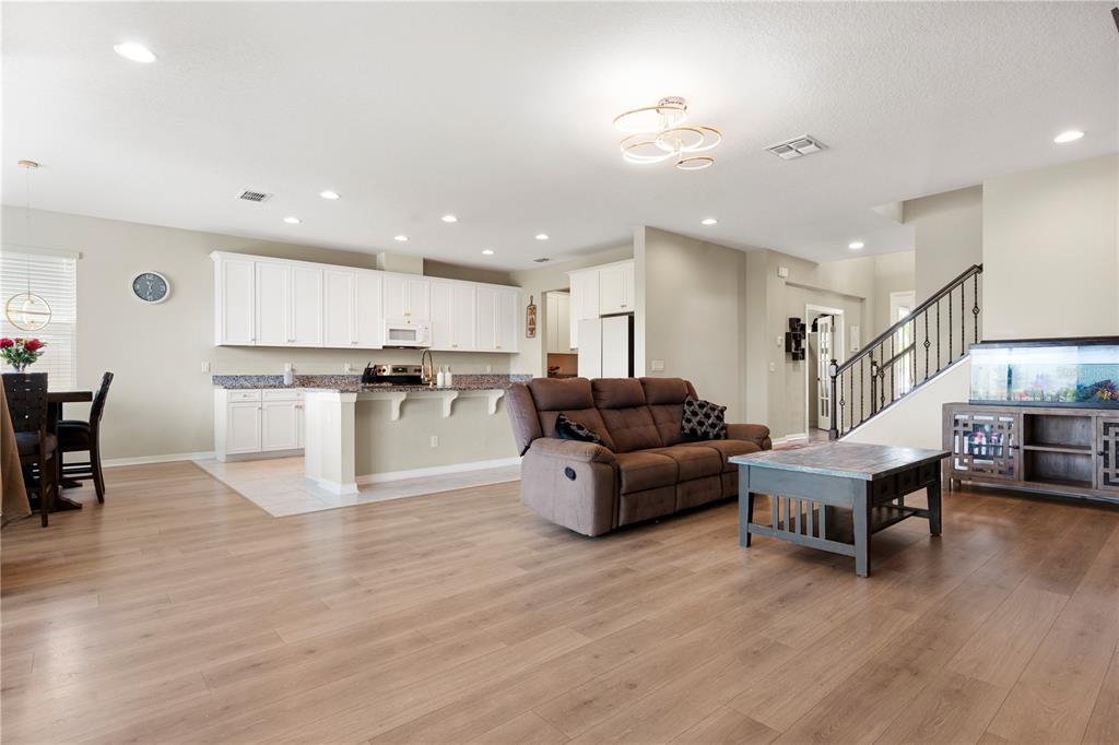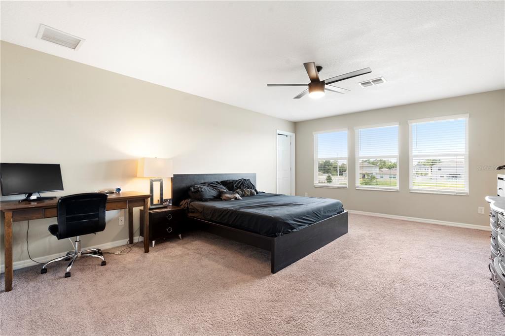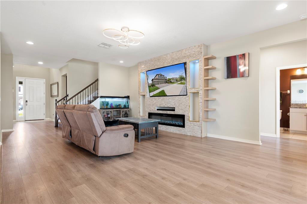 Beautiful 5 bedroom, 3 baths & 3-car garage contemporary style mi home centrally located in wimauma! this home is close to publix, banks, ellenton mall, eateries, pet venues, walgreens, beaches, & much more!!! in addition, seller's preferred lender offering up to 1% back towards buyer's closing costs as well! great room style concept floorplan with a first floor private den with french doors. perfect for those that work at home or a home based business. beautiful kitchen with upgraded appliances, granite countertops, large eating/serving island with a ss sink & gooseneck faucet, upgraded hardware, new samsung refrigerator, butler's pantry & large walk-in pantry. spacious dining room overlooking the rear yard with an upgraded light fixture. enough room for friends & family with this large living space to entertain in & showcasing upgraded laminate flooring. updated with a built-in to house a large tv, shelving & electric fireplace. easy home to dress to impress. mother-in-law/guest suite on the first floor along with a full bath. family bedrooms all upstairs including a super large master suite with 2 large his/her walk-in closets & en-suite with a dual sink vanity & separate shower stall upgraded with rain shower head & a rinse wand. 2 large secondary bedrooms. 4th bedroom could be used as a second office space with a large walk-in closet. huge bonus room . . . perfect to use as a media room, game room, play area, arts & crafts studio, hobby room & more! all of this plus a fabulous laundry room with upper shelving & extra storage space for household machines, place for suit cases, christmas things & more! 3-car garage for your cars & exterior toys! fenced-in backyard for family fun & also a dedicated area for your 4-legged family members too. community pool, club house, playground, tennis & basketball courts just down the street & a great place to meet new friends! call today for your private showing!4917 EAGLE ROCK, WIMAUMA, FL 33598