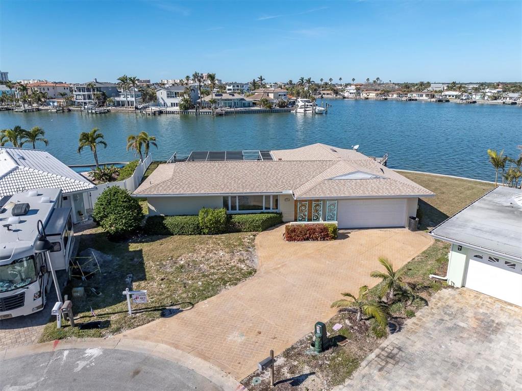 Best location - 148 feet curved waterfront on most desirable street and deed-restricted community, the most prestigious bath club blvd. n., in north redington beach! 2125 sqft, one-story block 3 bedroom 2 bath block home with 2-car garage, newer high impact windows & garage door, tile roof, and pool was remediated after hurricane helene on sept. 26th, 2024. quarter acre (0.24) pie-shaped lot with newer 148ft seawall (new cap) on dead end street, facing north-west: build your multi-story castle overlooking stunning open waterfront with glorious sunsets and watch dolphins and manatees play in your backyard. owner had the dock pilings covered last year, however the dock is in need of repair. sold strictly as is for cash only. go take a look, bring your contractor and make an offer!495 BATH CLB N, NORTH REDINGTON BEACH, FL 33708