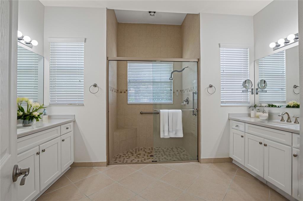 One or more photo(s) has been virtually staged. this bright and airy rialto model is move-in ready and nestled on an oversized homesite in valencia lakes, tampa bay’s premier 55+ active community. recently updated by the homeowners, this beautiful home boasts new luxury vinyl plank flooring, fresh interior paint, refinished white-painted maple cabinets with new hardware, a carrier hvac with uv light installed in 2019, and more. as you approach, you'll be greeted by a 3-car garage, lush mature landscaping, and extra space between homes, providing a sense of privacy and tranquility. inside, the rialto plan offers 3 spacious bedrooms, 2 full baths, 1 half bath, and a 3-car garage. the home’s main living areas feature 17x17 floor tiles laid on a diagonal, ensuring an elegant and easy-to-maintain aesthetic. best of all, there’s no carpet anywhere! the formal dining room, with its coffered ceiling and crown molding, sets the stage for elegant entertaining. the expansive great room, kitchen, and casual dining areas seamlessly flow together, with direct access to the 25 x 10 screened and covered lanai. this outdoor space is perfect for relaxation, offering lush landscaping and a high berm for added backyard privacy. the open-concept gourmet kitchen is a chef’s dream, with 42" white-painted maple cabinets, designer brushed nickel hardware, a built-in cabinet pantry, under/over-cabinet lighting with crown molding and valance, glass cabinet doors with downlighting, granite countertops, a serving bar with an 18" extended bar top, tumble-stone marble backsplash, and stainless steel appliances. the primary suite is a peaceful retreat featuring a coffered ceiling, crown molding, luxury vinyl plank flooring, and two walk-in closets. the primary bathroom includes separate vanities, corian countertops, and a large walk-in shower with a built-in seat and tile to the ceiling. designed with privacy in mind, the split bedroom layout places the two secondary bedrooms separate from the master suite. bath #2 features a tub/shower combo with tile to the ceiling, white-painted maple cabinets, and corian counters with a banjo top. a conveniently located powder room with a pedestal sink serves guests. the laundry room is fully equipped with a washer/dryer, upper cabinets for storage, and a utility sink with built-in cabinetry. additional upgrades include a whole-house water softener system, a 50-gallon water heater with a thermal expansion tank, ceiling fans, light fixtures, crown molding throughout, rain gutters, an epoxy garage floor, and garage overhead storage racks. located in the valencia lakes community, residents enjoy the resort-style amenities, including a 40,000 square foot clubhouse, pools, fitness classes, pickleball, tennis, a bistro, art clubs, a 24-hour fitness center, live shows, and more. experience the dream lifestyle of resort-style living every day. don’t miss out on this move-in ready beauty!4963 SAPPHIRE SOUND, WIMAUMA, FL 33598