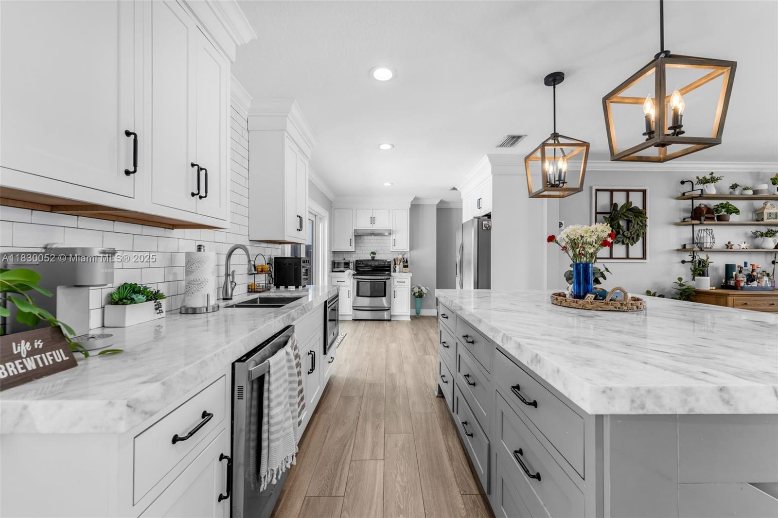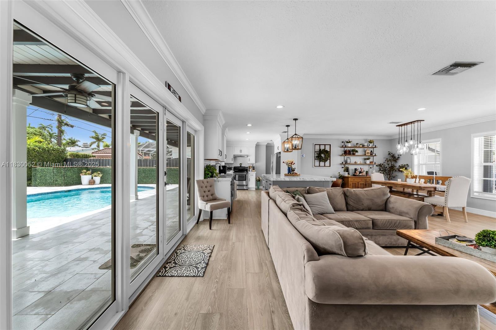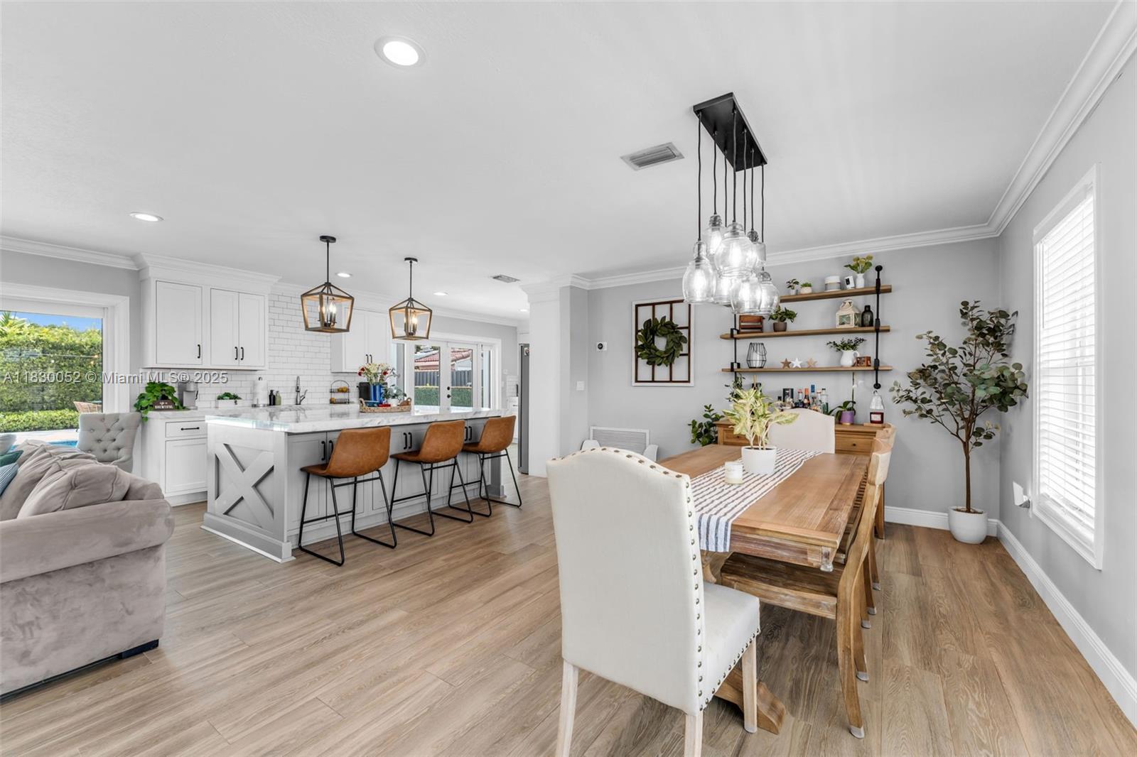Welcome to this beautifully remodeled home blending modern updates with timeless farmhouse charm! featuring 3 beds, 3 baths, plus additional room to be used as a bedroom, office space, play area etc, a spacious family room and open-concept living. enjoy cooking in the stylish kitchen featuring brazilian quartzite countertops, and a 7'x5' island with storage on both sides. unwind in the roomy living area and host gatherings in the backyard oasis complete with pool and terrace. wood plank porcelain tile flooring. features impact windows and doors, power generator with transfer switch, wardrobe system in primary bedroom, and new washer/dryer. updated pool, new diamond brite, tile, plumbing, therapy jet system, gas water heater and carrara marble pavers with updated cabana bath. move-in ready!5002 SW 87TH PL, MIAMI, FL 33165
