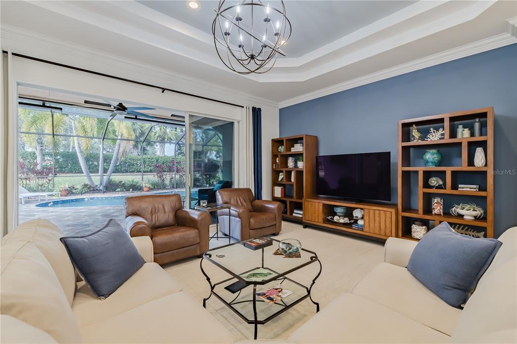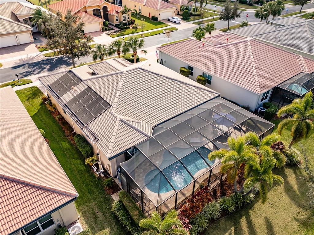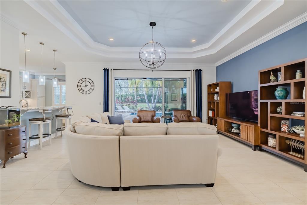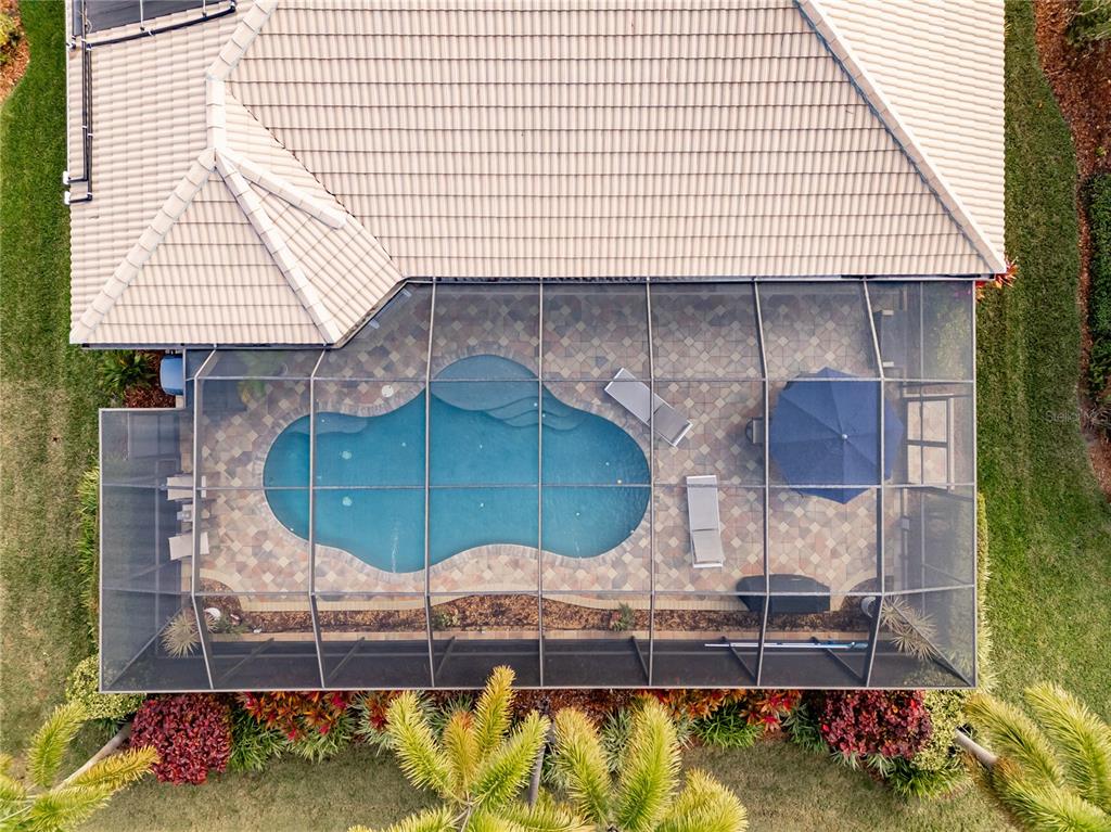If you desire an exceptional house in an exceptional community, here it is. this 2,180sf livorno model has 3 bedrooms, a great room, dining room, and kitchen with a dinette. oh, did i mention that this livorno has a spectacular backyard with a gorgeous pool. built by gl homes in valencia lakes, in tampa bay's premier 55+active adult community, this is a house that you will be unreservedly proud to call home. beyond the screened-in front portico, are beautiful etched-glass french double-doors leading into the foyer with porcelain tile framed by marble borders, and a 15' ceiling with a chic chandelier. the open floorplan is anchored by an expansive great room which features a double-tray ceiling and has a commanding view of the dining room, kitchen, lanai and pool. the kitchen is spectacular. luxury granite counters adorn prime 42” solid-wood cabinetry: lower cabinets are soft-close pot drawers & upper cabinets have undermount lighting & soft-close doors. the discerning chef will love the lg thinq range with convection oven, the lg thinq microwave with extendable range hood, the samsung three door fridge, and a near-silent kitchen-aid dishwasher. the dinette is perfect space for casual or intimate meals and features a custom dry bar. the master bedroom features a 10’-to-11’ tray ceiling, a full-length glass door to the screen room, engineered hardwood floors, 2 bespoke walk-in closets and a gorgeous ensuite bathroom with a w/c for the commode. the no-step shower has floor-to-ceiling porcelain tile. the 2 separated vanities are capped by luxury granite counters and a stunning mosaic-glass backsplash. bedrooms 2 and 3 are at the opposite corner of the house, have lots of natural light, and provide both privacy and great comfort. the second bathroom features italian marble tile walls, a glass-enclosed shower with 2 showerheads, and a cabinet vanity with luxury granite. the laundry room features washer, dryer and a cabinet vanity with an uber-lux granite counter and utility sink. all common areas feature exquisite over-sized porcelain tile, crown molding, led recessed lighting and modern light fixtures and windows throughout are adorned with plantation shutters. the front french double-doors and the master bedroom door feature graber dual shade blinds. this home is amazingly well-appointed. the garage is 20’x20’ and has a superior epoxy floor and lots of overhead storage racks. environmental comforts are provided by a 4-ton trane hvac with humidity controls, a recently installed hot water tank, and a culligan water-softener system and the kitchen has a water filtration system. the backyard is a space to behold. the extended screen room spans the full 61’ of the house and is home to a 27’x18’ lighted gunite pool that was resurfaced and tiled in spring 2022 and is equipped with an in-floor cleaning system, solar panel heating, a new pool pump and salt-water chlorinator, and a new pentair clean & clear filter was installed in 2024. elaborate pavers surround the pool and create a large pool deck for casual times and a 22’x8’ covered lanai from which you can watch your favorite events on the exterior wall-mounted tv. this livorno model is exceptional. seize the day and start living your idyllic life with the knowledge that you have earned this treasure. furniture indoor and outdoor is negotiable. note: the bistro by mattison's is scheduled to open in spring 2025.5006 RUBY FLTS, WIMAUMA, FL 33598