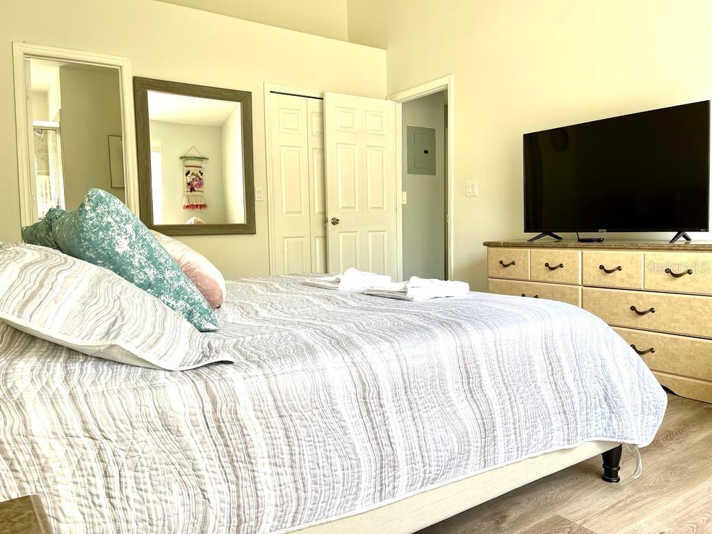 Spacious fully furnished and beautifully renovated second floor 3-bedroom 2 bath condo close to the i-92 resort area, outlet malls and attractions. this complex offers a large community pool, spacious clubhouse, tennis court. the large open concept living & dining room beautifully decorated provide spacious and entertainment. completely and beautifully decorated with disney themes, ready to immediately receive your guests from different platforms and generate generous income. convenient location of this unit just under 20 minutes from disney world, close to universal theme parks, orlando’s famous shopping, excellent golf courses and incredible restaurants. zoned for short-term rental, unit has very good rental history. newer a/c and w/h . nest thermostat. unit rented until march/2025.5009 LAGUNA BAY #42, KISSIMMEE, FL 34746