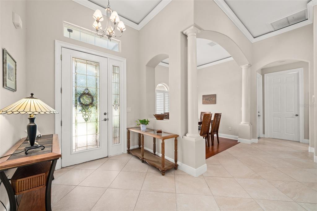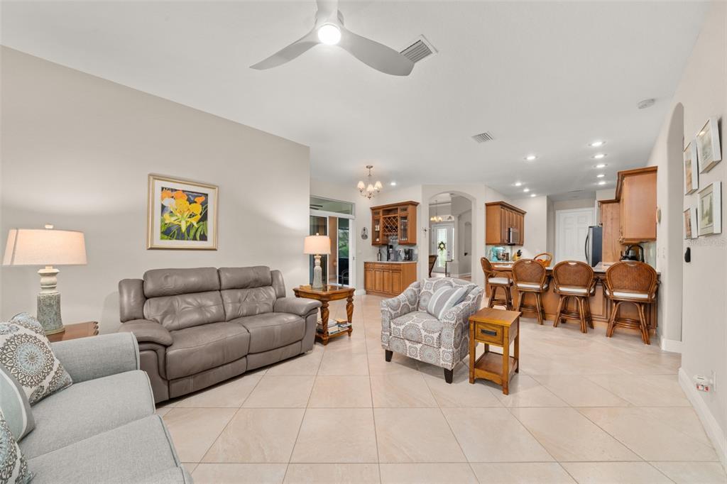 In the sought-after magnolia place community of sun n’ lakes, this home blends timeless style with everyday comfort— and it starts from the top with a 2023 concrete barrel tile roof, a major upgrade built for beauty and durability. inside, the open split-bedroom floor plan is filled with light and features 12-foot vaulted ceilings, 8-foot doors, and a host of custom details—tray ceilings, angled ceramic tile floors, crown molding with accent lighting, 5-inch baseboards, rounded corners, and upgraded remote-control ceiling fans. the kitchen offers solid wood cabinets, granite counters, under-cabinet lighting, recessed lights, and stainless-steel appliances less than four years old. a built-in dry bar in the dining area serves as a coffee nook or cocktail station. the primary suite is a peaceful retreat with two walk-in closets and a spa-inspired bath boasting dual sinks, a walk-in shower, private water closet, and linen closet. two guest bedrooms, including one with a built-in desk, share a full bath with a glass-enclosed tub/shower combo. step outside through hurricane-rated sliding doors to a screened porch with paver flooring—perfect for enjoying florida’s year-round weather. the property runs on city water and sewer, features well irrigation, and has a professionally maintained lawn with regular fertilization and pest control. living here means access to a community pool, clubhouse with restaurant, two premier golf courses (deer run & turtle run), plus on-site police and fire services. all of this just minutes from advent hospital, shopping, dining, and more.5009 MAGNOLIA, SEBRING, FL 33872