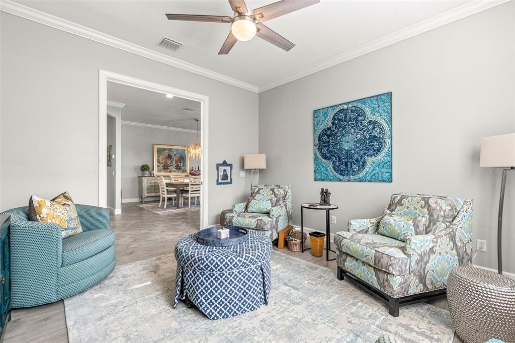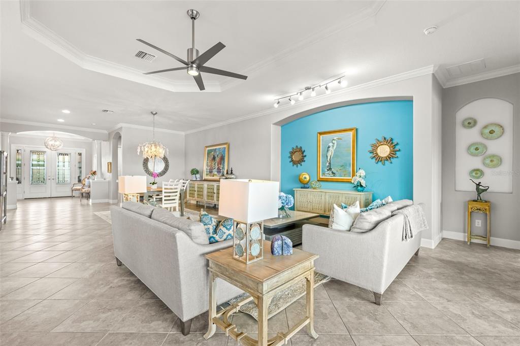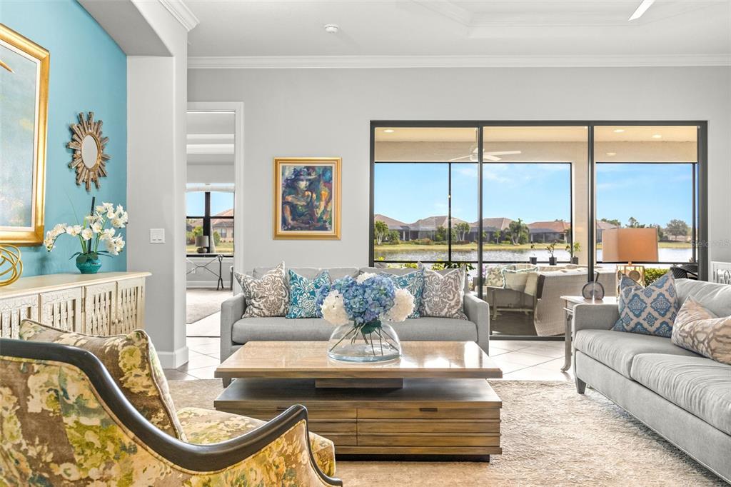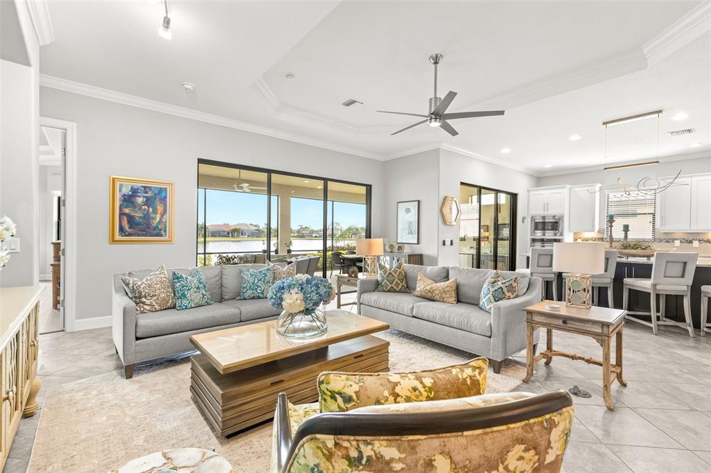This stunning golf deeded home offers over 3,000 square feet of bright, airy living space in the amenity-rich esplanade golf and country club, nestled in the heart of lakewood ranch. this popular pallazio model is designed with an open floor plan and features three spacious bedrooms, three full bathrooms, a versatile den/office, and a gourmet kitchen. the large lanai is the perfect setting for outdoor living and a place to enjoy a beautiful sunrise. thoughtfully upgraded, this home boasts high tray ceilings, elegant crown molding, and modern tech enhancements like integrated wiring for speakers and security cameras. a brand new hvac system was installed in march 2025. the three-car garage includes a unique tandem area that has been enclosed as a functional workroom but can easily be converted back to its original open layout. for peace of mind during hurricane season, high impact roll down shades have been installed for the lanai and each of the side and back windows have been fitted with high impact kevlar material that is easy to install. the front door, front window and garage door are high impact rated on their own. all this and located in a non-evacuation zone! esplanade is resort-style living at its finest! not only does it have an incredible 18 hole golf course, esplanade offers an unmatched lifestyle with an array of world-class amenities, including: • multiple workout spaces • resort-style pools • the bahama bar, a tiki bar for casual dining and drinks • the barrel house, a full-service restaurant • a dog park • a playground • tennis, pickleball, and bocce ball courts • and a fire pit for gathering and relaxation. esplanade is ideally situated within lakewood ranch, one of the nation’s premier master-planned communities. residents enjoy proximity to top-rated schools, an abundance of shopping opportunities, and high-end dining options. from boutique shops to fine restaurants, there’s something for everyone. with activities and amenities for all ages, this vibrant community provides an unparalleled lifestyle. this home is a perfect blend of comfort, style, and convenience. don’t miss your chance to make it yours and experience the best of esplanade living!5011 TIVOLI, BRADENTON, FL 34211