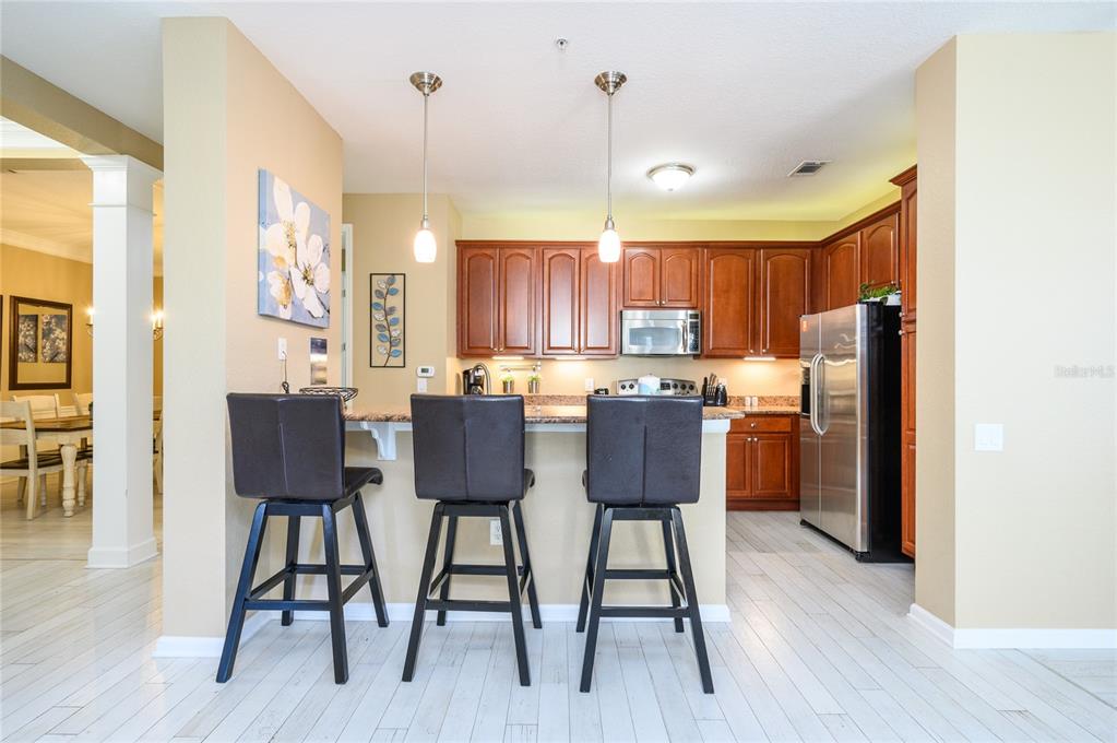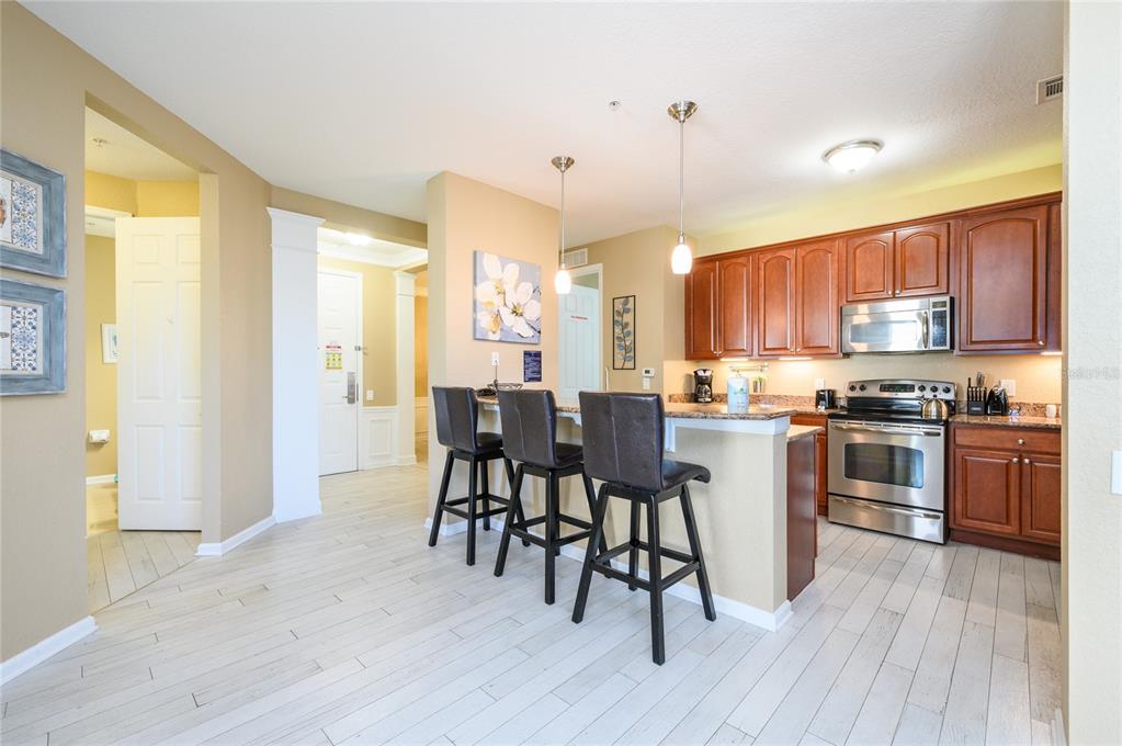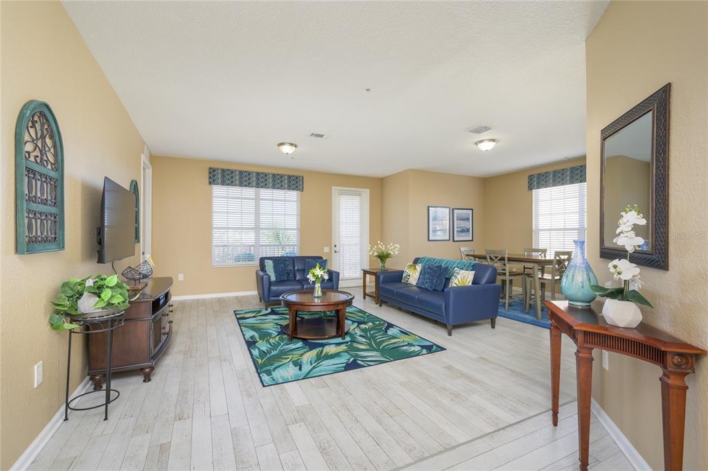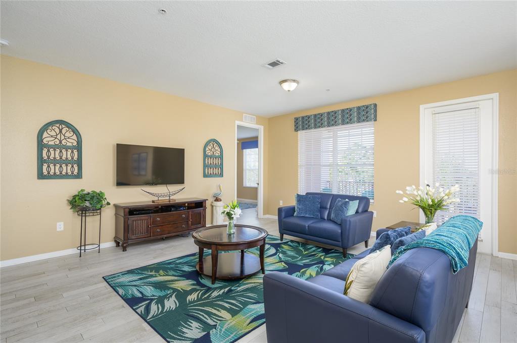 This spacious 3-bedroom condo is fully furnished and move-in ready! located in the building next to the clubhouse, it is an excellent short-term investment for airbnb, vrbo, or long-term rental—or an ideal primary residence, with no restrictions. the unique location in orange county, zoned for short-term rental, is adjacent to the convention center. situated on the 3rd floor of a gated community within a premier resort, this 2097 sq ft unit offers the perfect blend of comfort and sophistication. designed for optimal living space, the open-concept layout features a kitchen overlooking the expansive living area. the kitchen boasts granite countertops and stainless-steel appliances, creating a functional and stylish space for cooking and entertaining. the condo includes three generously sized bedrooms and two bathrooms, with the master bedroom offering plenty of room for relaxation. a private, spacious balcony provides a cozy outdoor retreat, while the ceramic tile flooring throughout the unit ensures durability and easy maintenance. the resort-style community is packed with amenities, including a clubhouse, three pools, two bars, a game room, a fitness center, and even a movie room. outside, enjoy the picturesque walking trail that winds around the lake and the added perks of a full basketball court, a playground with a shaded tent, and various social spaces. this centrally located condo is close to the dr. phillips area, providing easy access to highways, shopping centers, the airport, and popular attractions. it's also conveniently located across the street from the highly anticipated epic universe park, opening in may. hoa fees include water, internet, cable, trash removal, exterior maintenance, and access to all the resort's amenities. don't miss this opportunity to own a stunning condo that offers both luxury living and a fantastic investment opportunity. schedule your showing today!5012 SHOREWAY #30307, ORLANDO, FL 32819