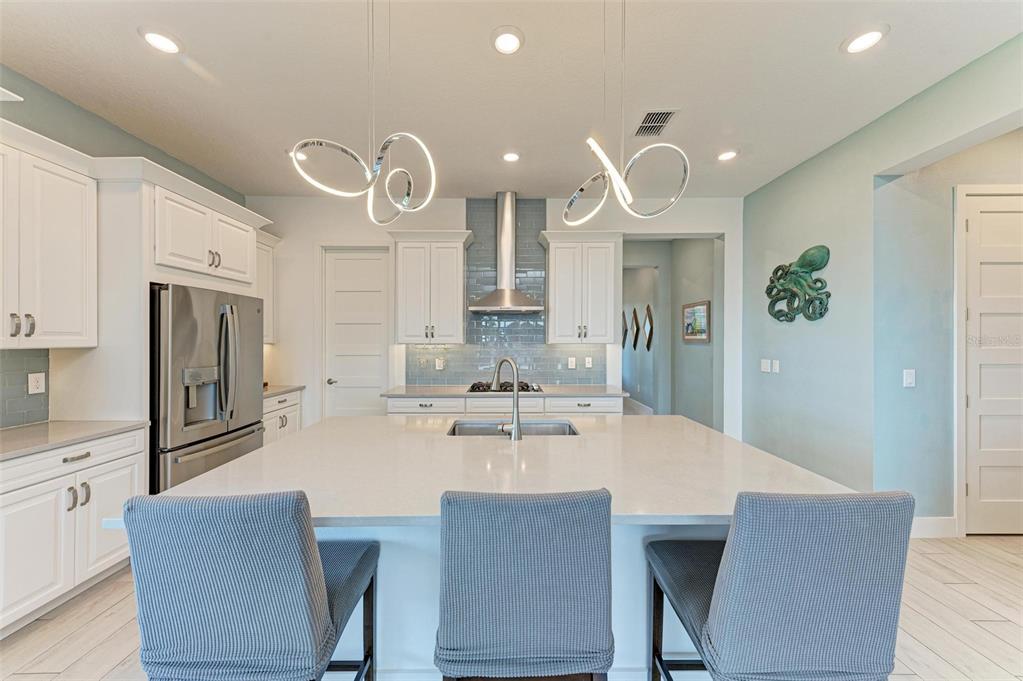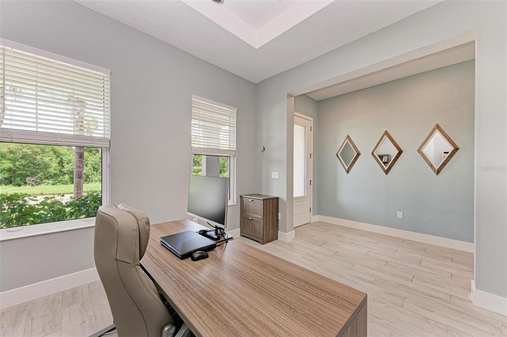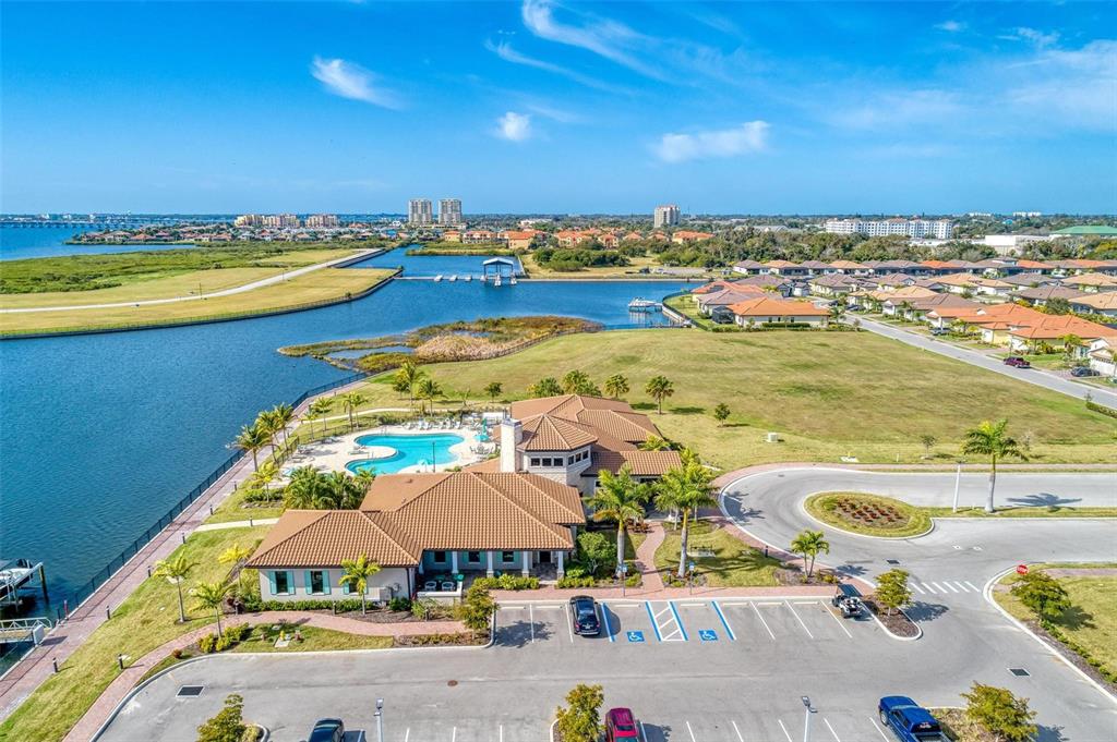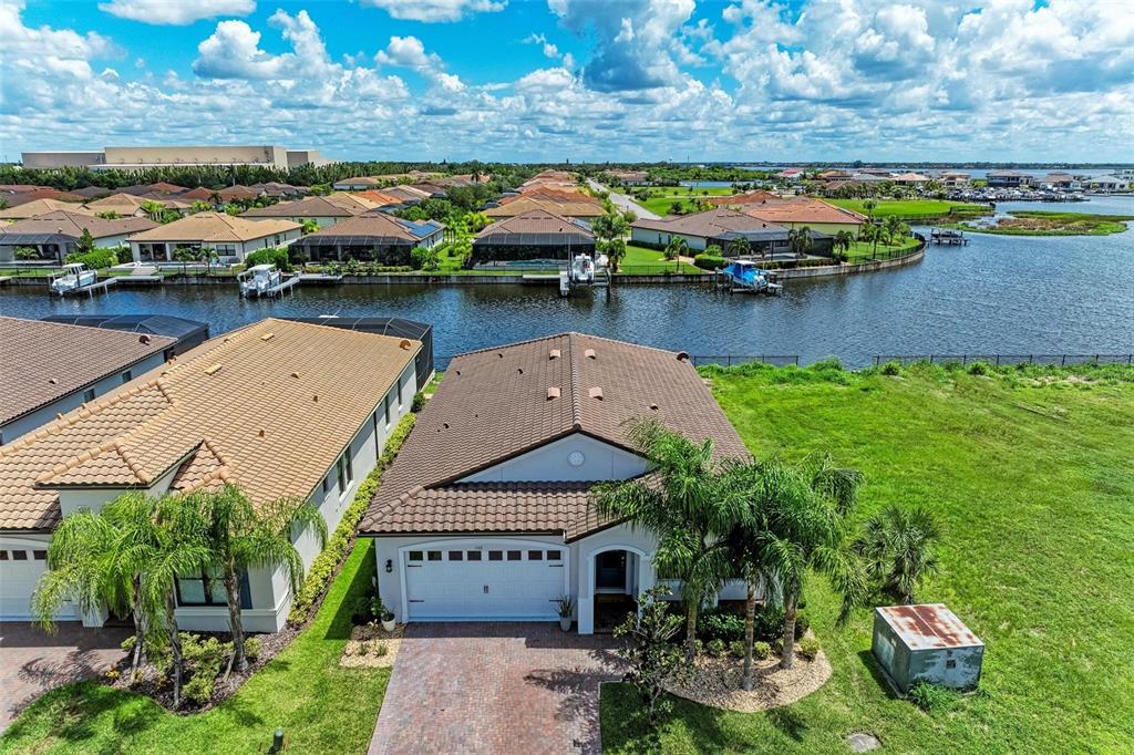 One or more photo(s) has been virtually staged. pride of ownership is exhibited in this luxurious waterfront home in the exclusive boater’s community of sanctuary cove. at the end of a cul-de-sac, you will instantly notice this home's beautiful curb appeal with its paved driveway, lush tropical landscaping and barrel tile roof. walking in through the designer glass front door you immediately notice the spectacular water view in the back of the living area! this stunning open-concept modern two-bedroom, 2.5 bath split floor plan plus den and office is absolutely gorgeous. just off the foyer is the flex room, a great space to use as a home office/den, exercise room and can easily be enclosed to make a third bedroom. the tray ceiling in this room gives it an even grander feel. just past the flex room is a convenient half bath for guests. the hallway beyond the foyer leads you to the luxurious open kitchen that overlooks the huge great room. the modern chef's kitchen includes 42-inch ivory cabinets, beautiful subway tile backsplash, under-cabinet lighting, quartz countertops, gas cooktop range, stainless steel hood, ge profile stainless steel appliances including double wall oven, recessed led lighting, large walk-in pantry with ventilated wood shelving, counter height island with sink and which provides additional seating. the kitchen opens to a spacious great room with dining and living area all flowing together, with an abundance of natural light and stunning water views, making it the ideal space for hosting and entertaining. just off the great room is the primary bedroom, which includes tray ceiling and glass inset door that leads you to the lanai. your luxurious en-suite bath includes large frameless glass walk-in shower with rainfall shower head, built-in bench, floor-to-ceiling tile, dual sinks with quartz countertops, private toilet room and large walk-in custom-built closet. a hallway just off the kitchen leads to a guest bedroom and full bath with quartz countertops that feature a pocket door leading to the bedroom. the laundry room is also just off this hallway and includes samsung washer and dryer, linen closet, plus built-in cabinets to store all your laundry and cleaning supplies. a handy drop zone/mini office area is also in the hallway just outside the laundry room and includes cabinets, drawers and quartz countertops. triple sliders just off the great room lead you to your slice of paradise, the covered lanai with sweeping panoramic screen for unobstructed water views, which is ideal for the outdoor lifestyle. the backyard offers plenty of space to add a pool or to let your pets run around, plus the opportunity to add a private dock and boat lift, making it convenient for water enthusiasts to indulge and explore the open waters. other upgrades include hurricane impact-resistant window and doors throughout, 8-foot shaker-style interior doors, tall modern baseboards, ceiling fans with lights, ring doorbell camera, epoxy floors in garage, gas water heater, and myq wi-fi garage door opener. no flood insurance required. sanctuary cove is a desirable resort-style, maintenance-free community with a beautiful clubhouse with game room, community pool, spa, full kitchen and meeting room that you can reserve for private events. along the shoreline of the manatee river with easy access to the gulf. the private beach offers a launch area and storage for kayaks, fishing sites, picnic patio and grills to entertain your out-of-town guests.502 16TH E, PALMETTO, FL 34221