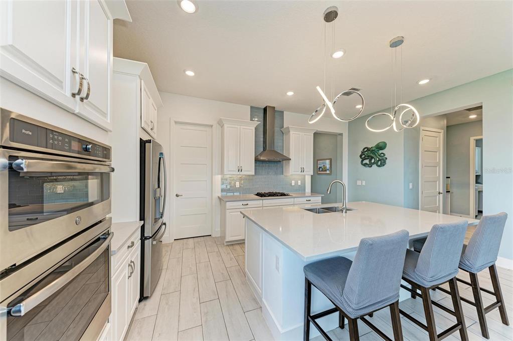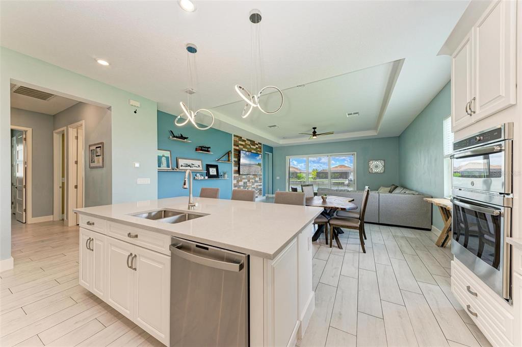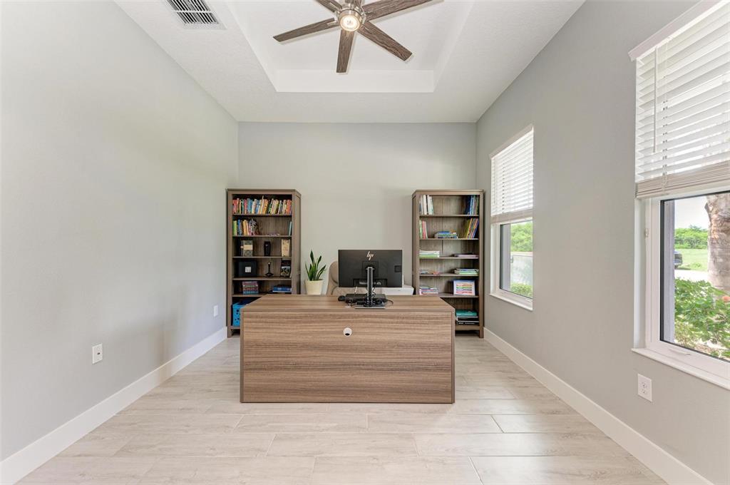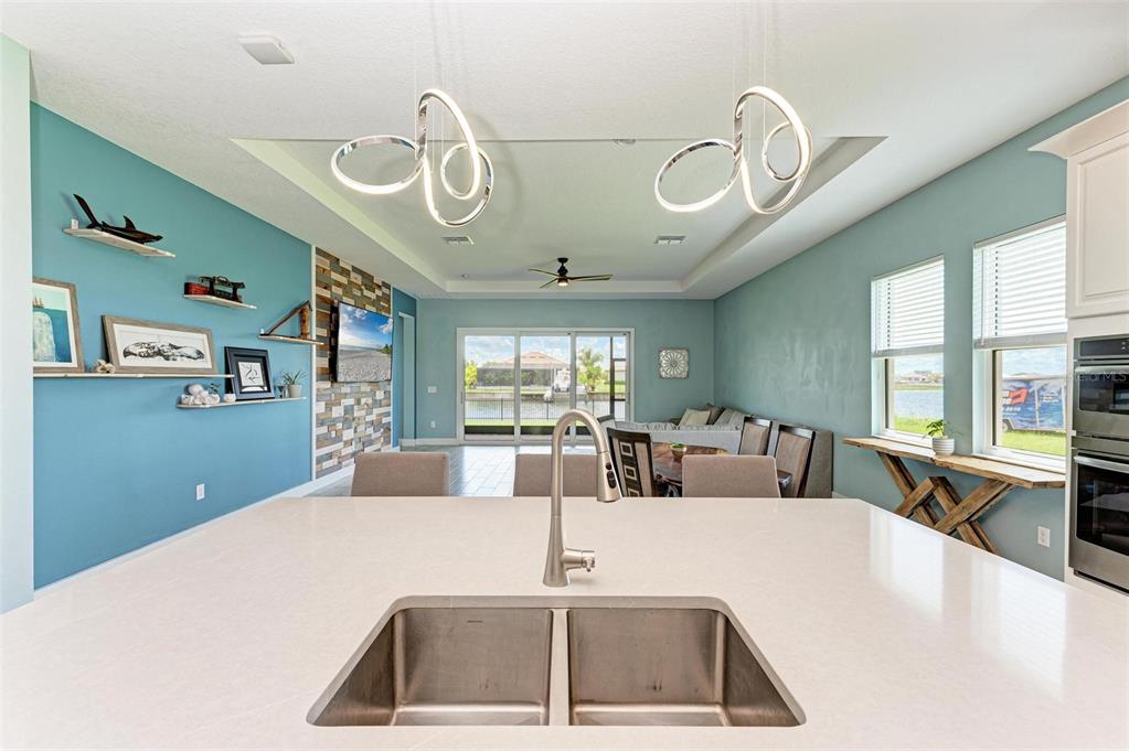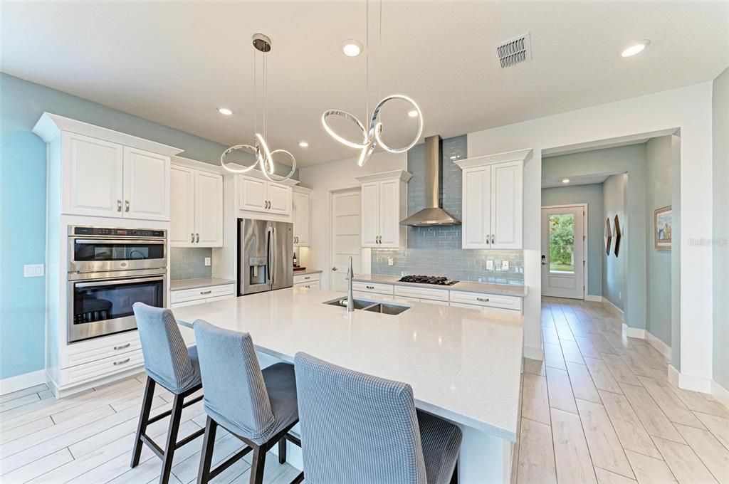One or more photo(s) has been virtually staged. pride of ownership is exhibited in this luxurious waterfront home in the exclusive boater’s community of sanctuary cove. at the end of a cul-de-sac, you will instantly notice this home's beautiful curb appeal with its paved driveway, lush tropical landscaping and barrel tile roof. walking in through the designer glass front door you immediately notice the spectacular water view in the back of the living area! this stunning open-concept modern two-bedroom, 2.5 bath split floor plan plus den and office is absolutely gorgeous. just off the foyer is the flex room, a great space to use as a home office/den, exercise room and can easily be enclosed to make a third bedroom. the tray ceiling in this room gives it an even grander feel. just past the flex room is a convenient half bath for guests. the hallway beyond the foyer leads you to the luxurious open kitchen that overlooks the huge great room. the modern chef's kitchen includes 42-inch ivory cabinets, beautiful subway tile backsplash, under-cabinet lighting, quartz countertops, gas cooktop range, stainless steel hood, ge profile stainless steel appliances including double wall oven, recessed led lighting, large walk-in pantry with ventilated wood shelving, counter height island with sink and which provides additional seating. the kitchen opens to a spacious great room with dining and living area all flowing together, with an abundance of natural light and stunning water views, making it the ideal space for hosting and entertaining. just off the great room is the primary bedroom, which includes tray ceiling and glass inset door that leads you to the lanai. your luxurious en-suite bath includes large frameless glass walk-in shower with rainfall shower head, built-in bench, floor-to-ceiling tile, dual sinks with quartz countertops, private toilet room and large walk-in custom-built closet. a hallway just off the kitchen leads to a guest bedroom and full bath with quartz countertops that feature a pocket door leading to the bedroom. the laundry room is also just off this hallway and includes samsung washer and dryer, linen closet, plus built-in cabinets to store all your laundry and cleaning supplies. a handy drop zone/mini office area is also in the hallway just outside the laundry room and includes cabinets, drawers and quartz countertops. triple sliders just off the great room lead you to your slice of paradise, the covered lanai with sweeping panoramic screen for unobstructed water views, which is ideal for the outdoor lifestyle. the backyard offers plenty of space to add a pool or to let your pets run around, plus the opportunity to add a private dock and boat lift, making it convenient for water enthusiasts to indulge and explore the open waters. other upgrades include hurricane impact-resistant window and doors throughout, 8-foot shaker-style interior doors, tall modern baseboards, ceiling fans with lights, ring doorbell camera, epoxy floors in garage, gas water heater, and myq wi-fi garage door opener. no flood insurance required. sanctuary cove is a desirable resort-style, maintenance-free community with a beautiful clubhouse with game room, community pool, spa, full kitchen and meeting room that you can reserve for private events. along the shoreline of the manatee river with easy access to the gulf. the private beach offers a launch area and storage for kayaks, fishing sites, picnic patio and grills to entertain your out-of-town guests.502 16TH E, PALMETTO, FL 34221