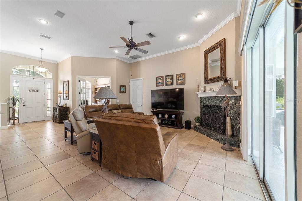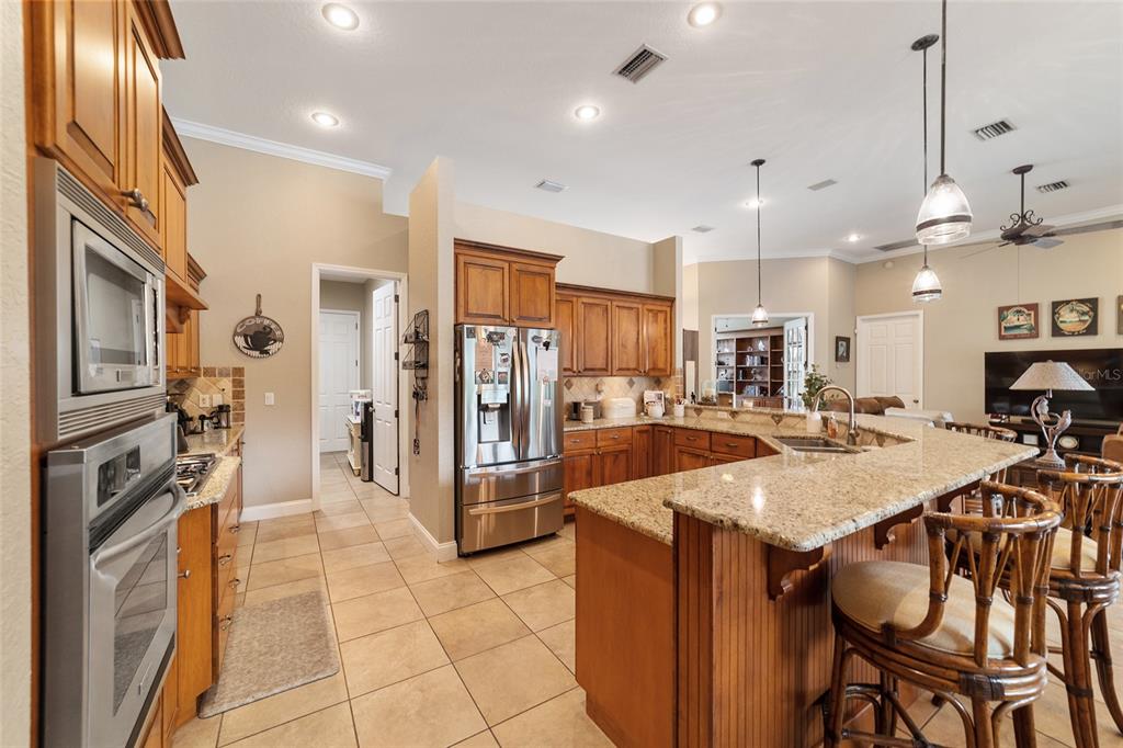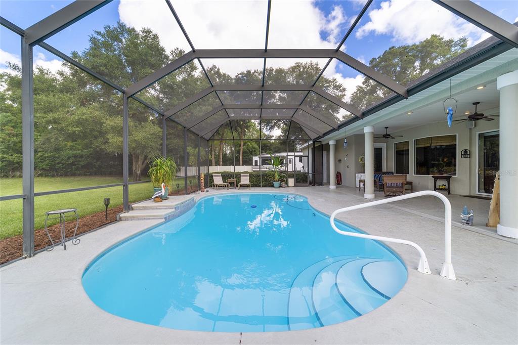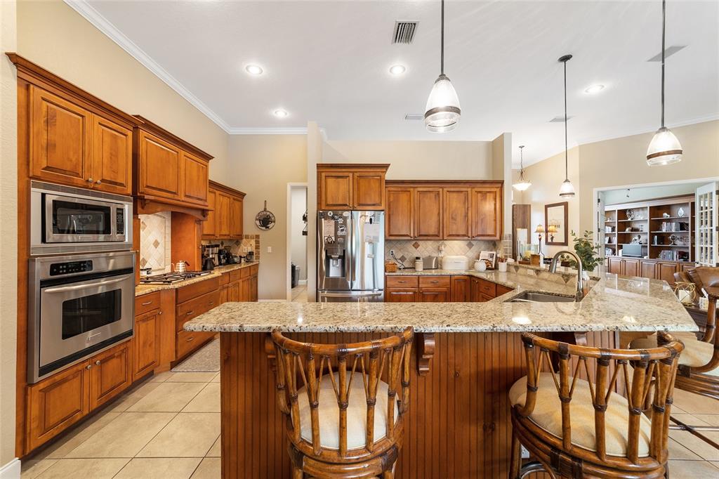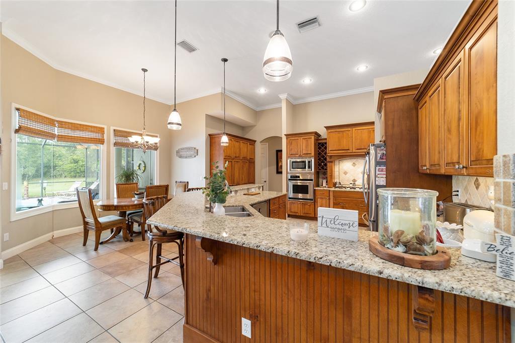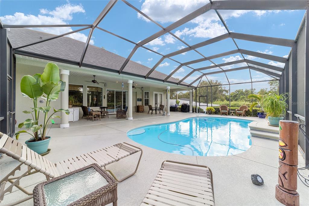Gorgeous 4 bedroom, 3 full bathroom pool home in desirable, gated se subdivision of summerton south. the kitchen features a large breakfast bar, dining area, tons of cabinet space, granite counters and stainless steel appliances, including a built-in convection oven and microwave and gas range. the spacious living room has a gas fireplace and triple glass sliders leading to the pool/patio. the primary bedroom suite has tray ceilings, new carpeting, two walk-in closets, private toilet with pocket door, jacuzzi jetted tub, walk-in shower, his & hers sinks and french doors leading to the pool/patio. separate, formal dining room and office or den with french doors that could serve as a fifth bedroom. solid wood cabinets and granite counter tops throughout. open, split floor plan with crown molding, 12-foot ceilings, and 8-foot doorways. carpet in the four bedrooms and ceramic tile flooring throughout the rest of the home. the .68 acre property is fully fenced and double gated, with plenty of outside storage and room for your boat or rv. large, sport style, screened pool (plumbed for solar heater). the huge patio is great for entertaining and includes storage cabinets, a storage closet, an outdoor shower, and access from the third bathroom. great location on a cul-de-sac. hoa fee is only $600/year. other features include a security system, 3-zone ac system, wiring for a sound system, built-in shelving and drawers in all bedroom closets, tankless gas hot water heater, separate irrigation well with newer pump and much more. new roof!!5020 SE 40TH, OCALA, FL 34480