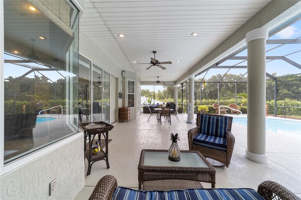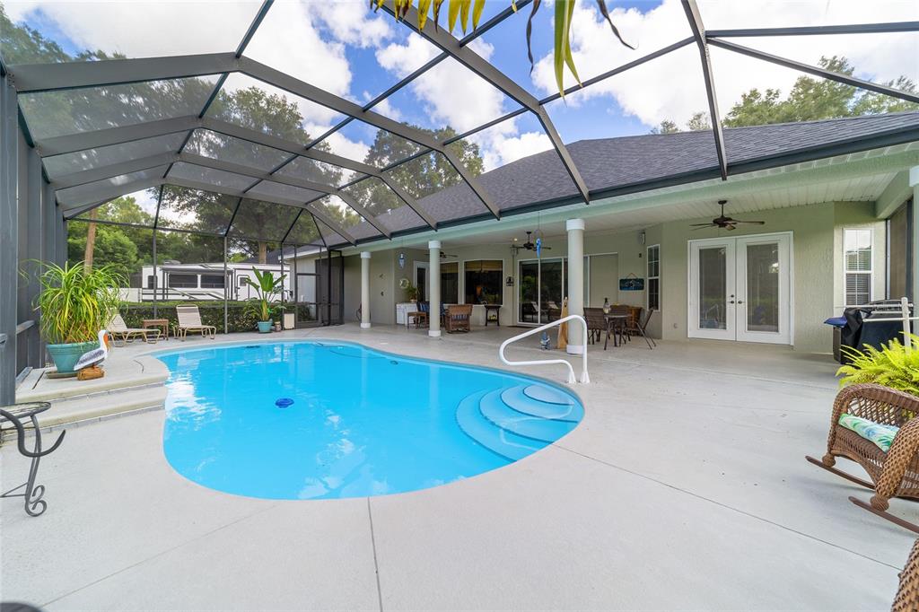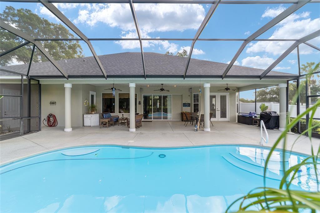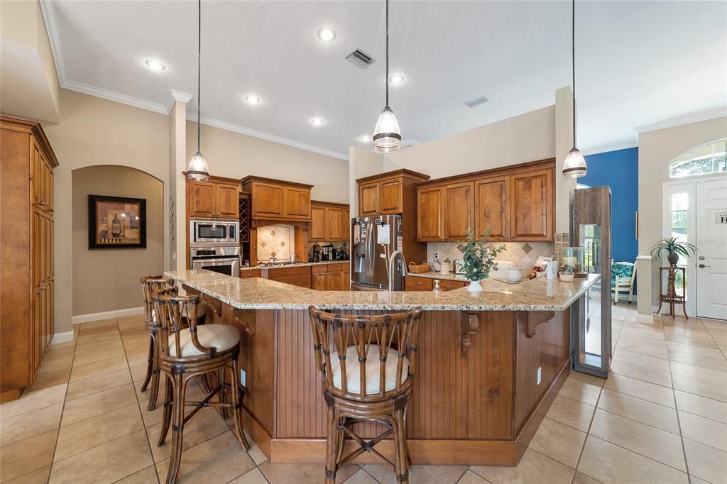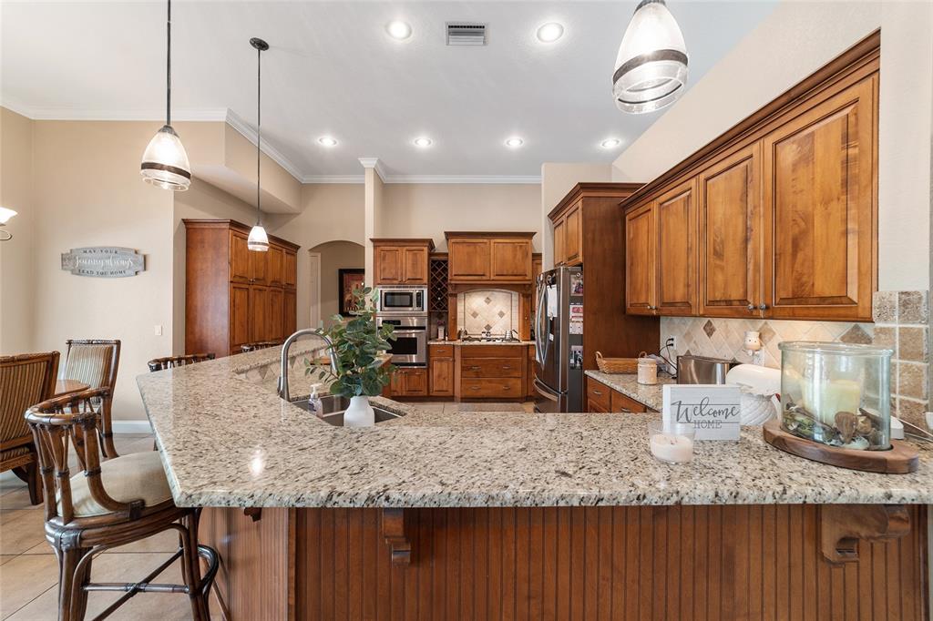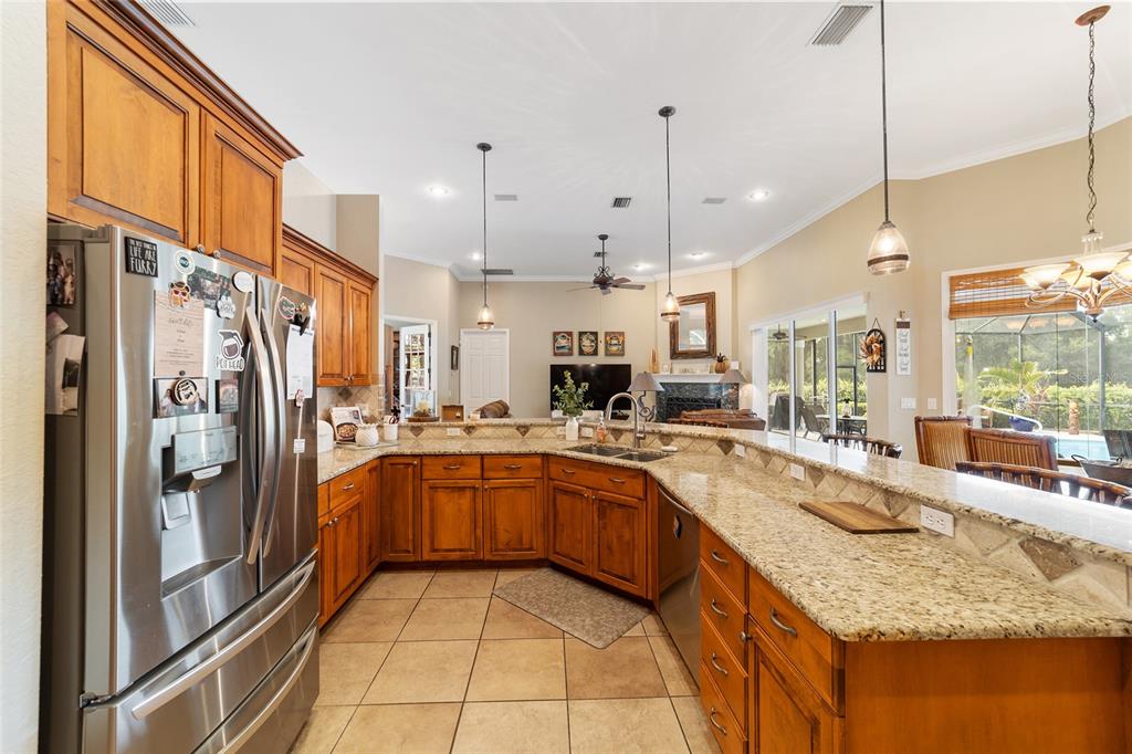 Gorgeous 4 bedroom, 3 full bathroom pool home in desirable, gated se subdivision of summerton south. the kitchen features a large breakfast bar, dining area, tons of cabinet space, granite counters and stainless steel appliances, including a built-in convection oven and microwave and gas range. the spacious living room has a gas fireplace and triple glass sliders leading to the pool/patio. the primary bedroom suite has tray ceilings, new carpeting, two walk-in closets, private toilet with pocket door, jacuzzi jetted tub, walk-in shower, his & hers sinks and french doors leading to the pool/patio. separate, formal dining room and office or den with french doors that could serve as a fifth bedroom. solid wood cabinets and granite counter tops throughout. open, split floor plan with crown molding, 12-foot ceilings, and 8-foot doorways. carpet in the four bedrooms and ceramic tile flooring throughout the rest of the home. the .68 acre property is fully fenced and double gated, with plenty of outside storage and room for your boat or rv. large, sport style, screened pool (plumbed for solar heater). the huge patio is great for entertaining and includes storage cabinets, a storage closet, an outdoor shower, and access from the third bathroom. great location on a cul-de-sac. hoa fee is only $600/year. other features include a security system, 3-zone ac system, wiring for a sound system, built-in shelving and drawers in all bedroom closets, tankless gas hot water heater, separate irrigation well with newer pump and much more. new roof!!5020 SE 40TH, OCALA, FL 34480
