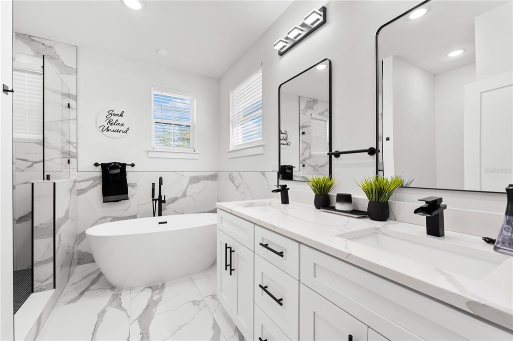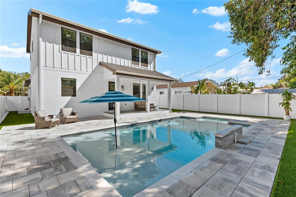 This 2022 built home filled with upgrades is perfectly positioned between the beaches and downtown with access to 275 for a quick trip to tampa. as you pull into the pavered driveway you will notice all the extra space for guests to park. a first floor bedroom allows for your guests to have privacy on their stay. the spacious open living and kitchen combination is perfect for entertaining. a custom built-in electric fireplace in the living room provides warmth and style. the kitchen has a large pantry for all your storage needs. head up the floating stairs to the additional bedrooms. the oversized primary suite has two closets, perfect for any fashionista. in the en-suite you can unwind after a long day in your free standing soaking tub. upstairs, you will also find two additional bedrooms with custom closets, double vanity secondary bathroom, and spacious laundry room with additional storage. relax on your lanai overlooking your brand new (2025) pool and spa with waterfall feature. never worry about the stress of landscaping upkeep or cost with your maintenance free turf that stays green year round. call us today for your private tour.5040 RENA N, ST PETERSBURG, FL 33709