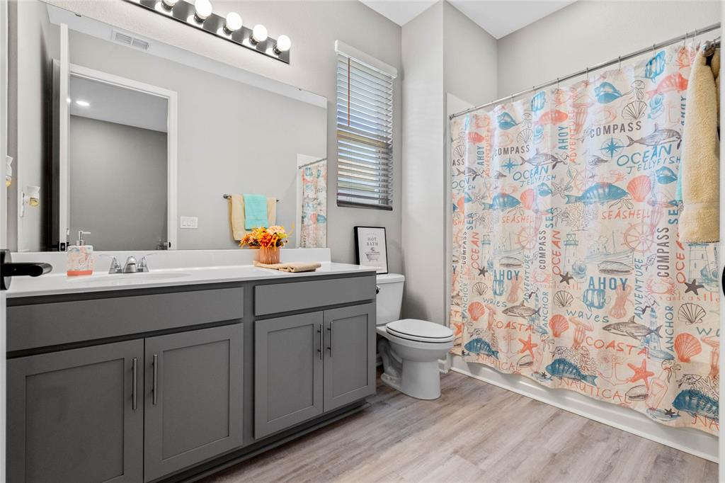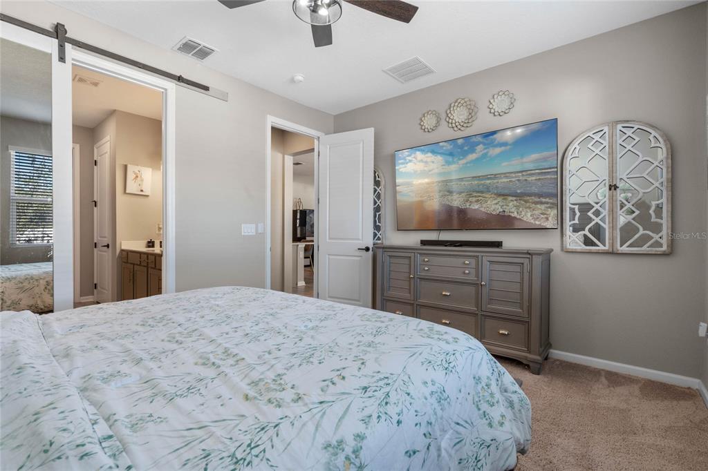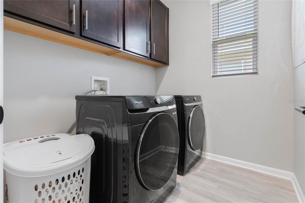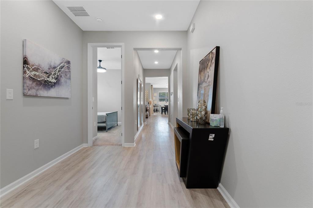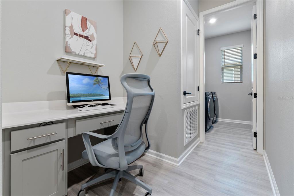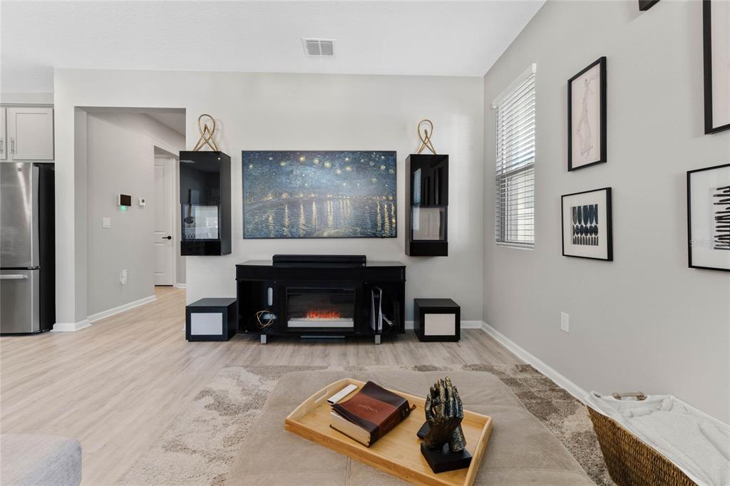 Welcome to your dream home! this like-new, beautifully designed 3-bedroom, 2-bath home seamlessly blends modern style with functionality. the main living areas feature luxury vinyl plank flooring, creating a warm and inviting atmosphere. the kitchen is a chef's delight, boasting ample cabinet space, quartz countertops, stainless steel appliances, and the convenience of natural gas for cooking. open-concept living connects the kitchen to the family and dining areas, perfect for entertaining. the primary suite is a serene retreat with a chic mirrored barn door leading to a luxurious ensuite featuring dual vanities, a spacious shower, and a newly custom-designed closet. a built-in homework/office nook off the laundry room adds practical charm. enjoy the partially fenced backyard with privacy and potential for fully fenced yard. sip your morning coffee on the cozy covered porch. ideally located just 2 minutes from shopping, dining, and grocery stores and only 7 minutes to the turnpike. this home offers convenience without the hustle and bustle. the community playground across the street is an added bonus for families. barely lived in and move-in ready—this home is waiting for you to make it yours!5047 MDW SONG, OKAHUMPKA, FL 34762