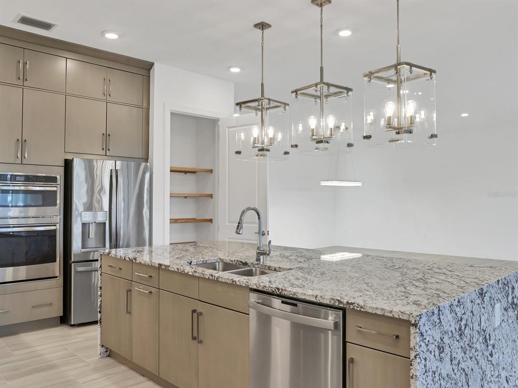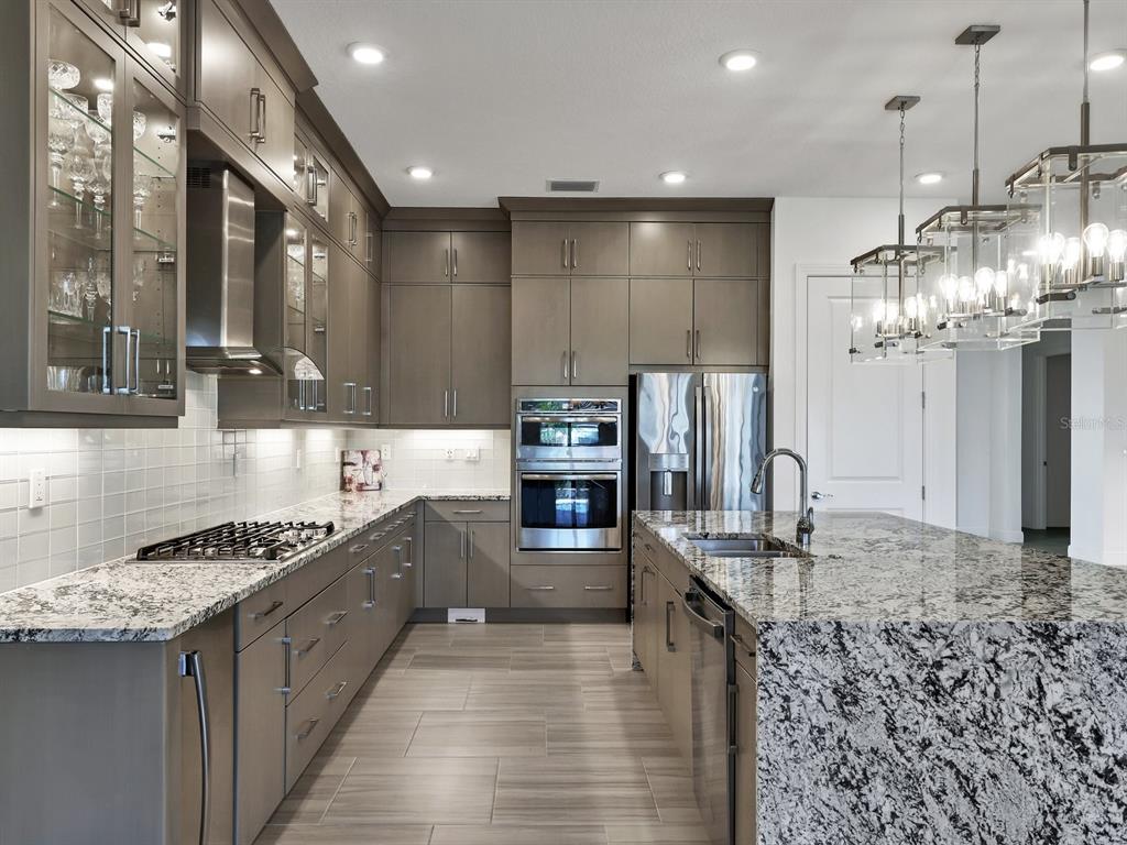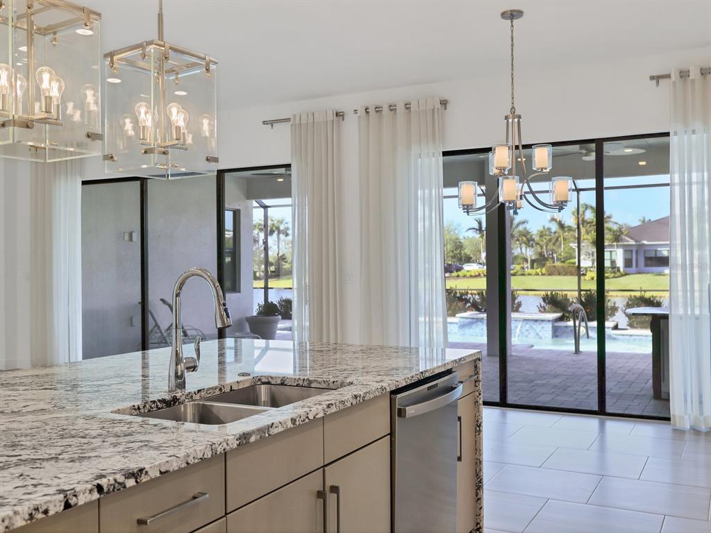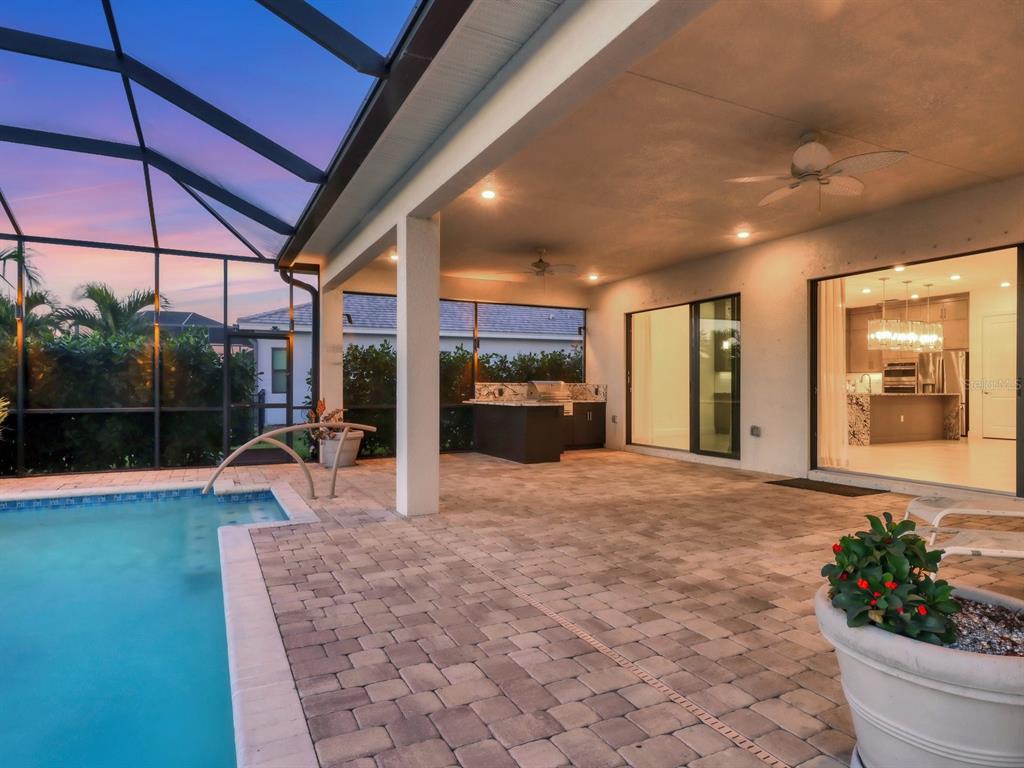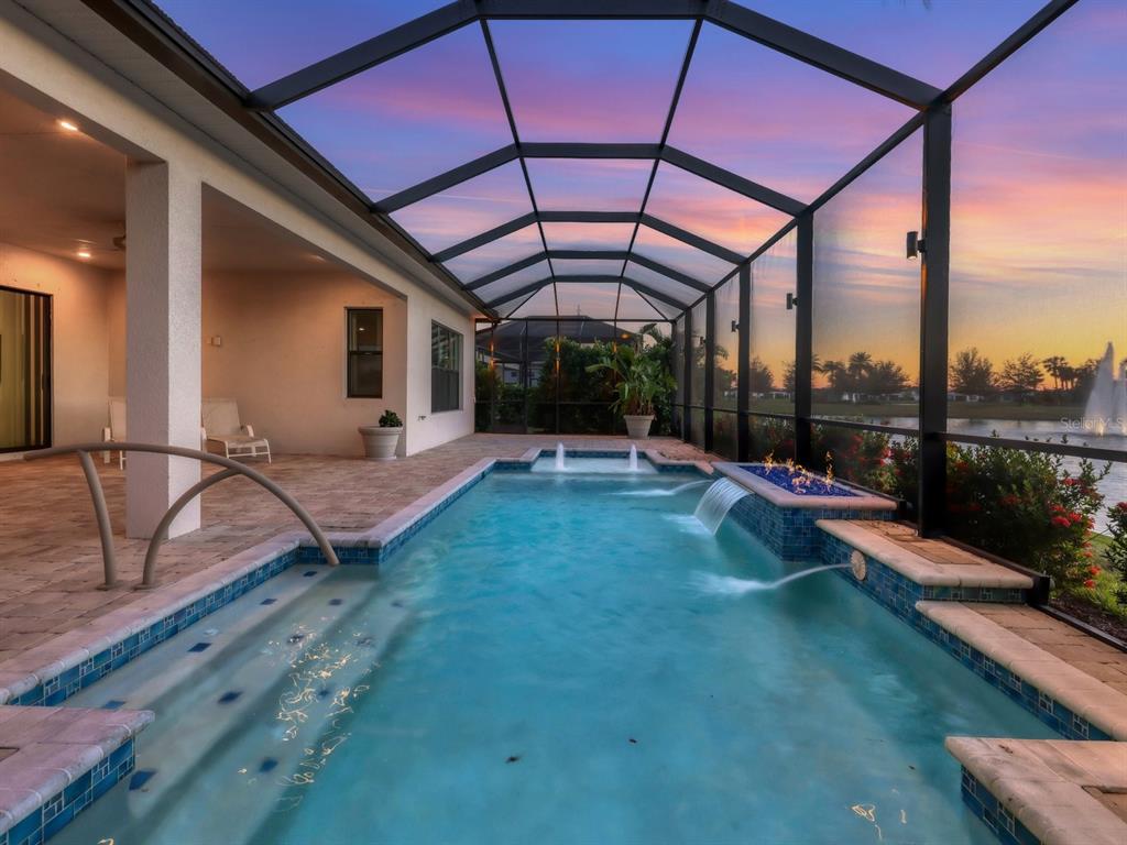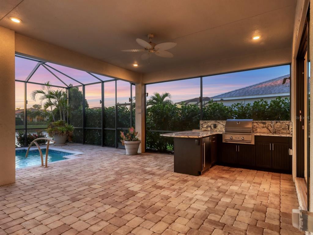Step into kolter's largest single-story floor plan, the vilano, and experience the luxury of model-quality design and upgrades. nestled on a premium lot with tranquil water and fountain views, this custom built home draws inspiration from the coveted vilano model, showcasing thoughtful craftsmanship and luxurious finishes throughout. you’ll be captivated by the open floor plan and stunning level 7 kitchen cabinets, which extend to the ceiling with 42” uppers and stacked cabinets. culinary enthusiasts will appreciate the kitchen’s layout, abundant counter space, and cabinet storage. the kitchen features a natural gas cooktop, upgraded granite, a large island with double waterfall edges, oversized pendant lighting, and premium appliances—including an under-cabinet ice maker—and so much more! this space is perfect for entertainers, with a large island offering seating and an open floor plan that seamlessly connects to the family room, formal dining area, and dinette, making it perfect for entertaining. venture outdoors, where relaxation and luxury await. take a dip in the heated pool with a sun shelf or unwind to the soothing sounds of elegant water features, all while enjoying the warm glow of the gas fire feature and enhanced outdoor lighting. the large covered lanai space is anchored by a custom outdoor kitchen designed with granite countertops and equipped with a gas grill, prep sink, storage cabinets, and refrigerator—perfect for culinary enthusiasts and entertainers alike. when it’s time to retreat from your outdoor oasis, step into the owner’s suite to a serene space is designed for relaxation, featuring a spa-like bathroom with an oversized walk-in shower featuring dual shower heads, a water closet, and a dual-sink vanity. the custom-built walk-in closet provides ample storage, ensuring everything has its place. this idyllic setting seamlessly blends comfort and sophistication, offering the ultimate retreat for relaxation and enjoyment. forget yard work—your hoa has it covered! with lawn maintenance, irrigation, pest control, fertilization, light pruning, cable tv, and high-speed internet all included, you’ll have more time to dive into the endless activities that make cresswind living extraordinary. extra bonus- this home’s convenient location is only a short walk or drive to all the amenities! there’s something for everyone here! play a hand at poker, explore your creative side in the art studio (complete with ceramics), or meet with the on-site lifestyle director to map out your next adventure. stay active in the state-of-the-art smartfit/egym training center, hit the yoga studio, or challenge friends to a match on the pickleball and tennis courts. prefer to relax? take a leisurely stroll on the scenic walking trail or unwind by the resort-style heated pool and spa. social butterflies will love the event lawn for food truck nights, bocce courts, card rooms, and the vibrant variety of social clubs. ** be sure to ask your agent for the list of upgrades to this home **5058 SURFSIDE, LAKEWOOD RANCH, FL 34211