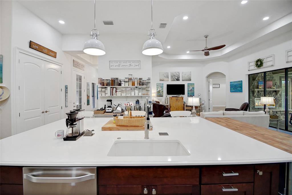 Experience life to the fullest in this 4 bedroom / 3 full bath home in harbor hills, a gated golf community nestled on the shores of lake griffin on the sought after harris chain of lakes. your new home has stunning views of the golf course, along with two rustic ponds, seen through sliding glass pocket doors across the back of the great room. looking out, you see a salt chlorinated pool w/waterfall, a rustic stone horizontal gas fireplace and over 1,000 sq. ft. of covered/screened lanai. the house was built in 2018, however underwent an executive remodel in 2022 including: a true cook’s kitchen featuring cambria quartz countertops, an oversized island for bread and pasta making, double kitchenaid convection ovens, ge profile gas cooktop with high flow vent hood, fully custom pantry and storage closet, and upgraded lighting to set any mood desired. the floors have been upgraded to wood plank porcelain tile throughout, the lighting elevated from builder grade, all closets are now custom, and the windows are covered with plantation shutters. the owner's bedroom features an en suite w/walk through roman shower including an added rain head, two vanities and a large soaking tub, as well as two custom built closets. another added bonus is the whole-house purifier. the remaining three bedrooms are well sized with large upgraded custom closets and two of the bedrooms have en suites.the exterior of the home has been enhanced as well. as you pull into the expanded custom paver driveway with 18-foot sylvestris palms on either side, you will notice that the yard and landscaping accentuate the home's beauty. podocarpus & viburnum shrubs surround the home, giving a warm sense of privacy adding to the décor. a lanai garden enclosed by a wrought iron fence has been built on the left side of the home and fruit trees line the back. this one of a kind home is located in harbor hills, which is one of the most sought after exclusive, gated golf & waterfront communities that is just minutes to the villages, shopping, restaurants, doctors, medical facilities, grocery stores and more! call today for your private showing and also be sure to watch the video!5084 GRNS, LADY LAKE, FL 32159