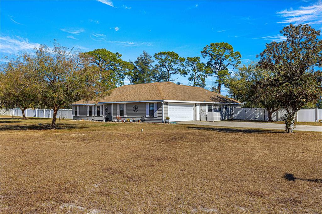 Welcome to your dream home in silver meadows south! this stunning 4-bedroom, 3-bathroom pool home is nestled on a beautifully landscaped 1-acre lot with a vinyl privacy fence, offering a peaceful retreat. the 8-foot-deep screened-in pool and spacious patio are perfect for entertaining, while most of the upgrades—completed in the last two years—add modern convenience. these include a new pool liner, hvac, well, stylish fixtures, five led floodlights, and a generator hookup. inside, the home features hardwood and tile flooring, granite countertops throughout, and a cozy fireplace. the luxurious master suite offers double sinks, his-and-her closets, a skylight, and granite finishes, while one bedroom stands out as a charming princess suite with its own private bath. you'll also appreciate the utility room with cabinets and a sink, a 2-car garage, irrigation system, and a security system. the backyard is packed with potential, featuring a shed with electric and a 12x20 roll-up door, plus a 20x30 concrete slab for trailer parking or extra storage. located in the desirable silver meadows south community, you'll enjoy access to basketball and tennis/pickleball courts on both the north and south sides. with a combination of comfort, luxury, and recent updates, this home is move-in ready—schedule your showing today!5091 NE 61ST AVE, SILVER SPRINGS, FL 34488