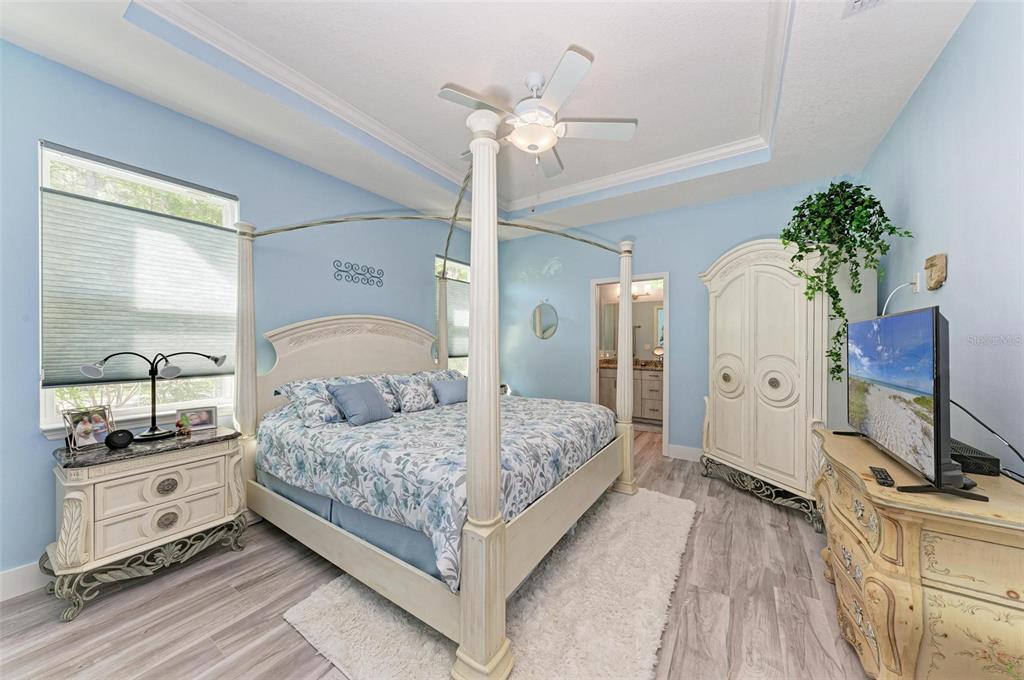 Looking for the security of newer construction in a peaceful, quiet community located close to beaches, shopping and easy accessibility to everywhere?? this corner villa with a view of the preserve and the privacy that offers, was once the builder model, with every upgrade included and each detail thoughtfully considered. welcome to the coves at terra ceia bay, a maintenance free community, where every day can feel like vacation. perfectly placed between bradenton/anna maria island to the south and st pete to the north, you can have your toes into the sugary sand of the gulf of mexico in no time. with restaurants and shopping nearby, you have easy access to conveniences, while enjoying the peace and quiet of this serene little oasis, tucked away amongst magical old oak trees. while the community is a hidden gem indeed, let’s talk about this beautiful home. because it's a corner, end unit, this home feels light and bright, compared to the center units, with the high ceilings and open floorplan offering a sense of spaciousness belying the square-footage. walking in through the upgraded glass front door, the gorgeous white oak luxury vinyl floors will carry you seamlessly through the rooms and make cleaning a breeze. the modern, elevated, soft close cabinetry in the kitchen goes all the way to the ceiling, with glass fronted vanity cabinets up high, adding elegance to the space. crown molding and tray ceilings complete the living spaces and master bedroom, with a touch of luxury. the spacious primary bedroom is a delight, with an ample walk-in closet and zen like en-suite bath with a huge walk in shower. your guest will have their own bedroom and bath on the other side of the home, giving everyone a sense of privacy. come together in the living room or on the wide screened in back porch, which is the perfect place to relax after a long day or work or play. watch the birds in the little creek behind the porch, while listening to the wind rustling in the trees of the preserve area. a lovely place to sit rain or shine, and on a rainy day, the gutters recently added will keep down the splatter, allowing you to simply enjoy the storm. when the sun is out, the pool is on the other side of the preserve area, just a short walk away. the interior laundry room between the kitchen and the garage is well appointed with ample cabinetry and can serve double duty as a mud room, as it boasts a sink for hands soiled from gardening. with the extended one car garage having a pull-down ladder to the attic, you will have a place for your toys, and storage galore. two spaces in your driveway assure plenty of parking for guests, without needing the overflow spaces across the street, but there is plenty of that as well, if needed. whether looking for a full-time residence or a second home, this property has been meticulously maintained and being built to the most current hurricane codes, it came through recent hurricanes beautifully, suffering no damage, flooding or issues, offering peace of mind for the owner. with so much to do, from the culture of the surrounding cities, to the abundance of outdoor activities to enjoy and places to explore, get ready to live your best florida life. come see this beautiful home and start living a life you don't need a vacation from, today!!Villa 2 bedrooms - THE COVE AT TERRA CEIA BAY VILLAS for Sale