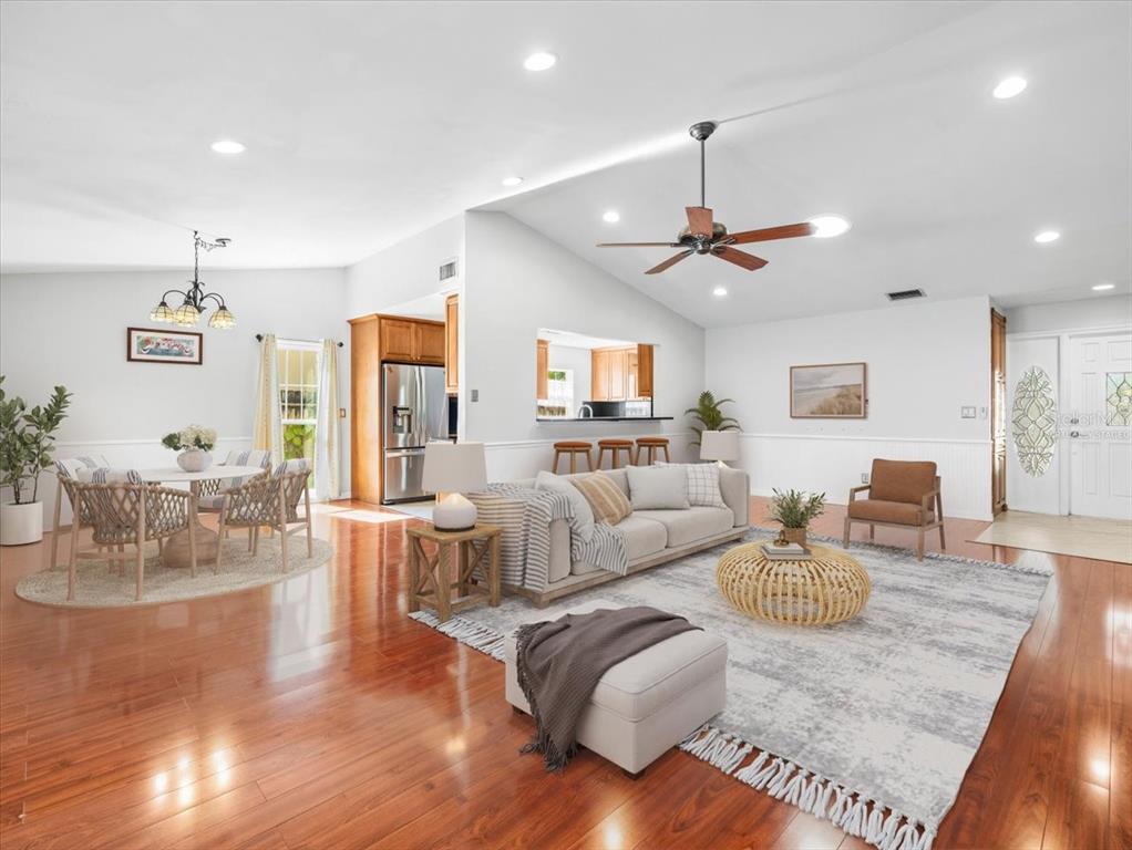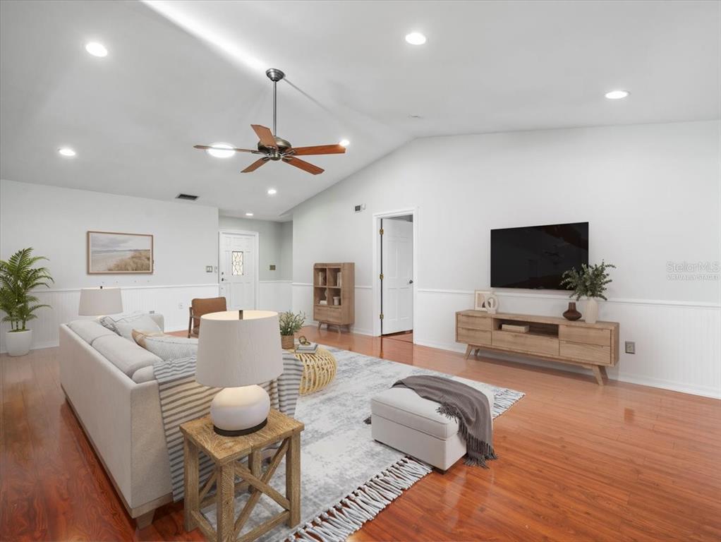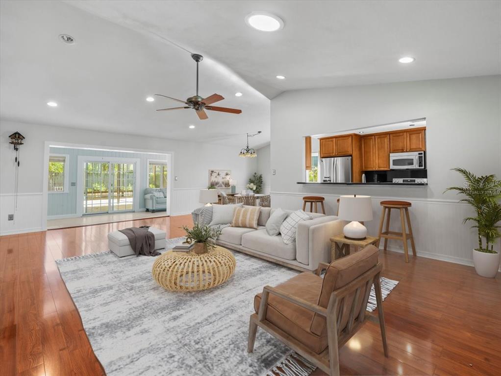 One or more photo(s) has been virtually staged. nestled in the vibrant heart of carrollwood village, this exquisite 4-bedroom, 2-bathroom home offers a perfect blend of elegance, comfort, and functionality. upon entering, you'll be greeted by a large open floorplan that seamlessly integrates the dining room, family room, and kitchen. the family room boasts vaulted ceilings and a skylight, flooding the space with natural light and creating a sense of grandeur. the kitchen is equipped with beautiful wood cabinets, granite countertops, a breakfast bar, stainless steel appliances, and a built-in pantry. the expansive florida room at the rear of the house provides a serene retreat, perfect for relaxing or entertaining. the large primary bedroom is a tranquil oasis, featuring a den that captures plenty of natural light and overlooks the lush backyard. the primary ensuite boasts a spacious walk-in shower that includes seating. a large walk-in closet with built-in organizers ensures ample storage. each bedroom is adorned with both crown and chair rail molding, adding a touch of sophistication. the large guest bathroom is fully updated, featuring a spacious walk-in shower. the exterior of the home is just as impressive, with a huge porch that includes a covered lanai and a screened-in area, all beautifully finished with travertine floors. the fenced backyard provides a secure and private outdoor space, perfect for family gatherings or quiet relaxation. this stunning residence offers the perfect blend of style, functionality, and location, making it an ideal choice for those seeking a luxurious lifestyle in the heart of carrollwood village. roof is 4 years old. ac 3 years old.5117 BRYNN MAWR, TAMPA, FL 33624