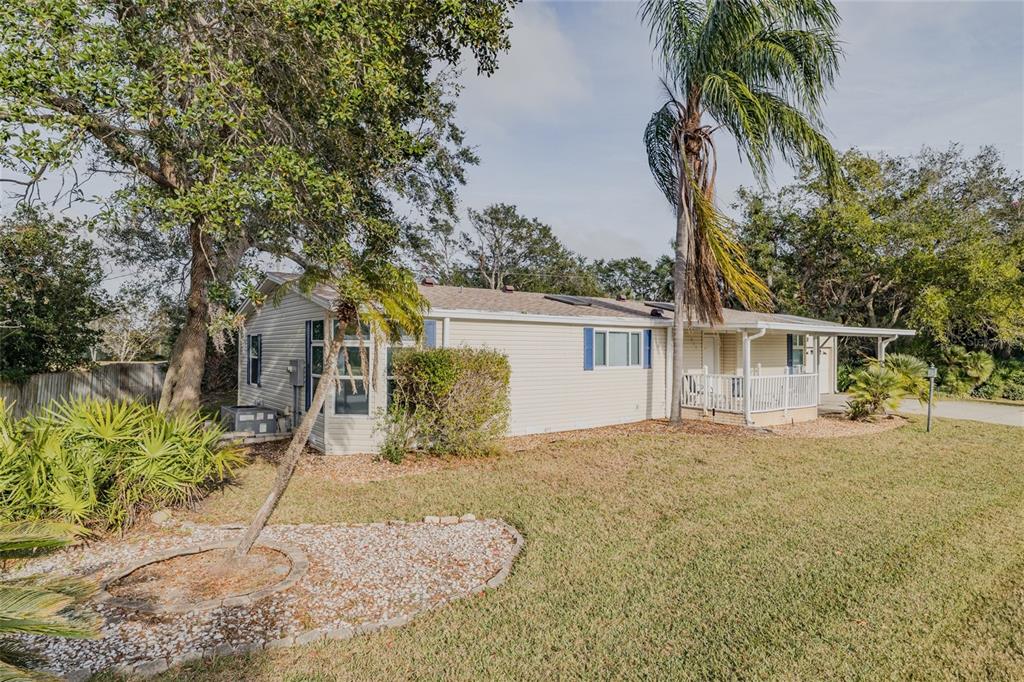 Enjoy peaceful riverside living in this spacious, bright and airy ranch-style home. built in 1996, this triple-wide palm harbor manufactured residence is situated on a generous lot within the beautiful 55+ community of edgewater landing. here, you own the land, pay no lot rent, and can enjoy exceptional privacy. the home features a two-car garage with ample shelving and a custom-built overhead storage area—perfect for your car, motorcycle, golf cart, and tools. the expansive kitchen and bathrooms have been updated with walk in showers, and the exterior shutters were recently painted. a new ac was installed in the sunroom, while the main ac and roof are just 5 years old. additional updates include new plumbing and a replaced exterior electrical box. edgewater landing offers a wealth of amenities, including a clubhouse, exercise room, heated pool and spa, tennis and pickleball courts, bocce ball, shuffleboard, a fishing dock, boat launch, rv and boat storage, and a scenic mile-long walking path along the intracoastal waterway. hoa dues cover internet and cable tv, making this an unbeatable package for easy, carefree living.513 PORTSIDE, EDGEWATER, FL 32141