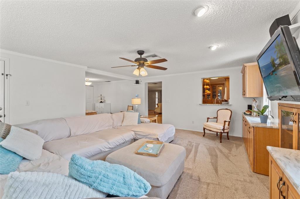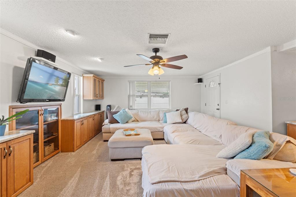 This spacious home is the perfect retreat for your entire family, offering plenty of room to create lasting memories. enter through the charming, fully enclosed front porch, which leads you into the inviting living and dining areas. to your right, you'll find two generously sized bedrooms and a well-appointed main bathroom. there is also a half bath with toilet and shower in the garage. to the left, the fully equipped kitchen boasts modern appliances, beautiful cabinetry, and elegant stone countertops. at the rear of the home, the expansive den/family room provides an ideal setting for gatherings, complete with built-in cabinetry and a cozy office nook. step outside to your private backyard oasis, designed for little to no maintenance. enjoy the additional enclosed porch and plenty of space for vehicles, boats, and toys. this home truly has it all! don't miss your chance to see this exceptional property—call today for your private showing!5152 VICTORIA, HOLIDAY, FL 34690