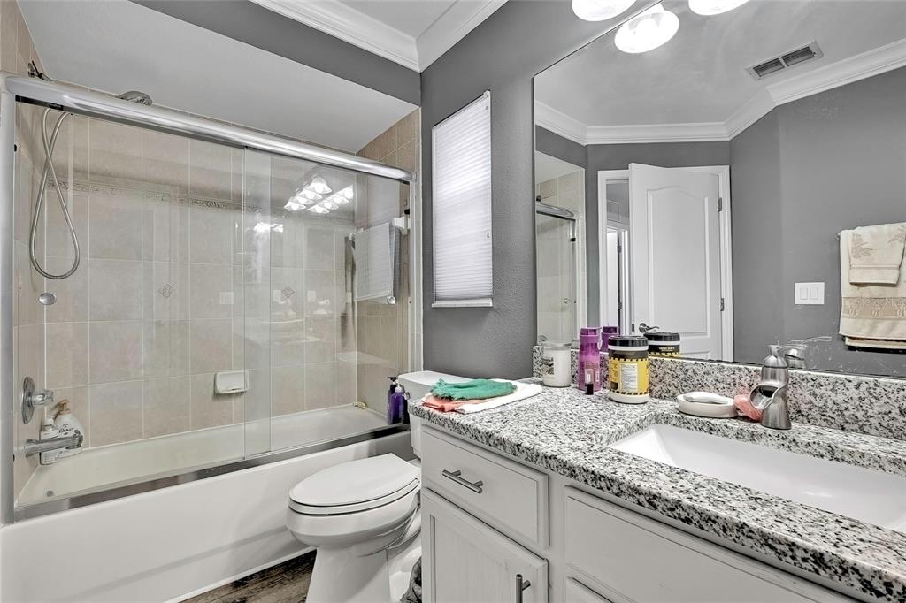 Split Bedroom Walk-In Closet(s)Ceiling Fan(s) High Ceilings Living Room/Dining Room Combo Stone Counters Thermostat Open Floorplan Window TreatmentsExterior Features: