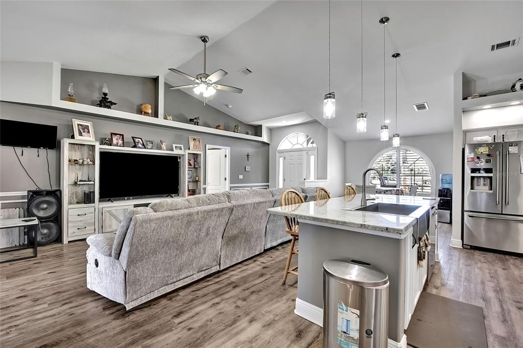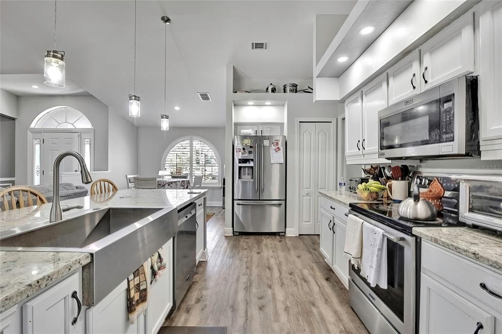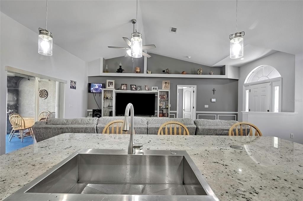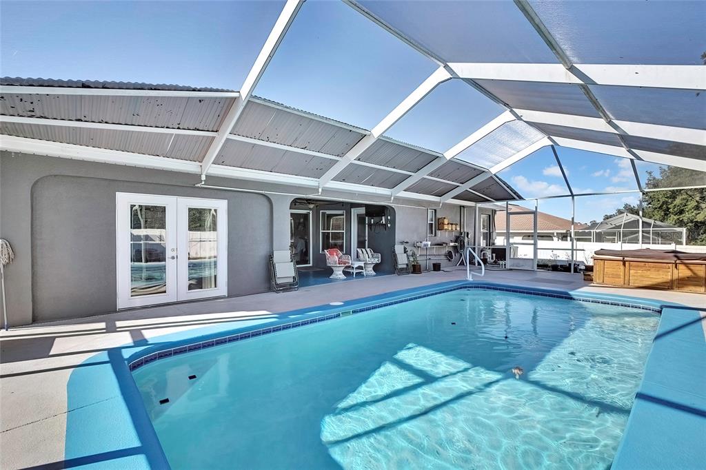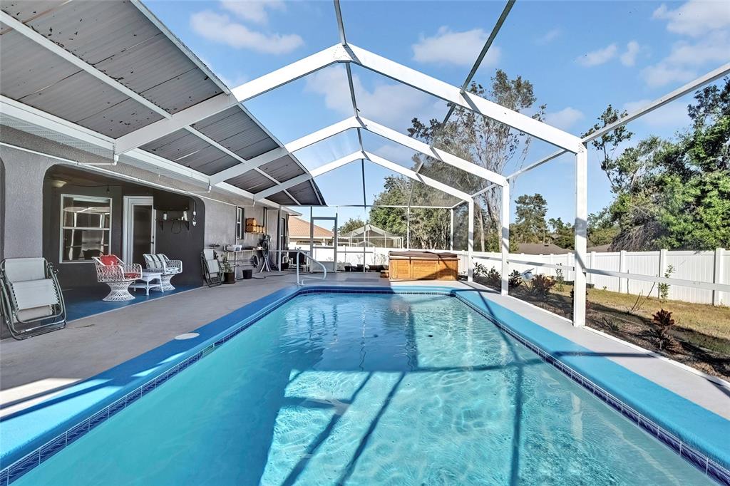Thinking of buying a new home? this beautiful 3 bedroom, 2 bath 2 car garage and huge inground heated swimming pool is ready for you. as you walk in the front door, you'll see an updated open floor plan with granite counter tops, stainless steel appliances, large island with a farmers sink, luxury vinyl flooring, spanish lace ceilings and plantation shutters. primary bedroom has extra space for your office or a sitting area to enjoy your morning coffee or a night cap. split bedrooms, guest bath has access to the pool area. bathrooms have been updated. diamond brite pool was recently resurfaced. fully vinyl fenced in back yard with lots of plants and fruit trees. utility shed with workshop was just done has electricity connected and window ac. new garage screen door and storm door was just installed. septic tank was pumped 2 years ago. roof was done september 2023.5156 MENTMORE, SPRING HILL, FL 34606