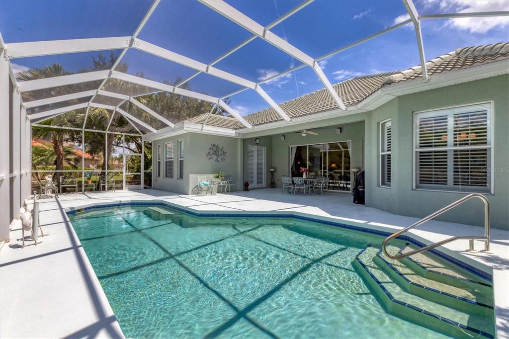 **heron creek golf & country club **executive series home 3 bed + den | 2.5 baths | 3-car garage | just under 2,600 sq ft new roof! sweet as its name, honey bee haven is a casually elegant retreat tucked away on a very private preserve homesite in the heart of heron creek golf & country club. here, every day feels like a gentle exhale — a perfect respite after savoring all the pleasures florida’s paradise has to offer. from the moment you step into the grand round foyer, crowned with an elevated ceiling, your eyes are drawn across the open great room to the sparkling pool and lush preserve beyond. cascading glass sliding doors frame the view and invite the outdoors in, filling the home with florida sunshine. sunlight filters through plantation shutters adorning most windows, highlighting classic crown molding, double tray ceilings, and timeless architectural detail. a primary suite made for daydreams: the owner’s retreat, painted in serene sky blue, offers a sun-kissed sitting area with direct lanai and pool access. dual walk-in closets ensure ample storage, while the spa-inspired ensuite pampers with a garden tub, separate shower, dual vanities, and private water closet. space for everyone: the two-bedroom guest suite, tucked privately at the front of the home, makes visitors feel right at home. a spacious den—ideal for a home office or easily converted to a fourth bedroom—enjoys the convenience of an adjacent half bath. for hosting holidays or special occasions, the formal dining room offers an elegant space for memorable gatherings. the heart of the home: the chef’s kitchen connects seamlessly to the great room, keeping the cook at the center of the action. rich cherry wood cabinetry, tumbled tile backsplash, and classic solid surface countertops blend beauty and function, while the natural gas range will delight the culinary enthusiast. the sunny breakfast nook overlooks the lanai and pool, making every meal a scenic occasion. outdoor living at its sweetest: step outside to a screened lanai and sparkling pool framed by lush tropical landscaping and the untouched beauty of the conservation preserve. this private haven is perfect for quiet mornings with coffee, sunny afternoons in the pool, or evening gatherings under the stars. for the collector, hobbyist, or adventurer: the 3-car garage offers room for all your toys — whether that’s golf carts, kayaks, a vintage hot rod ? beach gear, or a workshop space. life at honey bee haven isn’t just about the home — it’s about the lifestyle. as a resident of heron creek golf & country club, you’ll enjoy exceptional amenities including a 21,000 sq ft clubhouse, 27 holes of championship golf arthur hills design, resort style pool & spa, a robust social activity calendar, fitness center, tennis courts & formal & casual dining options! club membership is required w/ 3 membership levels offered beginning at $278/month *no cdd fees * low hoa fees include lawn care, trimming, mulching, irrigation, fiber optic/ tv/ high-speed internet & gated entry, conveniently located w/easy access to i-75 & us-41, cocoa plum shopping ,myakkahatchee creek trails, wellen park, braves stadium, costco & will be less than 3 miles to the new 450 million smh hospital coming to i-75 & sumter blvd! flood zone x (lenders won't require flood insurance)and.... as if calling honey bee haven home couldn't get any sweeter many of the furnishing will be available under separate contract making her move-in ready !5158 GRAND PALMETTO, NORTH PORT, FL 34291