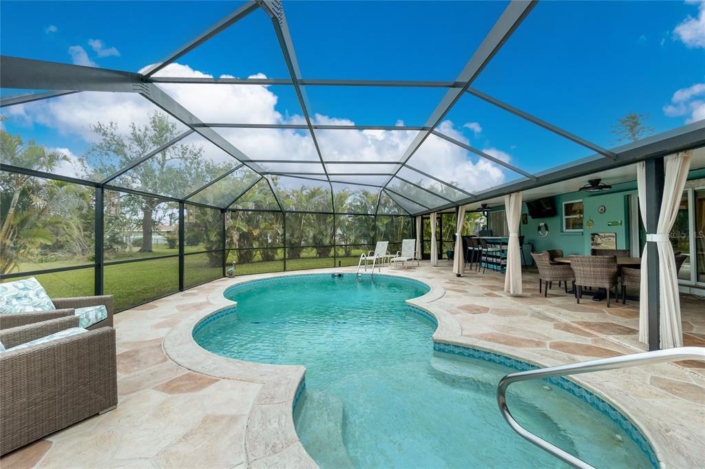 This is the home you have been waiting for!! welcome to this beautifully updated 3-bedroom, 2-bath heated pool home in the desirable community of rotonda west! this home offers an inviting open-concept design, perfect for entertaining and everyday living. step into the heart of the home – a stunning kitchen featuring a spacious 5’ x 8’ island (large enough to seat 10-12 ppl), quartz countertops modern finishes, and lots of storage, making it ideal for cooking and gathering. the seamless flow into the living room with new electric fireplace (2024) enhances the home's airy and welcoming atmosphere. enjoy florida living at its finest with an oversized 12’ x 60’ lanai perfect for entertaining, relaxing, or enjoying the serene surroundings. beautiful outdoor sheers adorn the lanai giving you the option to enhance privacy and a give you a cabana feel when entertaining. the split-bedroom layout offers privacy, with a spacious primary suite with a walk-in closet, 2 additional closets and a makeup/dressing room. there are also two additional well-appointed bedrooms. this home offers a metal roof (2022), hurricane windows and doors (2020), 2 hurricane sliders (2024), 1 slider in bedroom 2 was not replaced, a new pool cage and lanai roof (2023), hot water tank (2020). stainless steel appliances (dishwasher-2019, refrigerator-2023) water softener replaced (2022). owners flood insurance policy is transferable. this home did not flood during any of the past few years hurricanes. located in a peaceful and picturesque neighborhood, this home is close to golf courses, beaches, shopping, and dining, atlanta braves and tampa bay rays spring training facilities, and close to world class fishing on boca grande. this home checks all the boxes. don't miss the opportunity to make this move-in-ready gem yours!52 GOLFVIEW, ROTONDA WEST, FL 33947