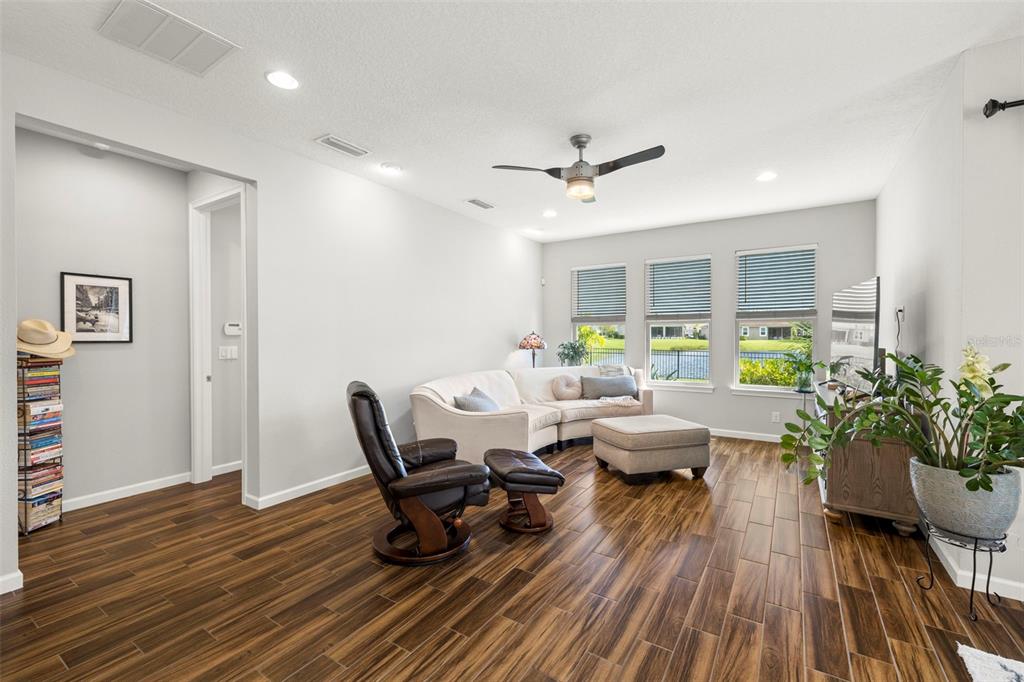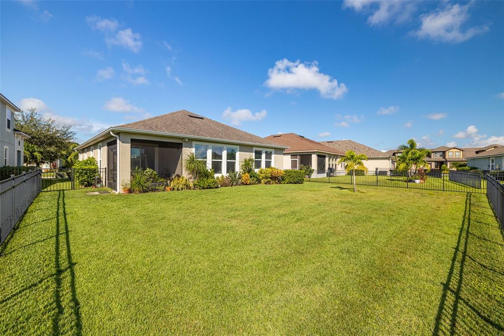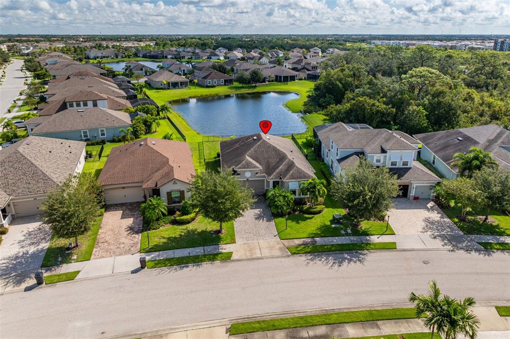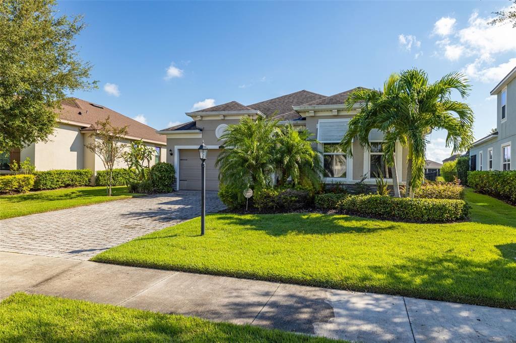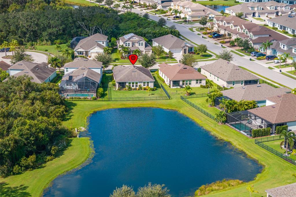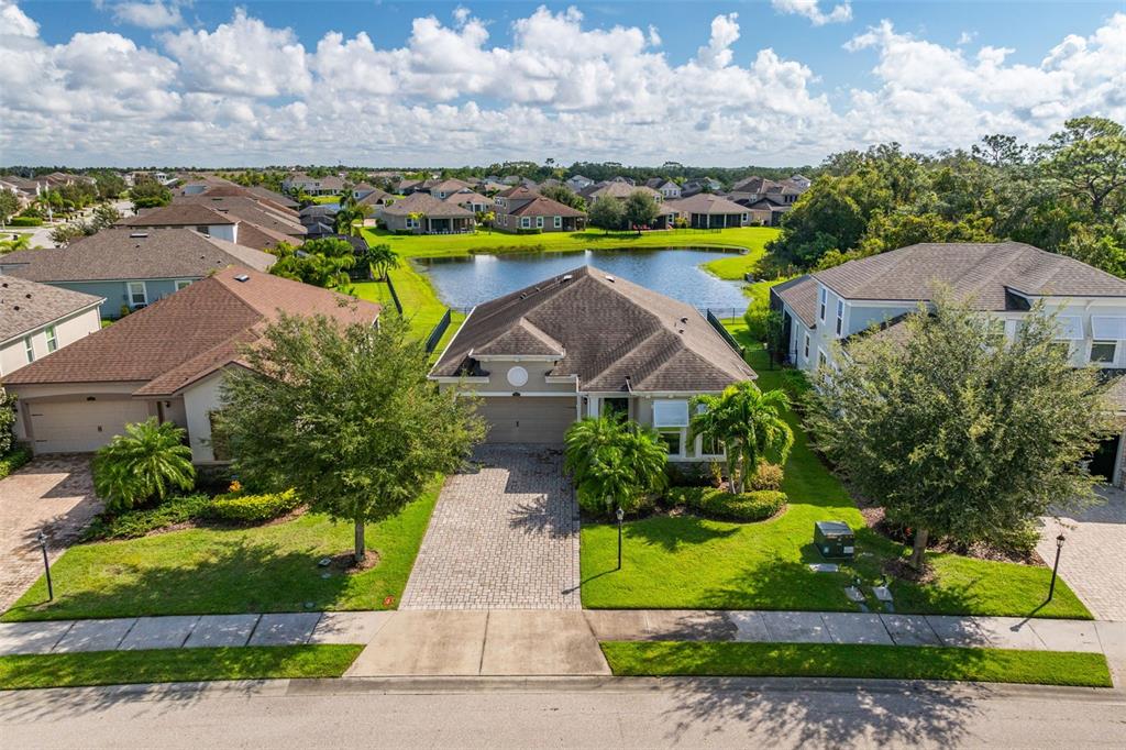 Welcome home! beautiful 2 bedrooms, 2 bathrooms, 2 car garage, plus den. kitchen is stunning with a large island, granite counters, tile backsplash, stainless appliances, reverse osmosis water system, and open to the dining & living areas. tile flooring throughout makes for easy care. split bedroom plan with possible 3rd bedroom currently used as home office. screened lanai has water view and fenced yard for privacy. garage has storage system to keep everything off the floor, whole house water filtration system, and has a mini-split air conditioner. fresh interior paint and new lighting and ceiling fans. no flood zone and non-evacuation for peace of mind. community amenities include lawn maintenance, a walking trail through florida scrub and wetland areas, resort style pool with beach entry and lap lanes, clubhouse with fitness center, and a playground. a+ schools; gullett elementary, lakewood ranch high school, and mona jain middle school, lecom, & manatee tech east campus. located near restaurants, shopping, golf courses, marinas, beaches, & more. this is paradise!5213 HORIZON, BRADENTON, FL 34211
