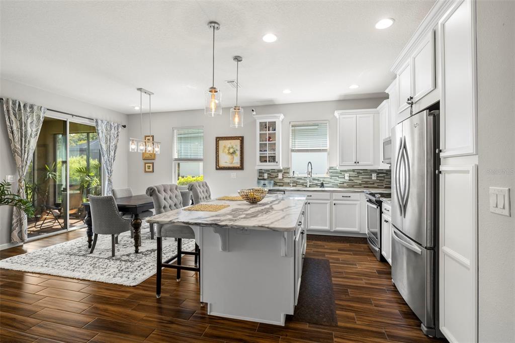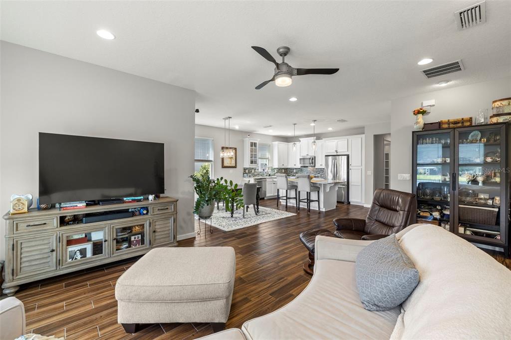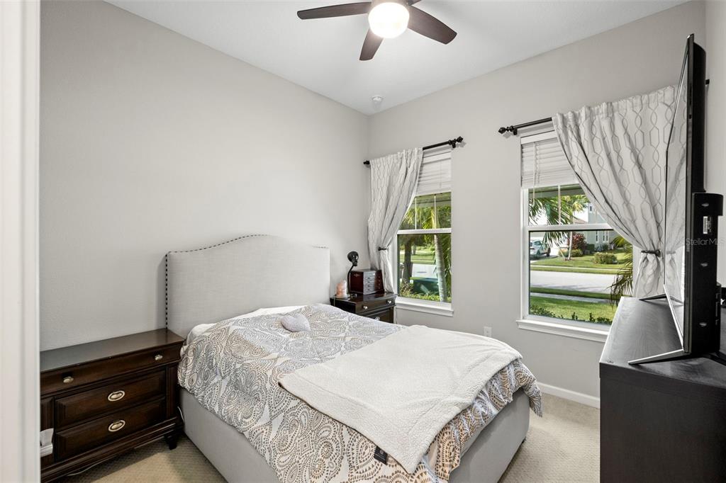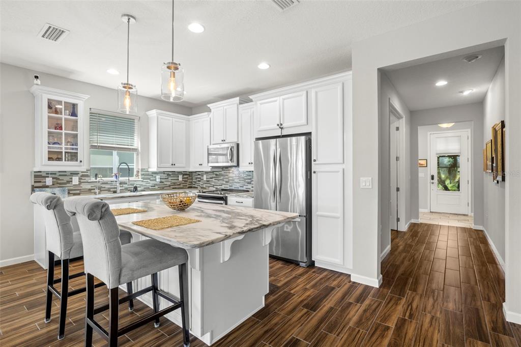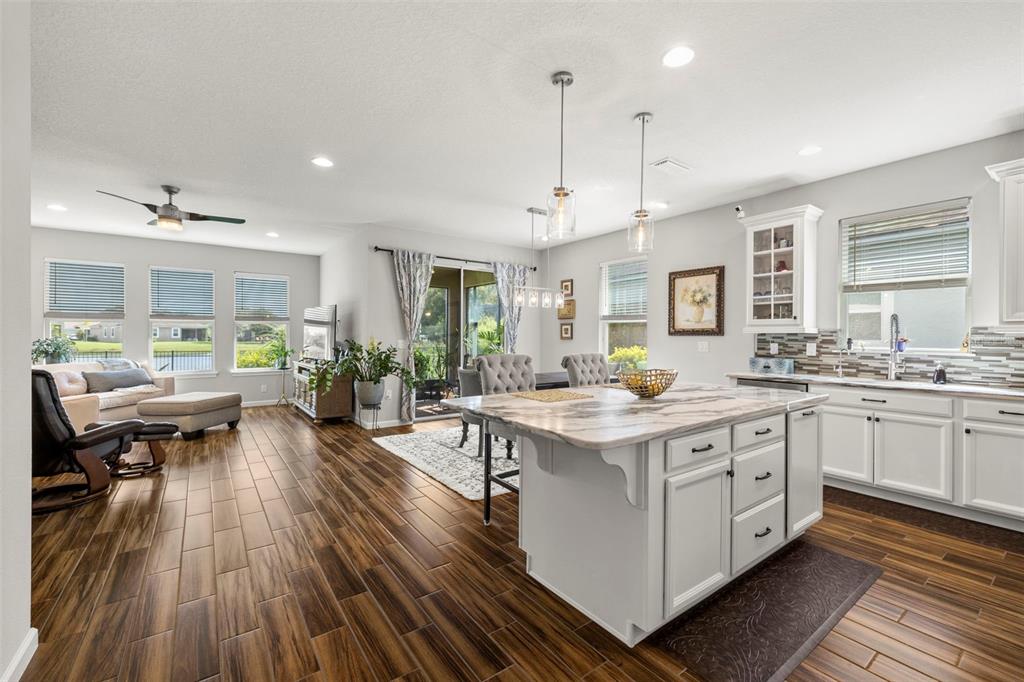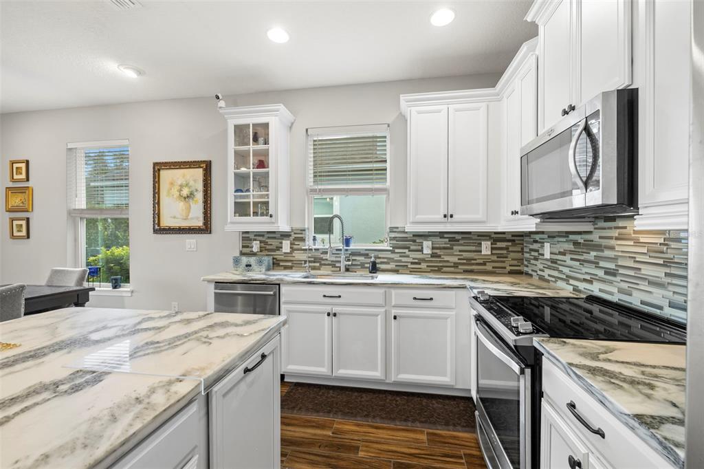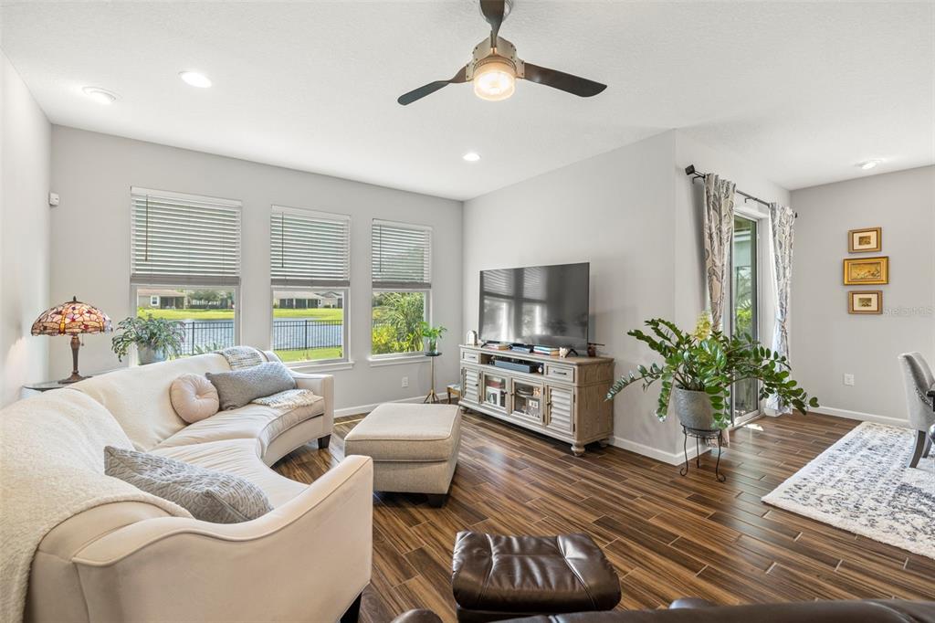 Welcome home! beautiful 2 bedrooms, 2 bathrooms, 2 car garage, plus den. kitchen is stunning with a large island, granite counters, tile backsplash, stainless appliances, reverse osmosis water system, and open to the dining & living areas. tile flooring throughout makes for easy care. split bedroom plan with possible 3rd bedroom currently used as home office. screened lanai has water view and fenced yard for privacy. garage has storage system to keep everything off the floor, whole house water filtration system, and has a mini-split air conditioner. fresh interior paint and new lighting and ceiling fans. no flood zone and non-evacuation for peace of mind. community amenities include lawn maintenance, a walking trail through florida scrub and wetland areas, resort style pool with beach entry and lap lanes, clubhouse with fitness center, and a playground. a+ schools; gullett elementary, lakewood ranch high school, and mona jain middle school, lecom, & manatee tech east campus. located near restaurants, shopping, golf courses, marinas, beaches, & more. this is paradise!5213 HORIZON, BRADENTON, FL 34211