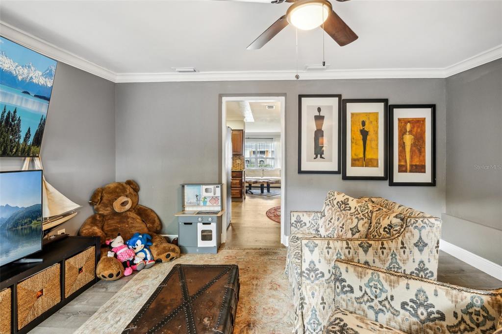 Ceiling Fan(s) High Ceilings Living Room/Dining Room Combo Stone Counters Solid Wood CabinetsCrown MoldingExterior Features: