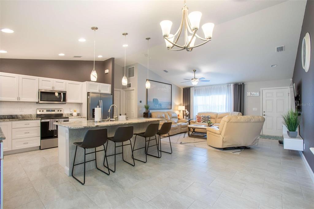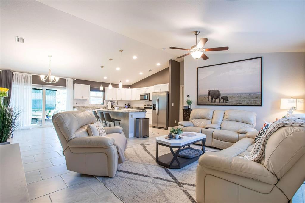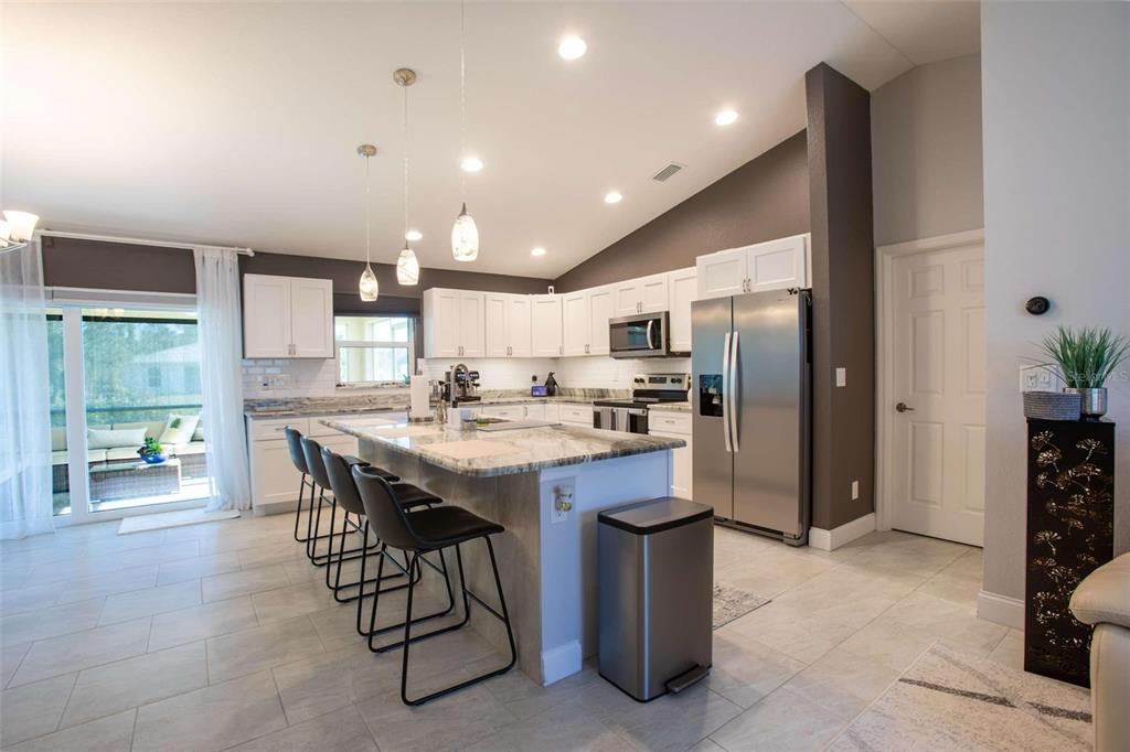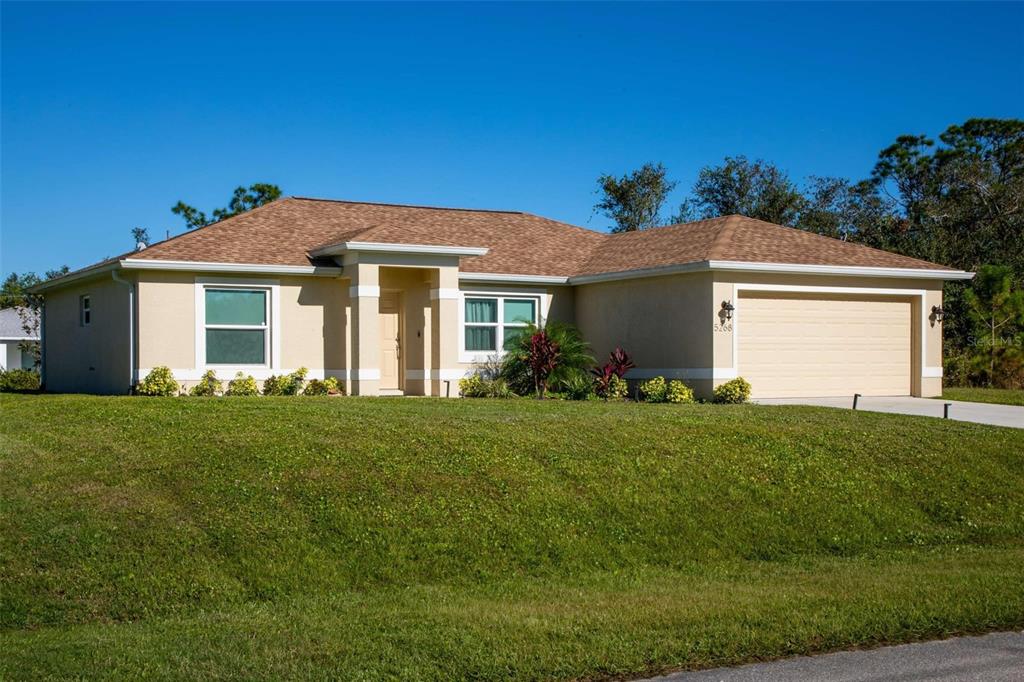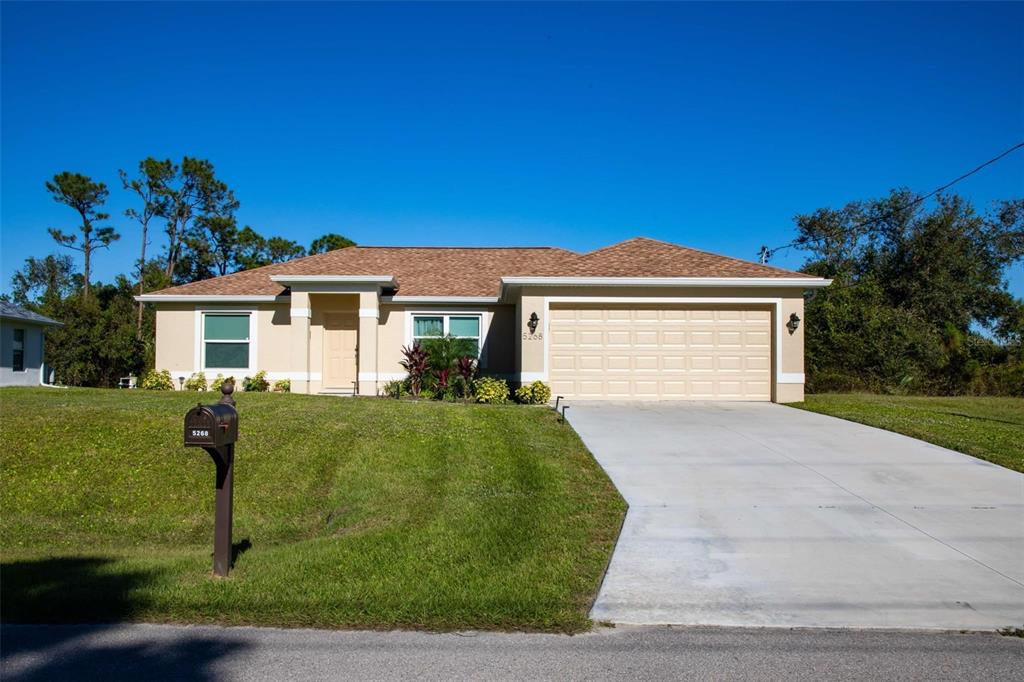 Beautiful 2022-built home available now in north port! this property is situated on a greenbelt with no hoa or deed restrictions and is not located in a flood zone. designed with quality and efficiency in mind, this home features numerous upgrades. the open, split floor plan boasts vaulted ceilings and durable porcelain tile throughout. the kitchen is equipped with stainless steel appliances, granite countertops, full-overlay cabinets, and matching granite window sills. additional highlights include impact-insulated low-e windows, brand-name plumbing and electrical fixtures, a 3-zone sprinkler system, and a screened lanai with composite decking. this home was built to minimize insurance, maintenance, and utility costs. it also comes with 30-year shingles, a fully sodded and landscaped yard, and a spacious layout perfect for comfortable living. optional furnishings available for purchase. schedule your showing today to see this stunning home!5268 DELIGHT, NORTH PORT, FL 34288