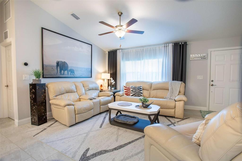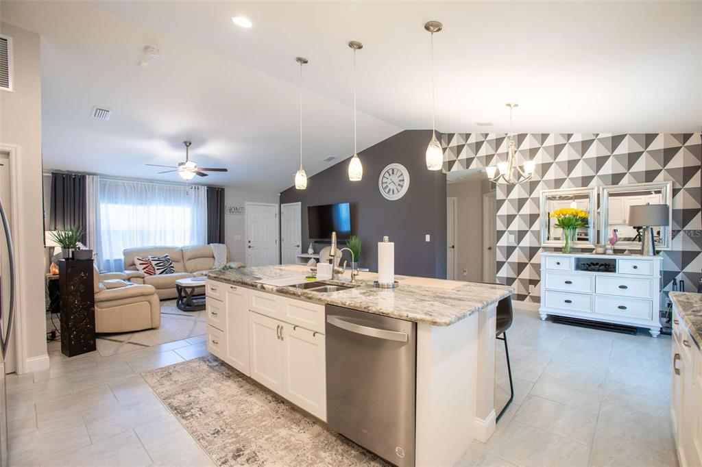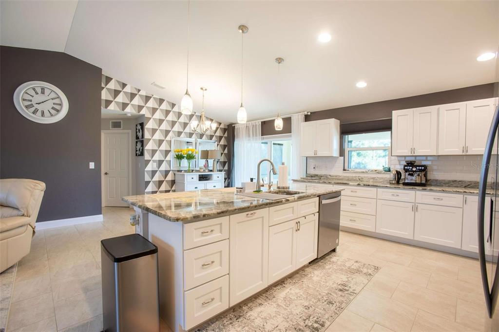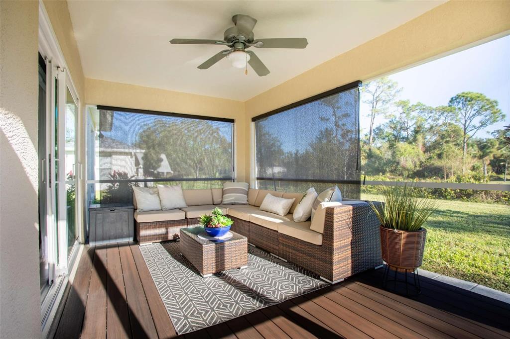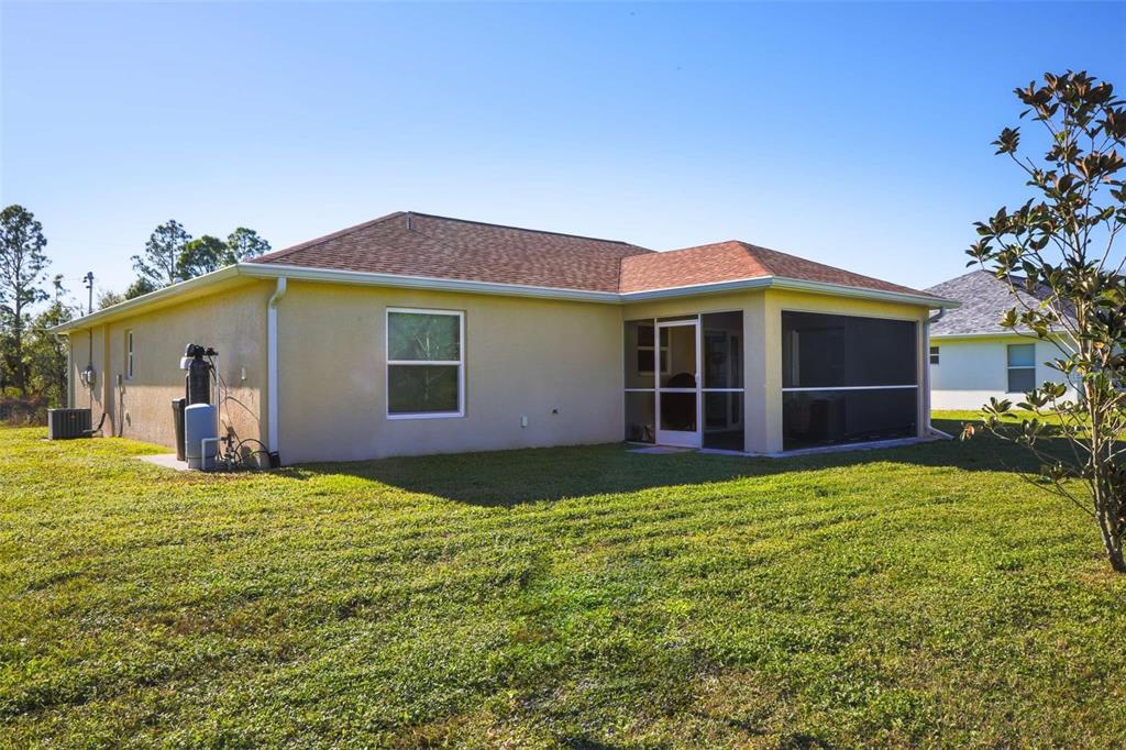 Beautiful 2022-built home available now in north port! this property is situated on a greenbelt with no hoa or deed restrictions and is not located in a flood zone. designed with quality and efficiency in mind, this home features numerous upgrades. the open, split floor plan boasts vaulted ceilings and durable porcelain tile throughout. the kitchen is equipped with stainless steel appliances, granite countertops, full-overlay cabinets, and matching granite window sills. additional highlights include impact-insulated low-e windows, brand-name plumbing and electrical fixtures, a 3-zone sprinkler system, and a screened lanai with composite decking. this home was built to minimize insurance, maintenance, and utility costs. it also comes with 30-year shingles, a fully sodded and landscaped yard, and a spacious layout perfect for comfortable living. optional furnishings available for purchase. schedule your showing today to see this stunning home!5268 DELIGHT, NORTH PORT, FL 34288