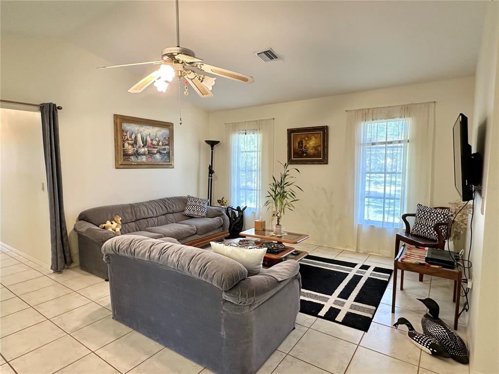 Location! this spacious home features 3 bedrooms (each with its own walk-in closet), 2 bathrooms, 2-car garage and multiple living areas. located on a peaceful street in north port, this home offers a large front and backyard, as well as a welcoming front porch. inside, you'll find high ceilings that create a bright, airy feel throughout. with a spacious 1,739 square feet of living space and a split open floor plan making it an ideal choice for families seeking comfort and convenience. the a/c and the refrigerator is brand new! conveniently positioned near cocoplum plaza, featuring a variety of shops and eateries, wellen park, the new atlanta braves training stadium, and the river walk is just a short drive away. the nearby mckibben park hosts a basketball court, tennis court, racquetball courts, shuffleboard, 2 playgrounds, fishing, and pavilion available for rent. for those wishing to embark on an adventure along the blueway, the park features a canoe/kayak launch. no hoa/ cdd!!! no flood insurance required!5277 SAN LUIS, NORTH PORT, FL 34286