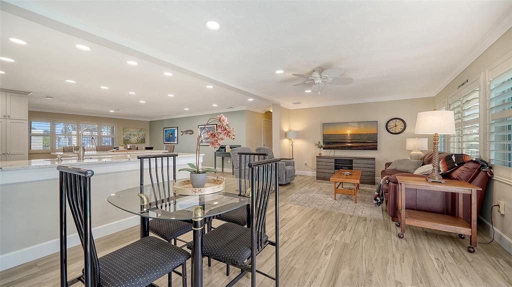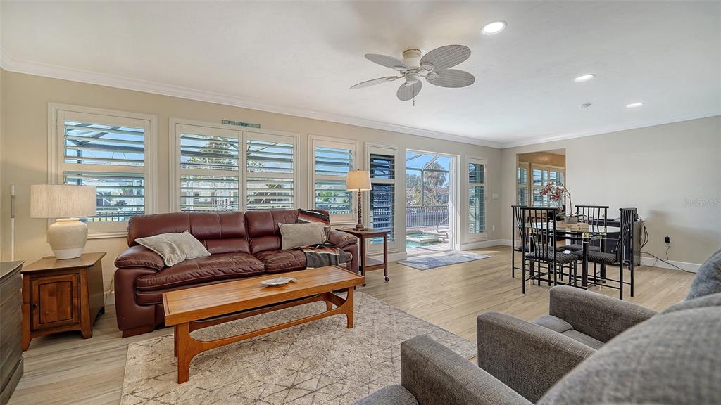 Split Bedroom Walk-In Closet(s)Ceiling Fan(s) Eating Space In Kitchen Living Room/Dining Room Combo Stone Counters Thermostat Open Floorplan Window Treatments Solid Wood CabinetsCrown Molding Kitchen/Family Room ComboExterior Features:
