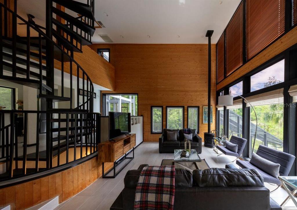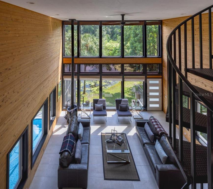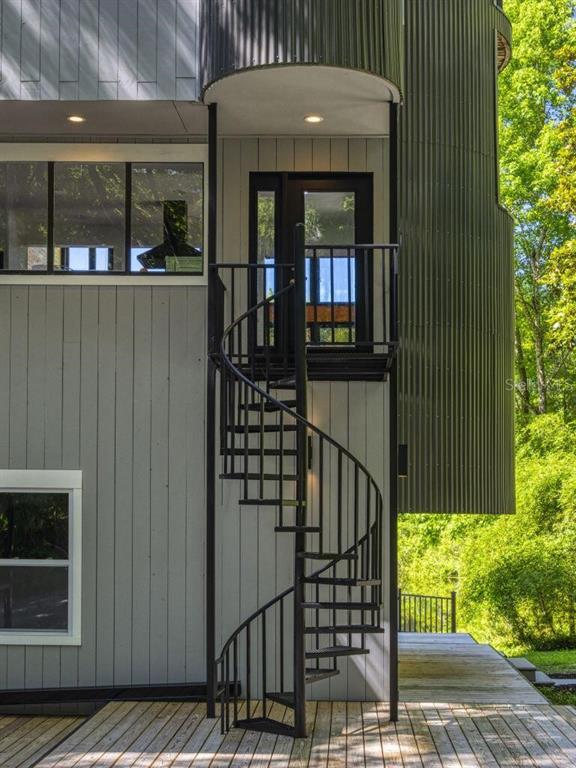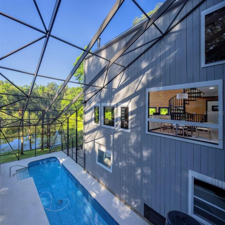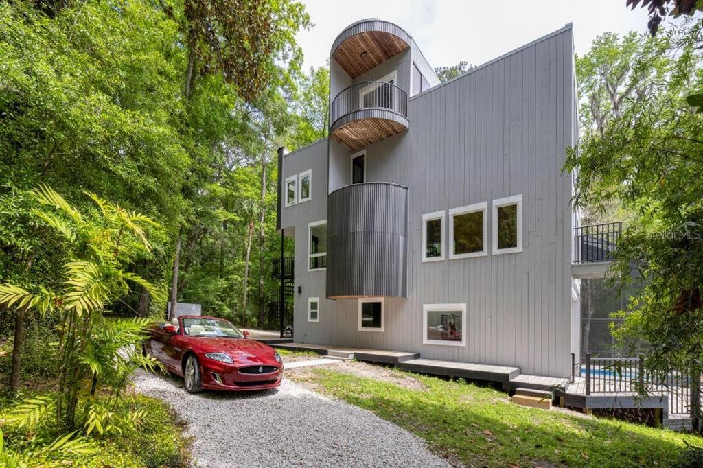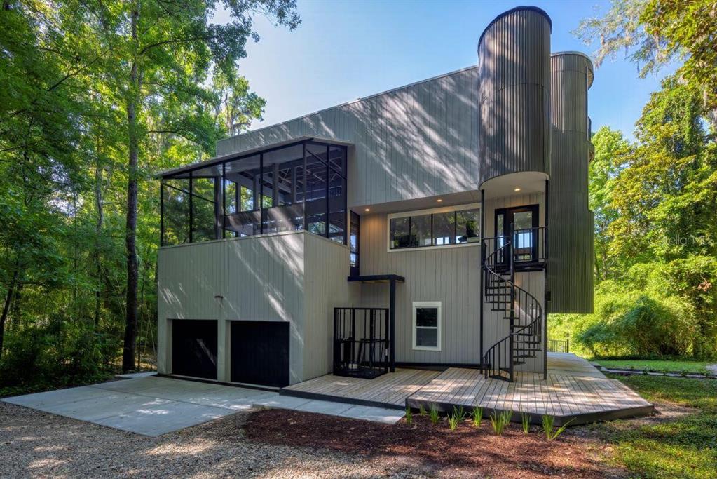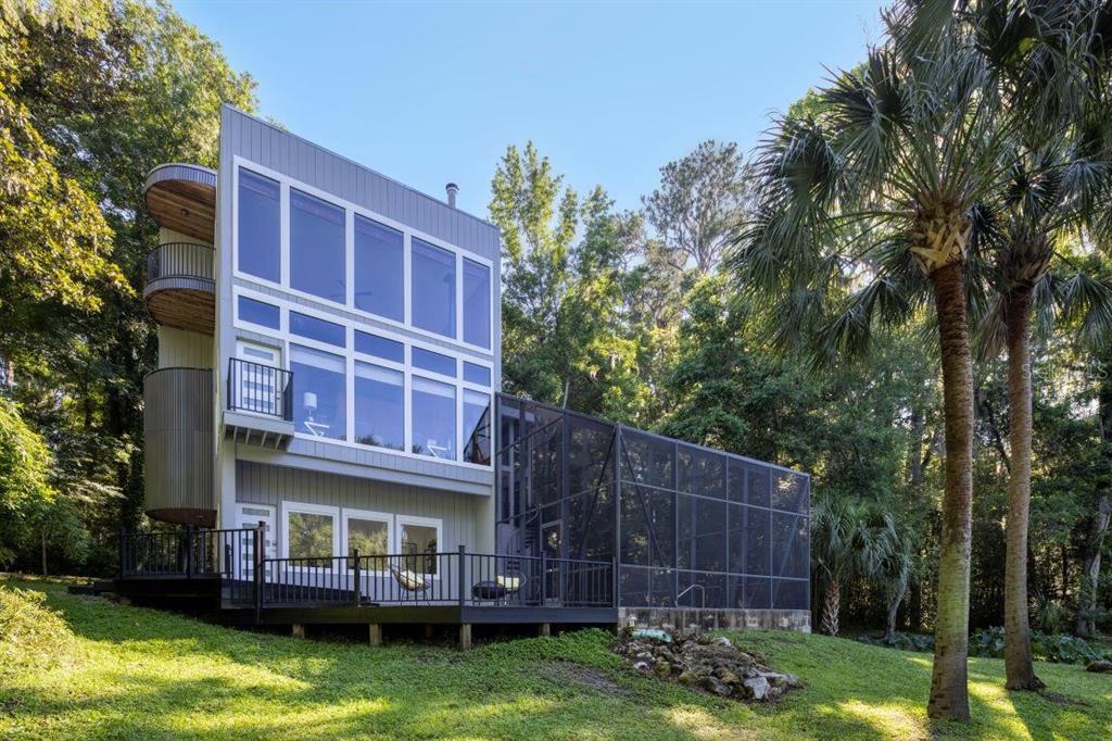 With its unparalleled architectural beauty, breath-taking panoramic views, and seamless blend of luxury and nature, 5311 nw 98th terrace isn’t just a home—it's a private retreat offering the ultimate florida lifestyle. want to know more?! 1. architectural design: this post-modern, fully renovated, multi-level home is inspired by frank lloyd wright's designs, offering a "treehouse" aesthetic with extensive use of natural materials and seamless integration into its wooded setting. its design emphasizes light, space, and connection to nature offering a luxurious and unique living experience. 2. exclusive amenities: the property boasts a heated 40-foot lap pool within a multi-story screened enclosure. situated on nearly two acres of wooded land, an abundance of large windows and natural light, high ceilings, multiple decks and balconies, ensures that the property provides stunning lake views and an immersive connection to nature. 3. spacious luxurious living: with over 2,300 square feet of living space spread across 4 levels, excluding the 400 square foot main screened deck area and double car garage, the home includes a sunken lounge, open-concept living and dining areas, and a top-floor observatory. the primary suite features a spa-like ensuite bathroom with a freestanding tub and a two-story rain shower and takes up the entire 3rd floor. while the music room, guest bedrooms and guest bathroom, a occupy the 1st floor. 4. modern conveniences: the home has been totally upgraded and is fully equipped with modern features like a built-in elevator. the home is equipped with high-end appliances, luxury flooring and also features a showcase spiral staircase spanning the 4 floors, granite countertops, and custom wood cabinetry. 5. location: an upscale, highly sought-after neighborhood, located just 19 minutes from the university of florida and 23 minutes from gainesville airport; other nearby amenities include devil’s millhopper geological state park and san felasco hammock preserve state park, hunter's crossing shopping center, uf health shands hospital and more, offering a balanced lifestyle, offering both tranquility and accessibility to urban conveniences. 6. flood zone x: unlike many florida properties, this home is situated in a flood zone x, providing peace of mind for buyers concerned about climate risks.5311 NW 98TH, GAINESVILLE, FL 32653