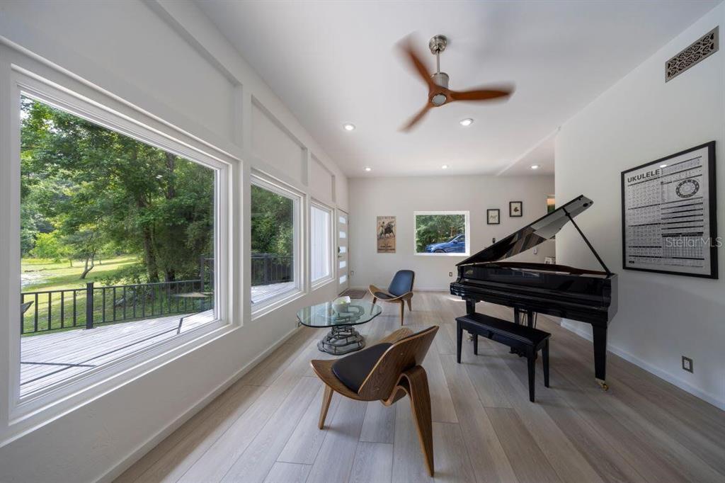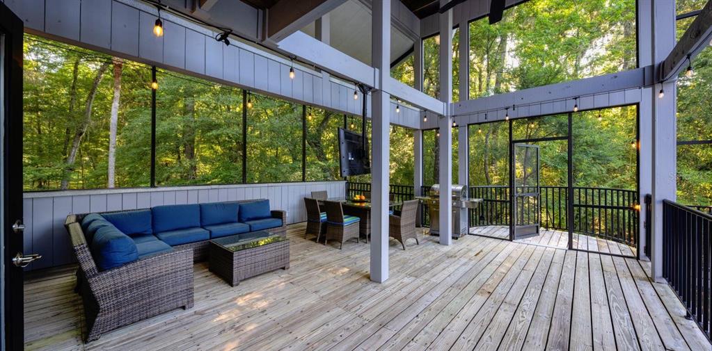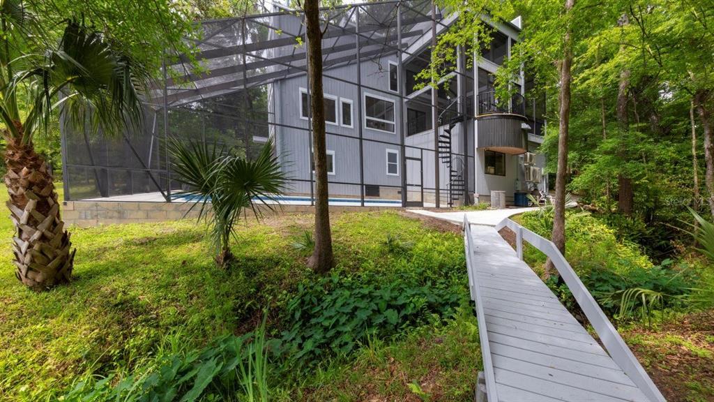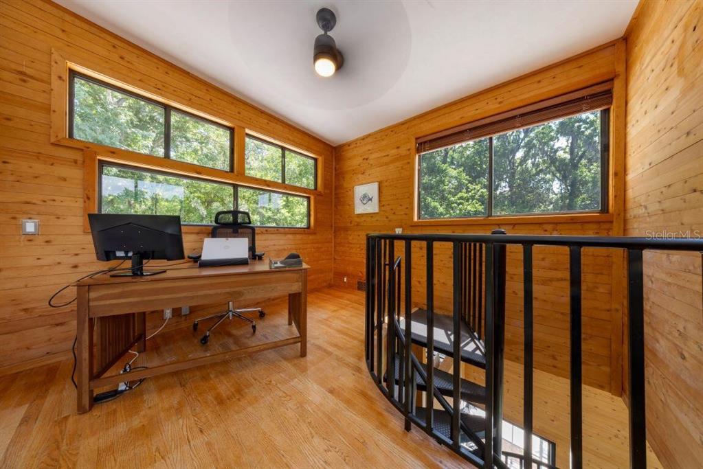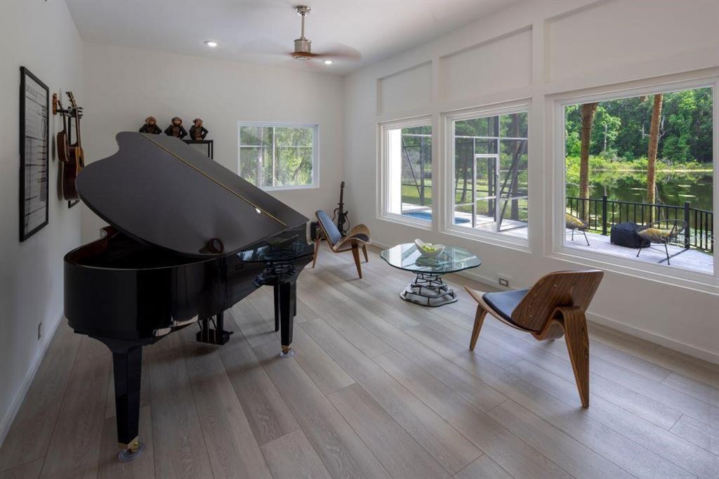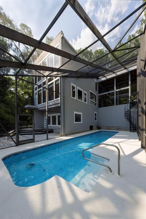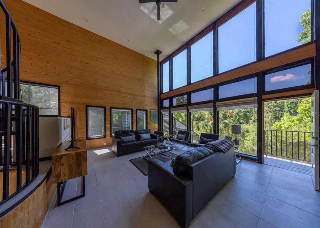 With its unparalleled architectural beauty, breath-taking panoramic views, and seamless blend of luxury and nature, 5311 nw 98th terrace isn’t just a home—it's a private retreat offering the ultimate florida lifestyle. want to know more?! 1. architectural design: this post-modern, fully renovated, multi-level home is inspired by frank lloyd wright's designs, offering a "treehouse" aesthetic with extensive use of natural materials and seamless integration into its wooded setting. its design emphasizes light, space, and connection to nature offering a luxurious and unique living experience. 2. exclusive amenities: the property boasts a heated 40-foot lap pool within a multi-story screened enclosure. situated on nearly two acres of wooded land, an abundance of large windows and natural light, high ceilings, multiple decks and balconies, ensures that the property provides stunning lake views and an immersive connection to nature. 3. spacious luxurious living: with over 2,300 square feet of living space spread across 4 levels, excluding the 400 square foot main screened deck area and double car garage, the home includes a sunken lounge, open-concept living and dining areas, and a top-floor observatory. the primary suite features a spa-like ensuite bathroom with a freestanding tub and a two-story rain shower and takes up the entire 3rd floor. while the music room, guest bedrooms and guest bathroom, a occupy the 1st floor. 4. modern conveniences: the home has been totally upgraded and is fully equipped with modern features like a built-in elevator. the home is equipped with high-end appliances, luxury flooring and also features a showcase spiral staircase spanning the 4 floors, granite countertops, and custom wood cabinetry. 5. location: an upscale, highly sought-after neighborhood, located just 19 minutes from the university of florida and 23 minutes from gainesville airport; other nearby amenities include devil’s millhopper geological state park and san felasco hammock preserve state park, hunter's crossing shopping center, uf health shands hospital and more, offering a balanced lifestyle, offering both tranquility and accessibility to urban conveniences. 6. flood zone x: unlike many florida properties, this home is situated in a flood zone x, providing peace of mind for buyers concerned about climate risks.5311 NW 98TH, GAINESVILLE, FL 32653