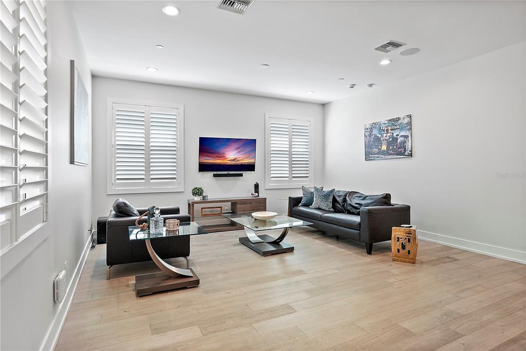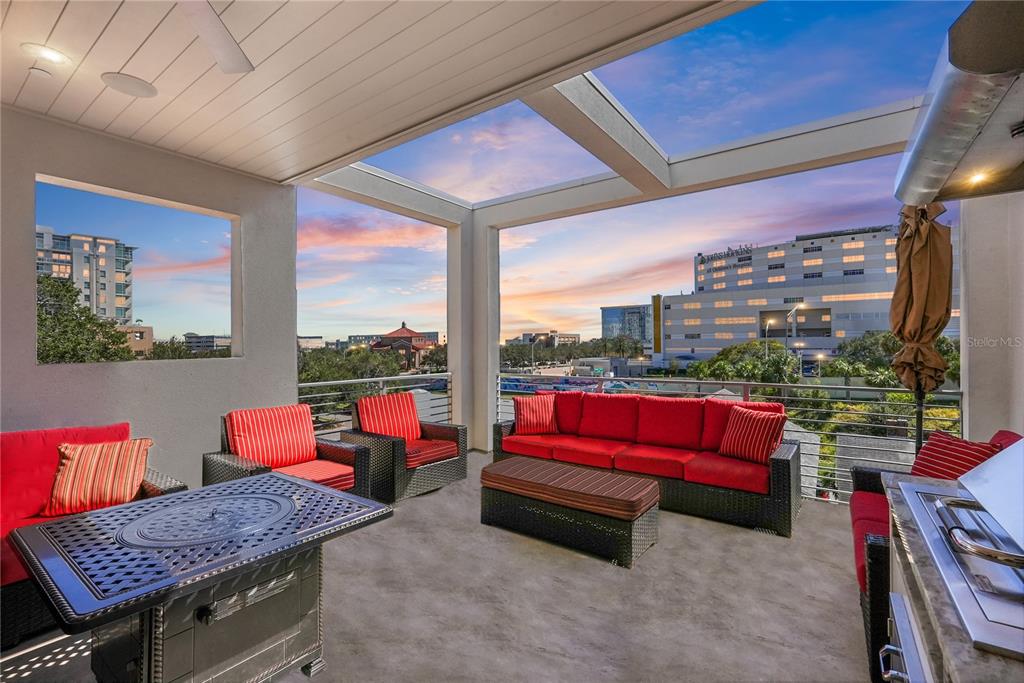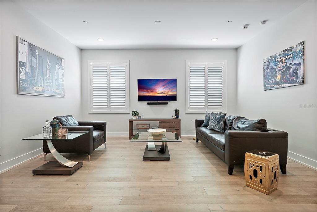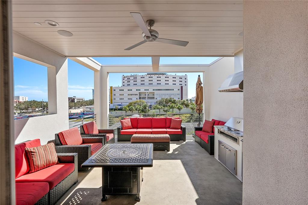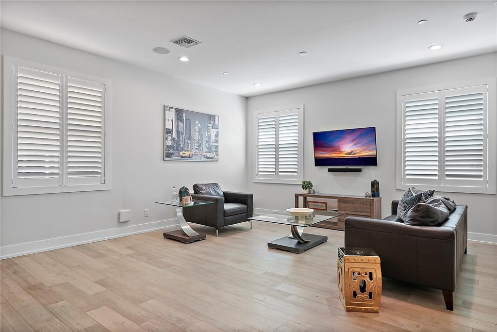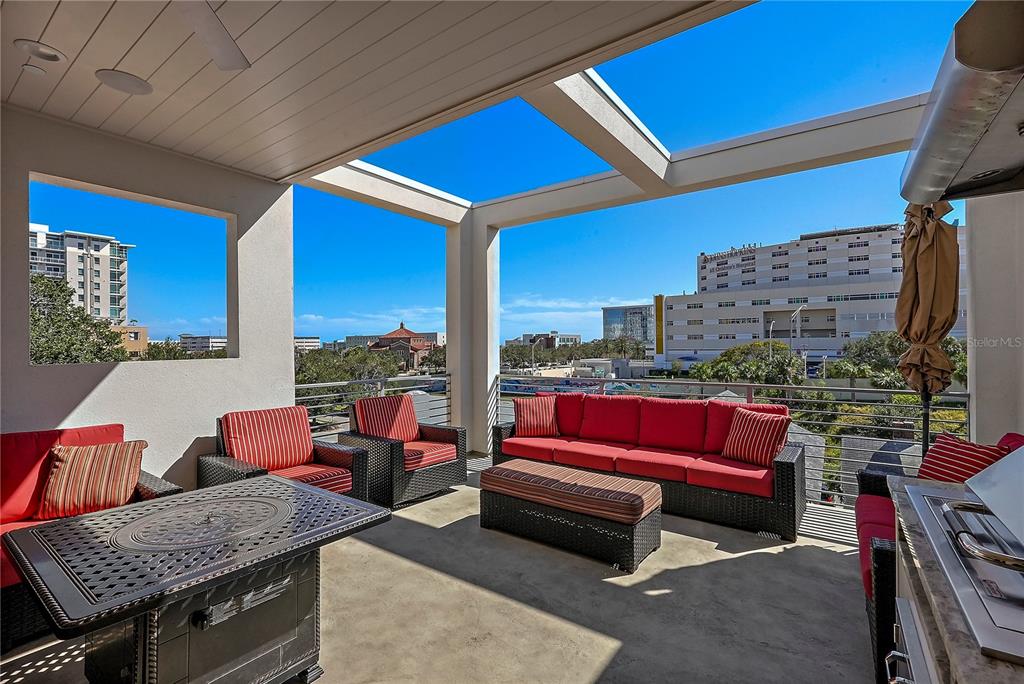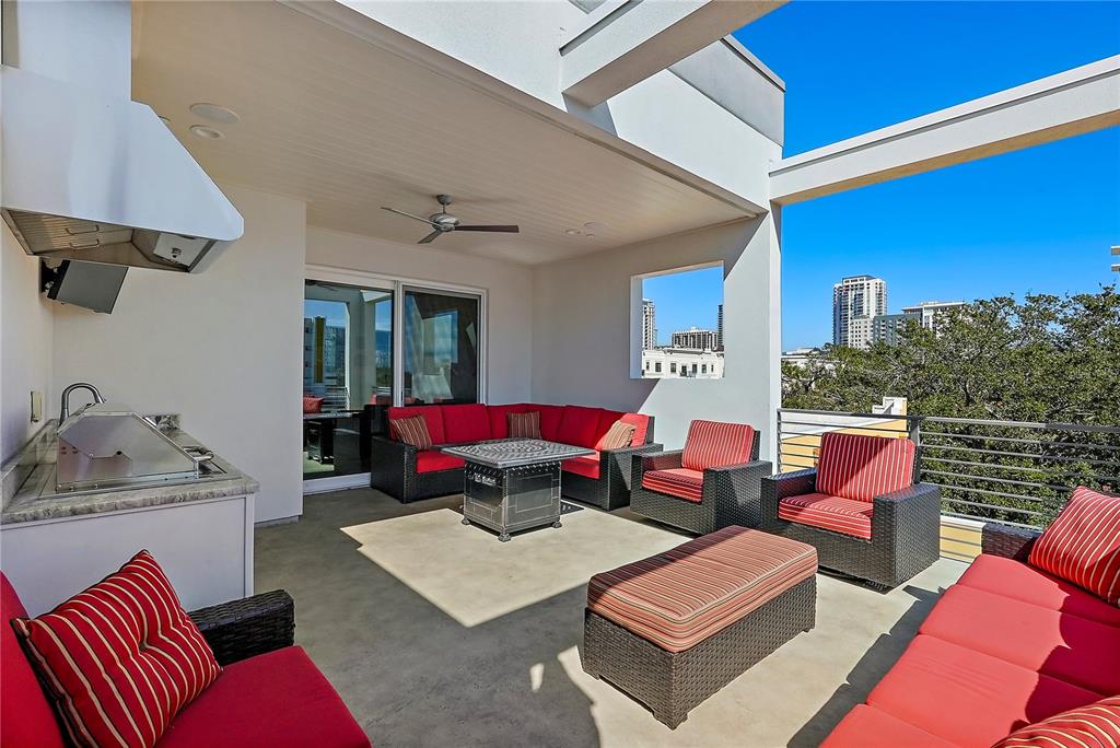 One or more photo(s) has been virtually staged. welcome to the sabal, downtown st. petersburg's premier smart luxury all-block townhome. living here means stepping into a world of modern luxury and cutting-edge convenience. this stunning 2,700 sq ft, 4-level townhome, complete with its own elevator and rooftop terrace is located high and dry in the heart of downtown. this home offers 3 bedrooms, 3 full bathrooms, and 2 half baths, blending style, function, and advanced home automation for the ultimate living experience. highlights include state-of-the-art technology, featuring automated lighting, climate control, and a sonos audio and samsung tv entertainment system throughout every floor, as well as security and access monitoring with the skybell doorbell, guardian security system, and automatic door locks. luxury finishes, such as engineered hardwood floors, sleek quartz countertops, and a kitchenaid stainless steel appliance package, make the open-concept kitchen ideal for entertaining, while dual 15 seer hvac systems and pgt windguard hurricane impact windows and doors ensure comfort and energy efficiency. your private elevator leads to the 4th-floor bonus room, illuminated by floor to ceiling glass sliding doors that open to an expansive rooftop terrace. here, breathtaking city views set the stage for hosting guests with your outdoor built-in kitchen, complete with an electric grill, refrigerator, and sink. the spacious primary suite offers a dual vanity, custom closets, and smart features, while the secondary adjacent junior suite has been converted into a custom dressing room with a vanity and island, providing incredible flexibility as it can be easily changed back to a bedroom. perfectly located for walkability, you can stroll to nearby coffee shops, restaurants, museums, and the beautiful st. petersburg waterfront. with solid masonry construction and impeccable design, this home ensures that you live in both comfort and style. whether you're entertaining guests or enjoying a peaceful evening under the stars, this is truly city-living at its finest. a wonderful thing to note is that it has been proven to maintain power through any weather. welcome home to the sabal, where luxury, technology, and downtown living meet, and no detail has been overlooked.Townhouse 3 bedrooms - THE SABAL ST PETE for Sale