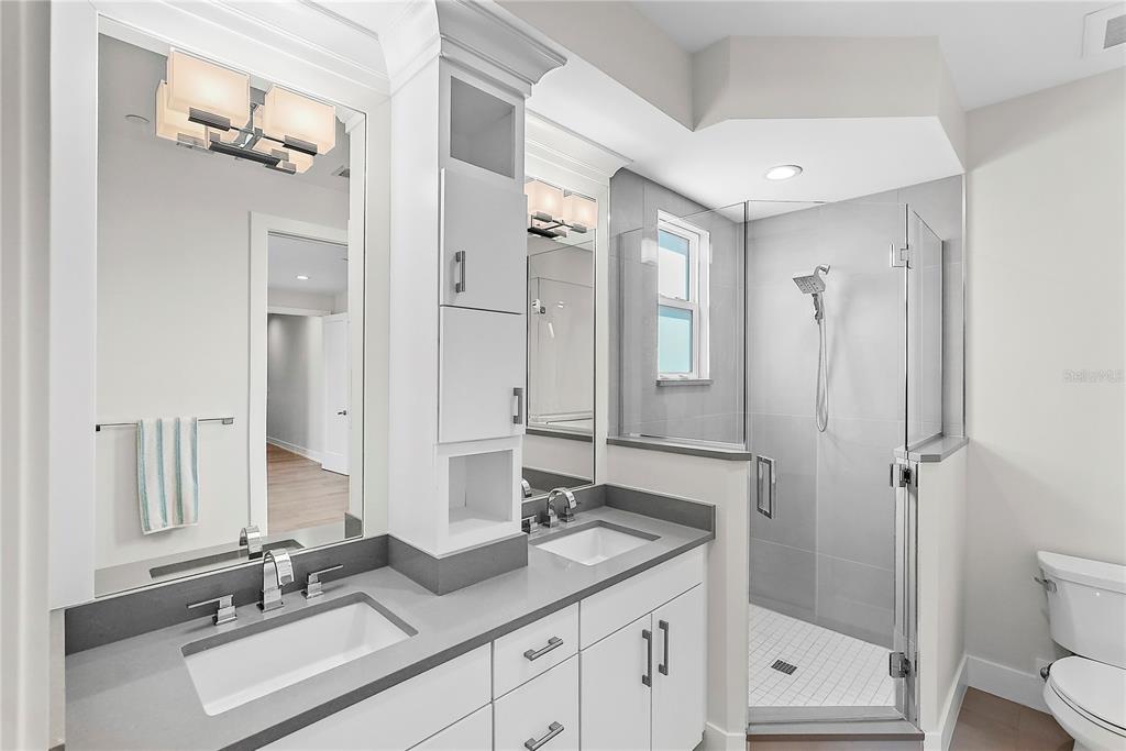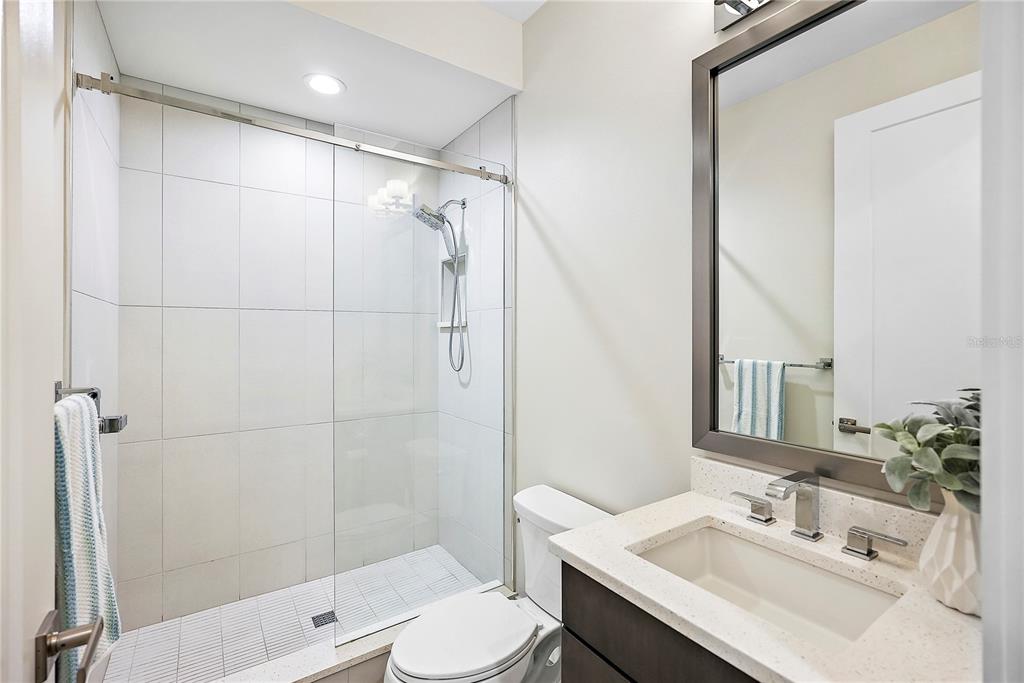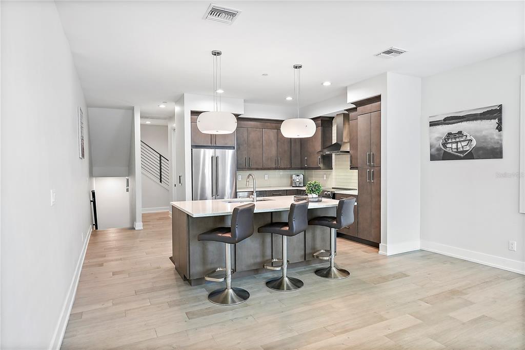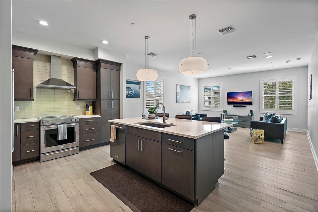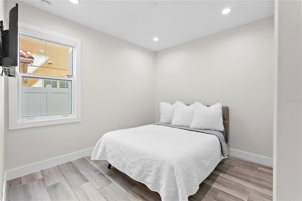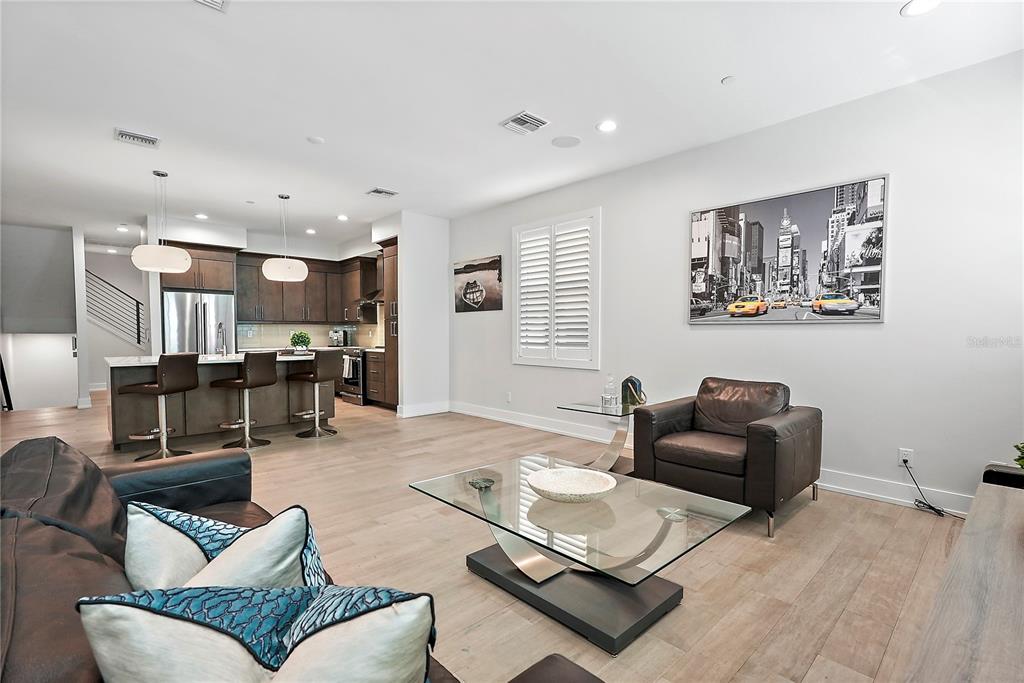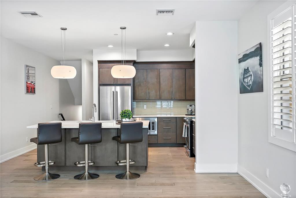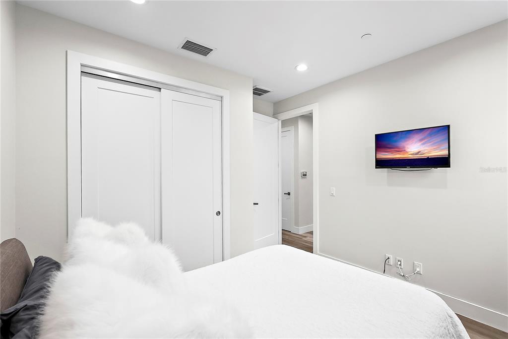 One or more photo(s) has been virtually staged. welcome to the sabal, downtown st. petersburg's premier smart luxury all-block townhome. living here means stepping into a world of modern luxury and cutting-edge convenience. this stunning 2,700 sq ft, 4-level townhome, complete with its own elevator and rooftop terrace is located high and dry in the heart of downtown. this home offers 3 bedrooms, 3 full bathrooms, and 2 half baths, blending style, function, and advanced home automation for the ultimate living experience. highlights include state-of-the-art technology, featuring automated lighting, climate control, and a sonos audio and samsung tv entertainment system throughout every floor, as well as security and access monitoring with the skybell doorbell, guardian security system, and automatic door locks. luxury finishes, such as engineered hardwood floors, sleek quartz countertops, and a kitchenaid stainless steel appliance package, make the open-concept kitchen ideal for entertaining, while dual 15 seer hvac systems and pgt windguard hurricane impact windows and doors ensure comfort and energy efficiency. your private elevator leads to the 4th-floor bonus room, illuminated by floor to ceiling glass sliding doors that open to an expansive rooftop terrace. here, breathtaking city views set the stage for hosting guests with your outdoor built-in kitchen, complete with an electric grill, refrigerator, and sink. the spacious primary suite offers a dual vanity, custom closets, and smart features, while the secondary adjacent junior suite has been converted into a custom dressing room with a vanity and island, providing incredible flexibility as it can be easily changed back to a bedroom. perfectly located for walkability, you can stroll to nearby coffee shops, restaurants, museums, and the beautiful st. petersburg waterfront. with solid masonry construction and impeccable design, this home ensures that you live in both comfort and style. whether you're entertaining guests or enjoying a peaceful evening under the stars, this is truly city-living at its finest. a wonderful thing to note is that it has been proven to maintain power through any weather. welcome home to the sabal, where luxury, technology, and downtown living meet, and no detail has been overlooked.Townhouse 3 bedrooms - THE SABAL ST PETE for Sale