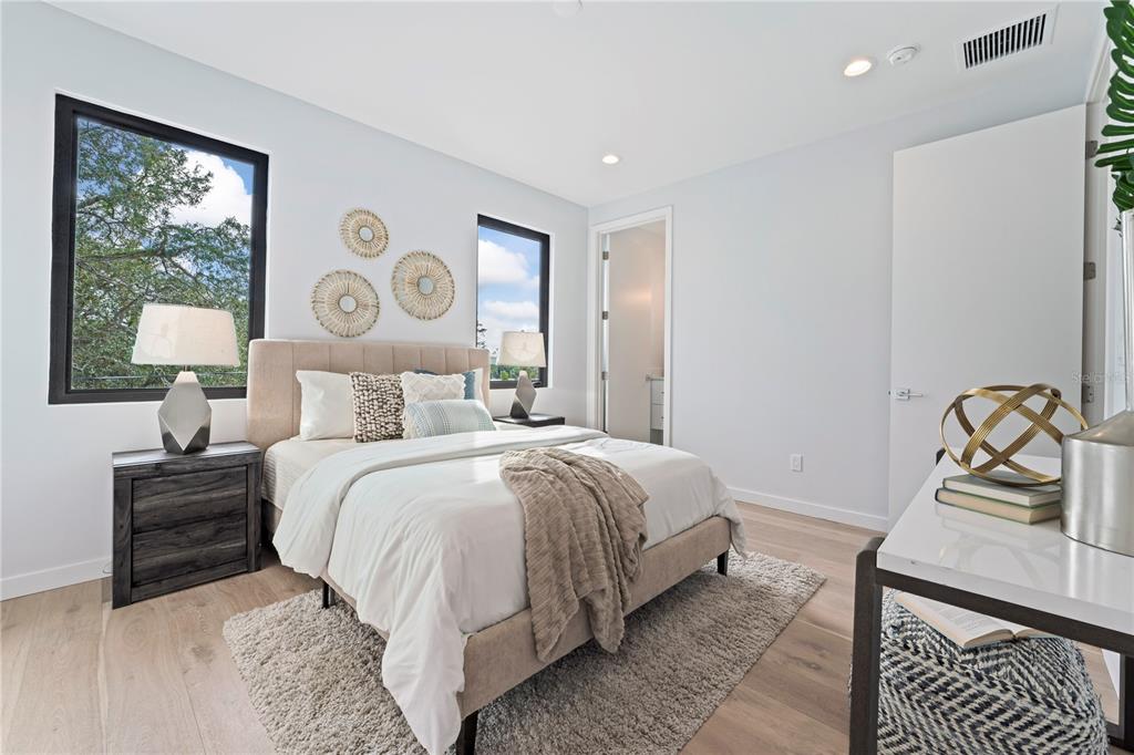 Welcome home to west plaza place. unique property features include a dumbwaiter (lifts up to 300lbs) located in the garage that may be used for transporting groceries and other various purchases up stairs without the need of physical labor. the 24ft deep garage accommodates extended suv's, and trucks. the home's interior features bolster a secondary sweet with ensuite bathroom and a private front patio located on the 1st floor. all bedrooms have their own private ensuite bathroom and minimum of 1 walk in closet. the open floor plan located on the 2nd floor is ripe for entertain with a 13ft long center island (includes a wine and beverage refrigerator) to accommodate entertaining or provide an abundance of counter space for those looking to cook extensively. just off the kitchen the their is a second private outdoor space that is screened in to allow for a comfortable outdoor experience. while inside you will notice engineered hardwood floors throughout the home, and hardwood stair trends to compliment a natural esthetic. part of the functionality is multiple walk in closets in the primary bedroom, modern bathrooms with high end finishes and detailed finishes such as smooth level 4 drywall, insulated interior walls, and 8ft door frames complimenting the heavier solid wood doors. residents will enjoy close proximity to armature works and downtown tampa while sequestered in a well maintained property and growing neighborhood!Townhouse 3 bedrooms - C59 | WEST PLAZA PLACE TOWNHOMES for Sale