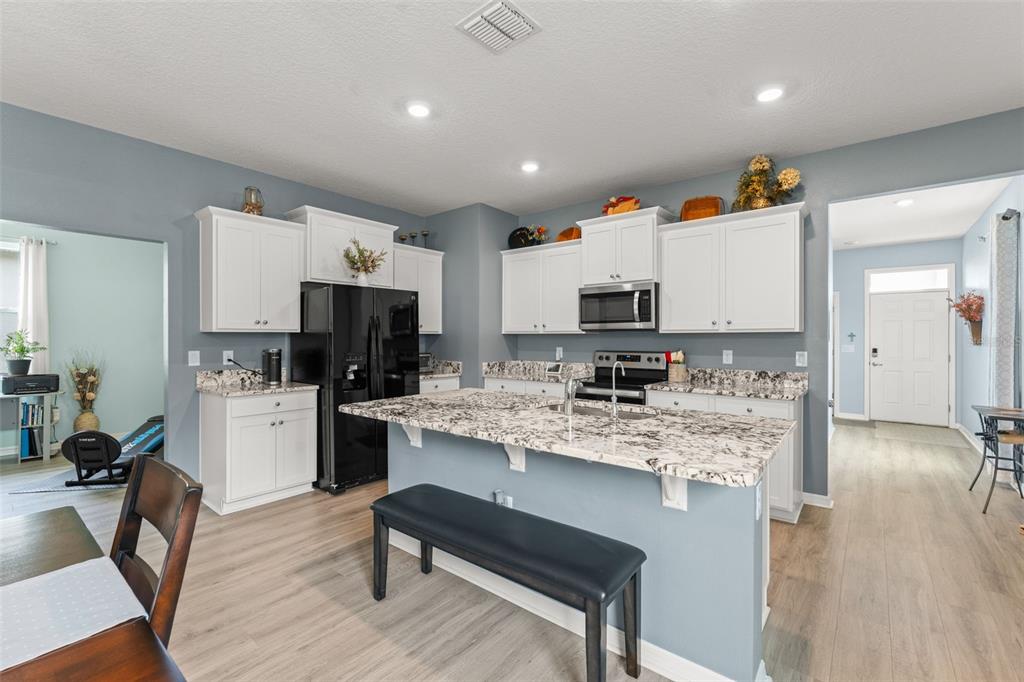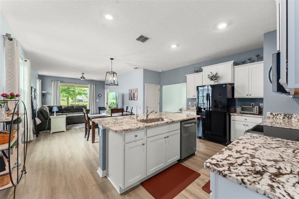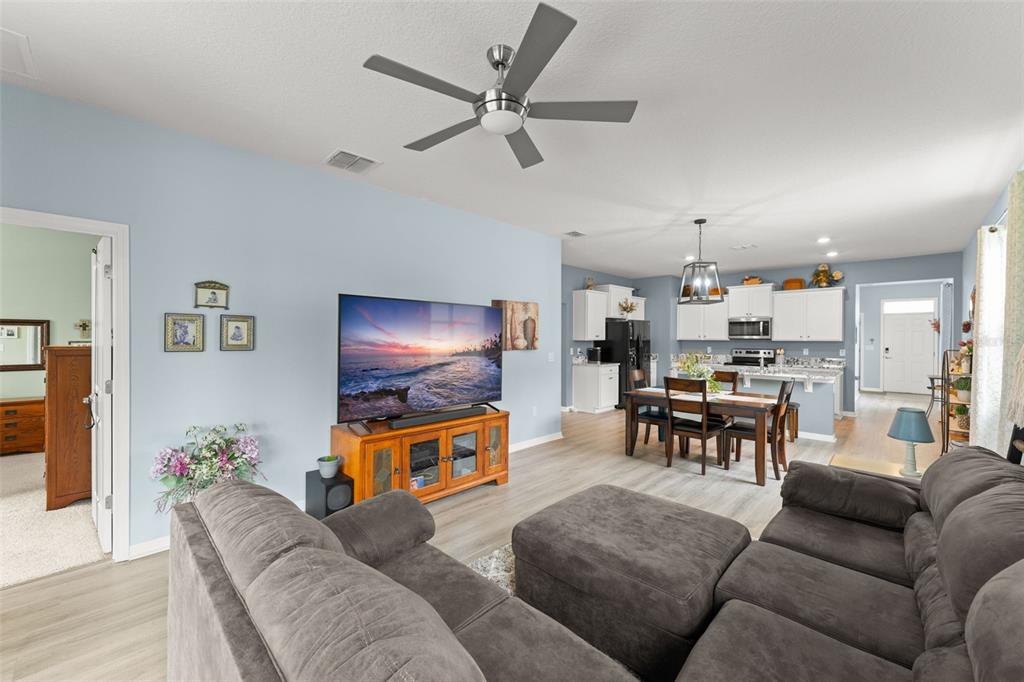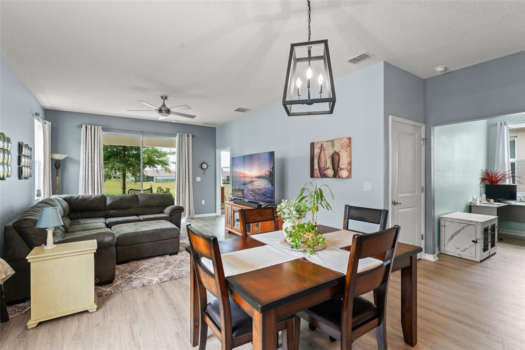 **this property qualifies for a closing cost credit up to $4,600 through the seller’s preferred lender.**skip the wait for new construction—this like-new 2020 d.r. horton jennings model is move-in ready and packed with upgrades! located in the sought-after beaumont community of wildwood, this 3-bedroom, 2-bathroom home with a dedicated office/flex room offers a spacious, open-concept layout designed for modern living. as you enter, you’re greeted by the 2-car garage and laundry room at the front of the home. down the foyer, you’ll find the secondary bedroom and full bath just off the hall. the heart of the home features a gourmet kitchen with granite countertops, stainless steel appliances, and an oversized prep island with breakfast bar seating—perfect for entertaining. just off the kitchen, the home office/study provides a quiet space to work or create that also could be used as a 3rd bedroom. the open living room flows seamlessly to the covered patio, accessed through sliding glass doors, where you can relax with no rear neighbors for added privacy. the primary suite is tucked away for comfort and includes an ensuite bath with a double vanity and walk-in shower. the beaumont community itself offers fantastic amenities that are just a couple houses down and visible from your home! the clubhouse with a fitness center, a swimming pool, pickleball courts, and bocce ball courts, ensure there’s always something to do without having to go to far from home. the hoa fee covers not only access to these amenities but also lawn maintenance, basic cable, and internet. the location provides easy access to the villages, where residents can enjoy shopping, dining, dancing, and nightly entertainment, while also being close to essential stores. schedule your private showing today and start living the lifestyle you deserve!5395 SUNSHINE, WILDWOOD, FL 34785
