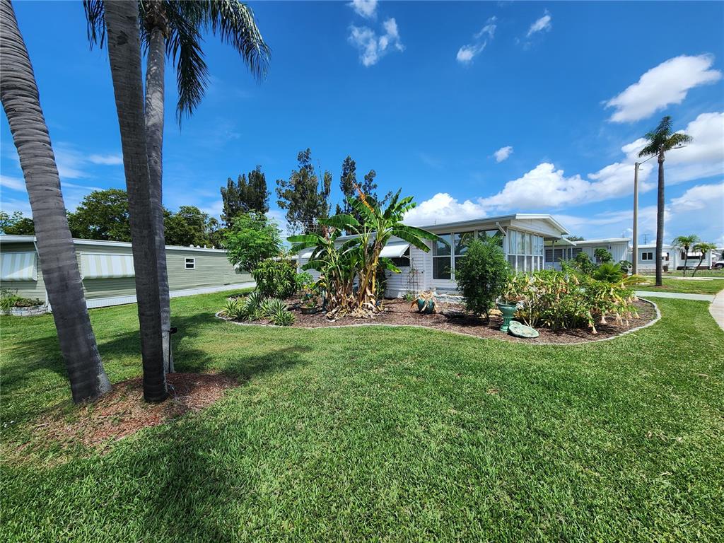 Tucked gracefully on one of the largest corner lots, this property unfolds like a living canvas—its architecture and landscape in constant dialogue with the elements. a mature, self-sustaining garden wraps the home in shades of green and purpose, flowering with pollinator-friendly native flora and fruit trees that tell their own story—banana, soursop, mango, fig, and the tart intrigue of fingerling lime. it is less a yard, more a quietly humming ecosystem. step into the kitchen and you enter a space completely reborn. gutted and reimagined in june 2024, it now stands as a culinary atelier: custom all-wood cabinetry, a gourmet faucet, and a deep sink set with an integrated dish drainer, strainer, and cutting board. a suite of stainless steel appliances—stove, microwave, and dishwasher—gleam under bespoke lighting. below, plumbing is brand new, invisible but essential. the bathroom echoes the same philosophy of craftsmanship and ritual. taken down to its barest bones and reassembled with intention: a separate tiled shower and a japanese soaking tub nest beside custom lighting and a backsplash that blurs the line between utility and art. beneath your feet, ceramic tiles over cement board hold warmth from the ecosmart tankless water heater that whispers efficiency. the house breathes through its updated lungs—windows replaced in thoughtful succession (kitchen 2018, south side 2022, small bedroom 2025), each a frame to shifting light. electricity has been completely modernized: a new breaker box in early 2024, intelligent switch upgrades in the kitchen and bath, outlets refreshed for today’s needs. the ac, a brand-new installation from june 2025, promises comfort through the heat. a 5/8" plywood subfloor anchors it all, hidden beneath layers of luxury vinyl. the structure above is protected by a metal roof, its fastenings freshly sealed. new ceiling fans in every room sway gently beneath clean lines. weather has left its fingerprints: hurricane milton in late 2024 took a swipe at the lanai roof and siding, and hurricane debby sent water through a plugged downspout. but the response was swift and thoughtful—floors bleached and sealed, drywall replaced, integrity restored. out back, the bee & butterfly garden unfurls like poetry, planted in 2023 and still growing. it's more than beautiful—it’s medicinal, edible, and alive with motion. a living tribute to resilience, regeneration, and the quiet art of intentional living.5402 CHATEAU, BRADENTON, FL 34207