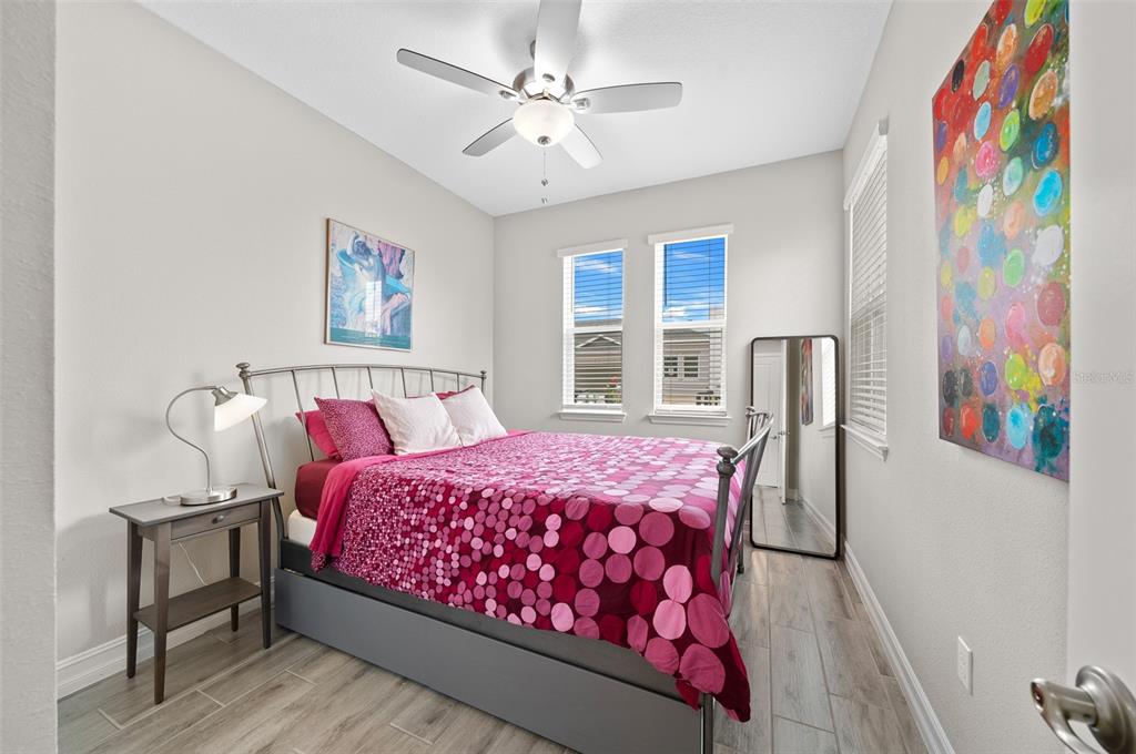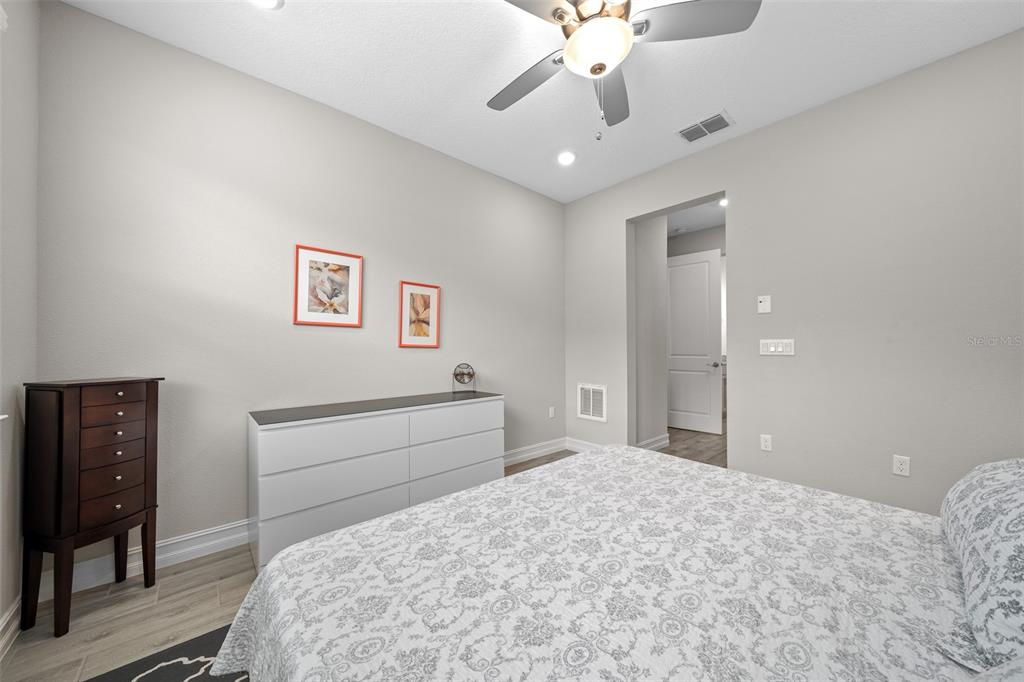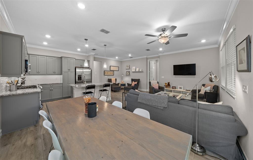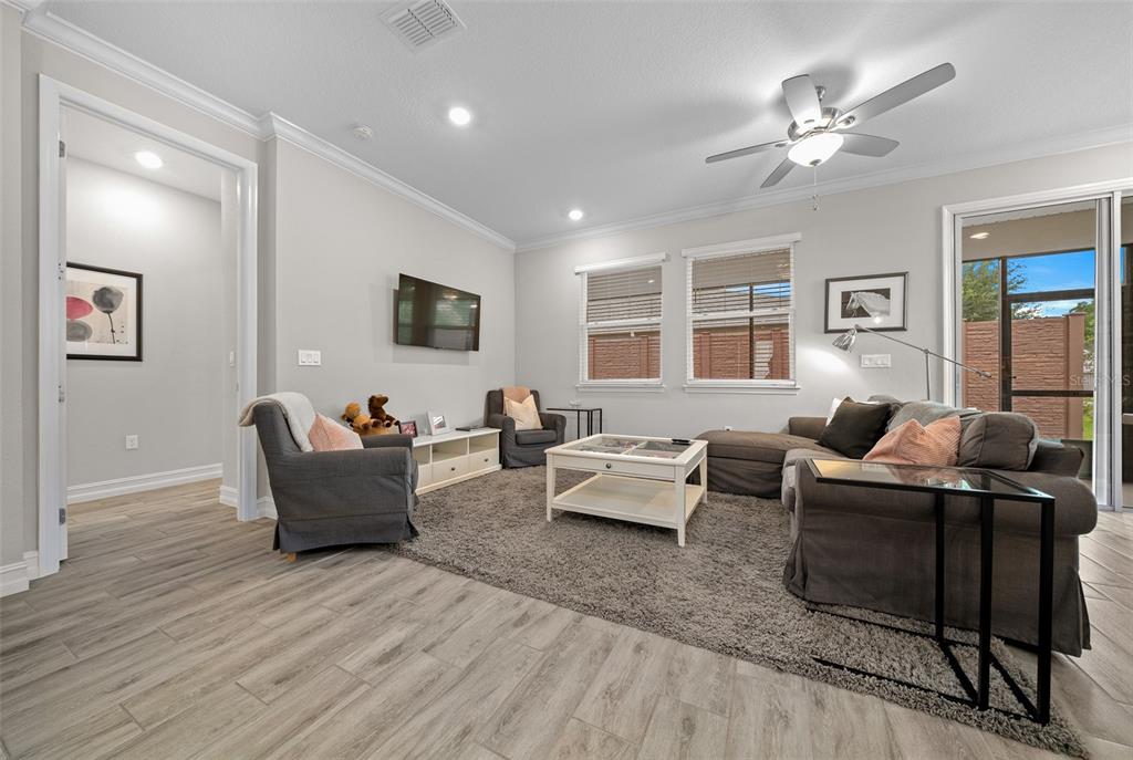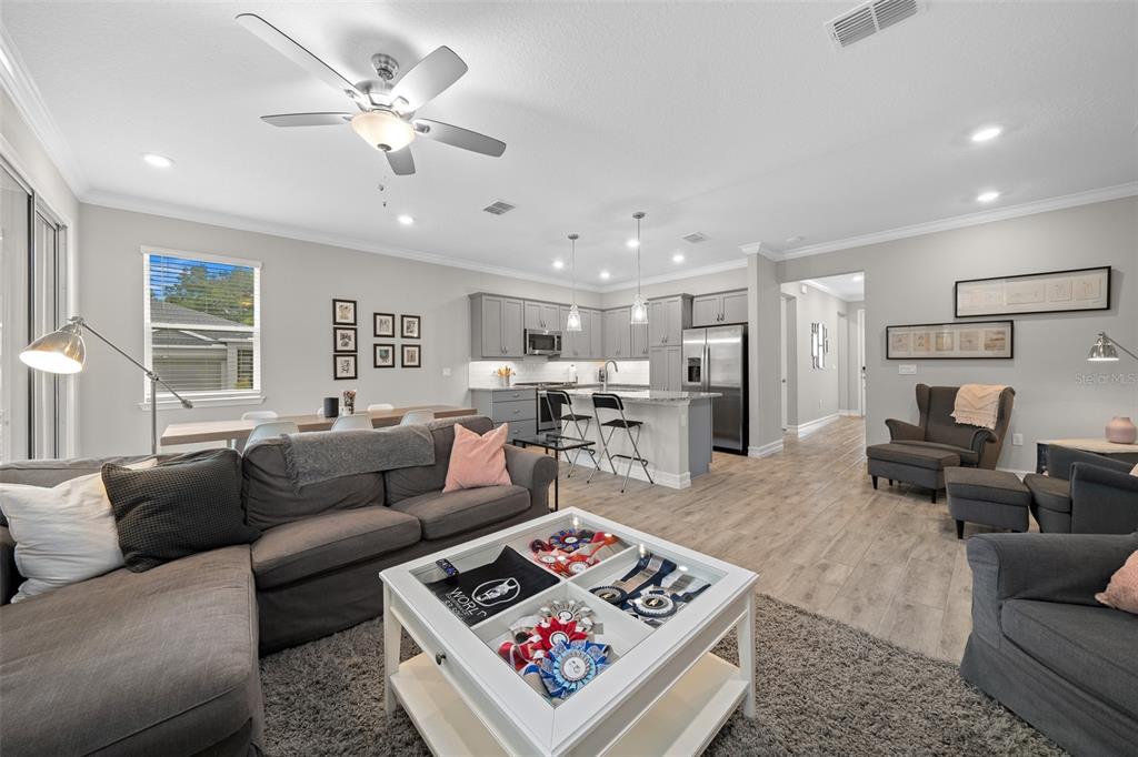 Gorgeous shea built aria villa on rare corner lot! completely turn-key (except for some artwork) - just bring your clothes and toothbrush!! all the features you are looking for such as wood look tile throughout - no carpet - upgraded appliances - light and airy color scheme with light gray cabinets and white subway tile backsplash in kitchen and big single bowl sink! 8' interior doors, crown molding and upgraded glass entry door - water softener - upgraded tile surround in primary bathroom and there's a gasline preplumb at the rear of the home for ease in hooking up a natural gas grill......................................................................hoa covers lawn and landscape maintenance (cutting, edging, trimming, treating, mulching, fertilizing, irrigation system and water for irrigation), high speed internet, membership in all amenities including indoor and outdoor fitness areas, group fitness classes, 20 miles of dedicated trails for walking and biking, bocce, horseshoe, tennis, pickleball, fishing doc, kayaks, canoes, paddleboat. the villas have the added benefit of reserves for future exterior painting, roof replacement as well as periodic pressure washing! as a homeowner you also receive discounts in the on-site restaurant, golf course and space for massages, facials, mani-pedi. this area has no cdd assessments.Villa 2 bedrooms - OCALA PRESERVE PH 18A for Sale