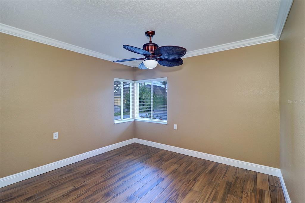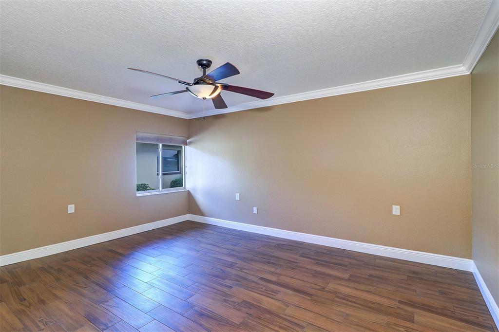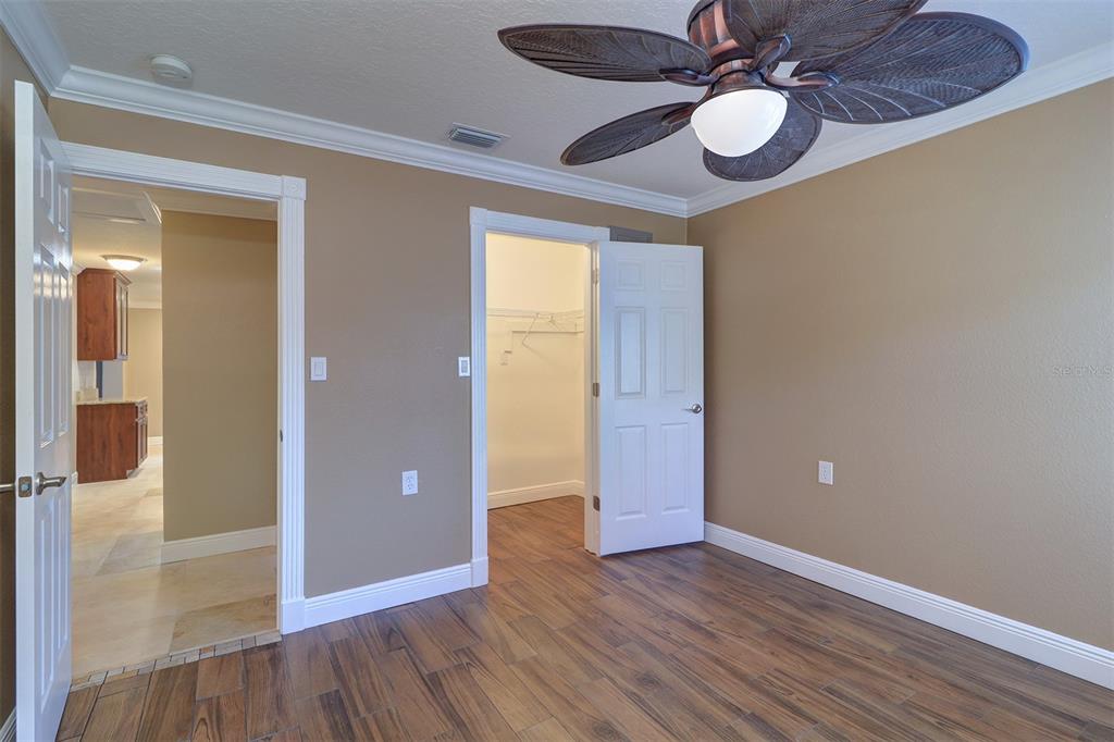 Walk-In Closet(s)Ceiling Fan(s) Solid Surface CountersCrown Molding Coffered Ceiling(s)Exterior Features: