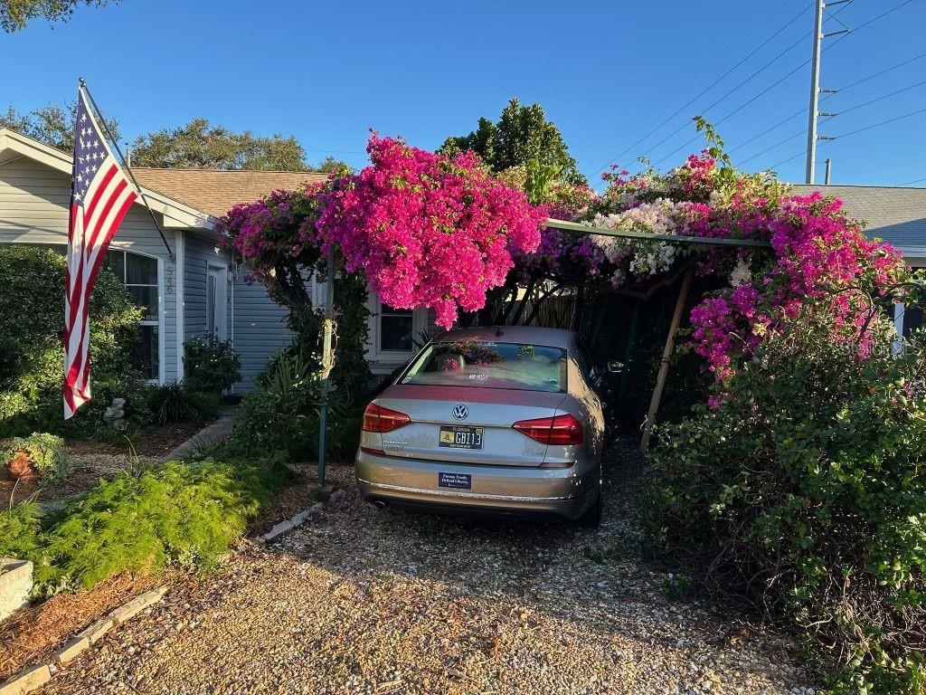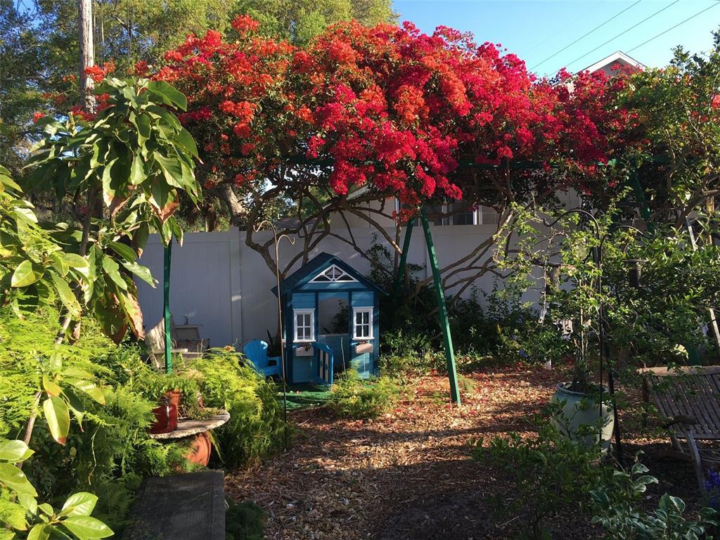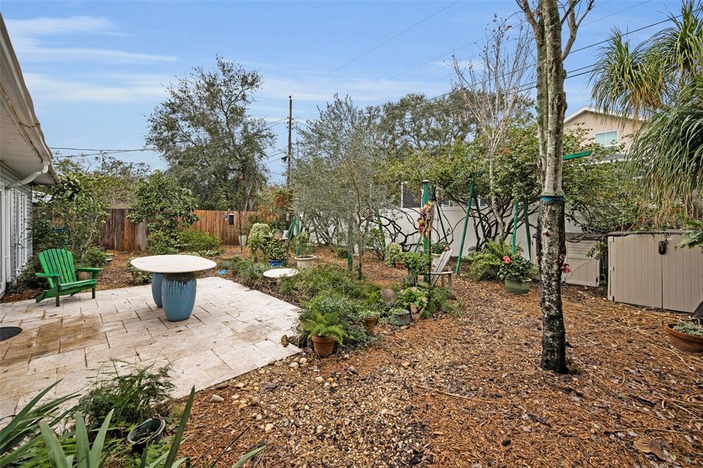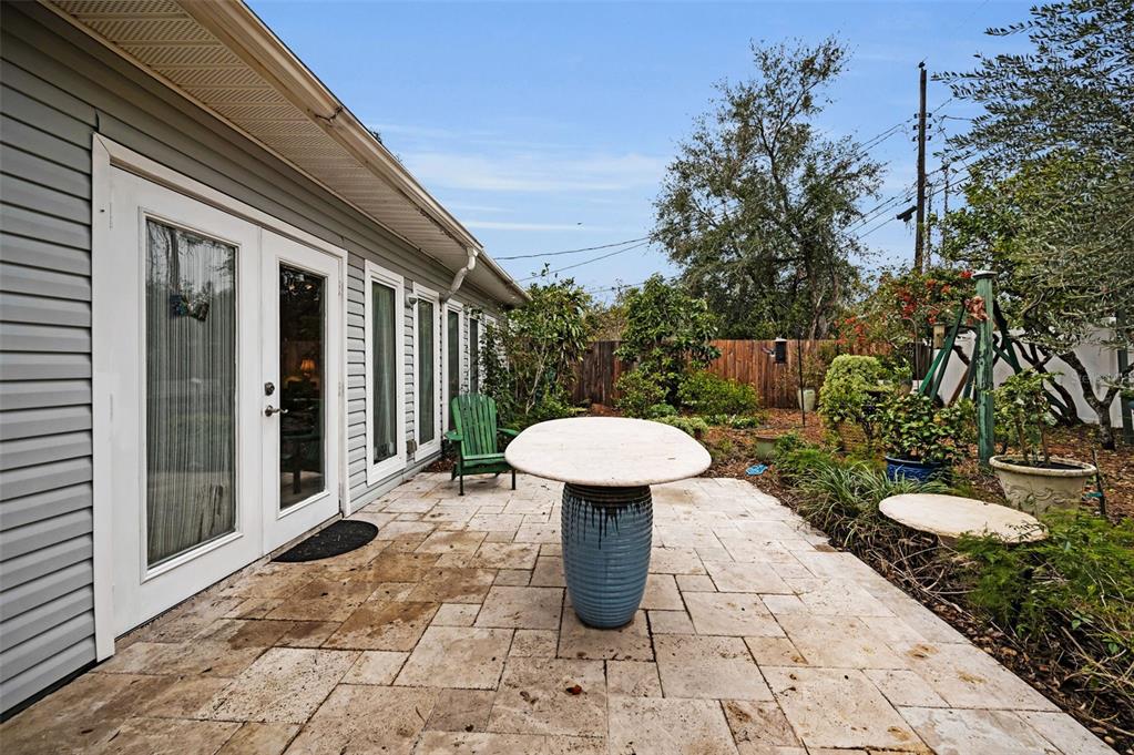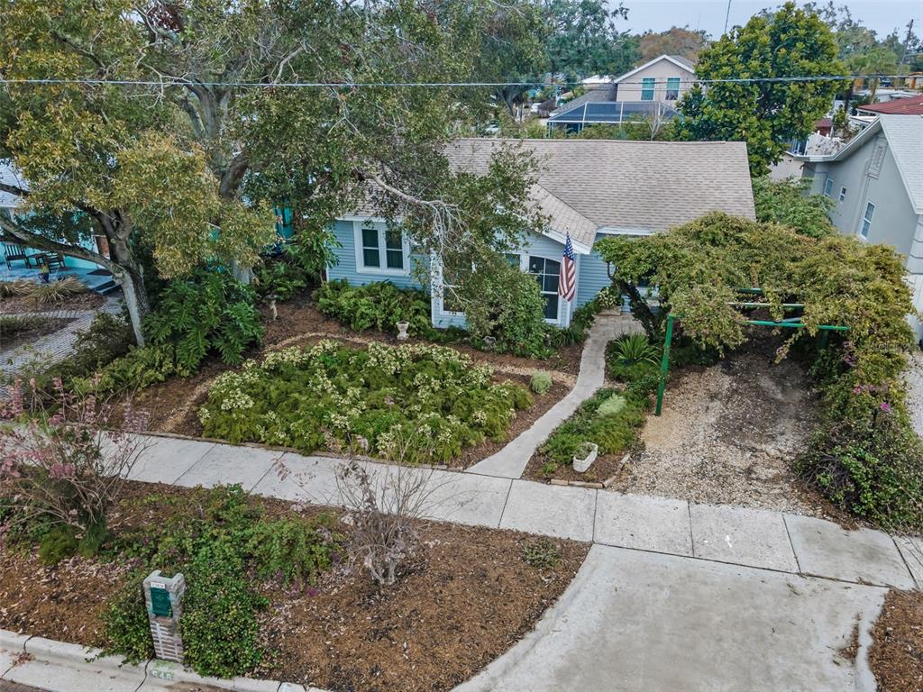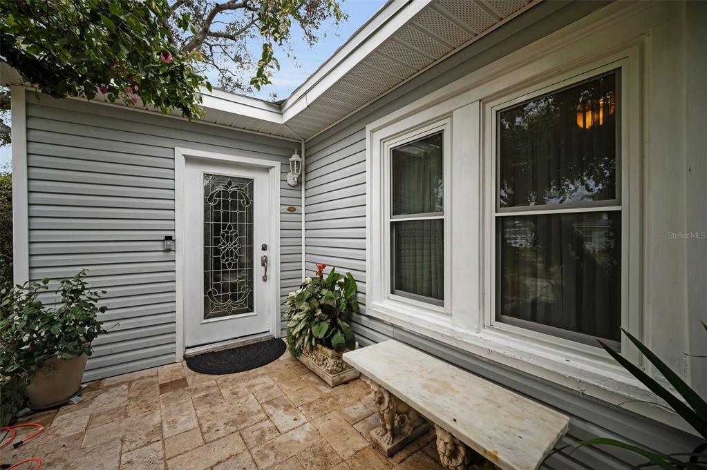 This charming mid-century home offers a blend of classic florida architecture and mediterranean-inspired landscaping. nestled on a picturesque brick-lined street, the property is part of a neighborhood experiencing signifcant revitalization, with new homes that complement the established character. the property boasts rich, mature vegetation, including a bougainvillea arbor that provides shade and vibrant color. the garden features a variety of flowers and fruit tress, such as avocado, orange and lemon trees, evoking the ambience of a mediterranean retreat. a serpentine-shaped travertine walkway and patio lead to the entrance, enhancing the italian villa feel. upon entering through a leaded glass door, you're welcomed into a sunlight-filled sunroom. the home features brazilian walnut porcelain plank tiles, complimented by high baseboards.the centrally located kitchen ensures easy traffic flow, with a split bedroom floorplan offering privacy. the primary bedroom with en-suite bath and soaring cathedral ceilings is infused with natural light. the dining and great rooms adjacent to the kitchen provide views of the patio and expansive garden. extra bonuses, all 3 bedrooms have hurricane impact rated windows and a whole house water softening system with reverse osmosis in the kitchen. the home's prime location offers convenient access to to several local attractions; intracoastal waterway: ideal for water enthusiasts. pinellas bike trail: a popular trail for biking and walking. dunedin library and senior center: community resources within walking distance. edgewater linear park: a scenic waterfront park nearby. downtown dunedin: a vibrant area with shops, restuarants, and cultural events. additionally, families will appreciate the proximty to local schools. this property offers a unique opportunity to own a piece of florida's mid-century charm, enhanced by thoughtful updates and a location that both provides tranqulity and convenience. don't miss the chance to experience this mediterranean-inspired paradise in the heart of dunedin.546 ORANGEWOOD, DUNEDIN, FL 34698