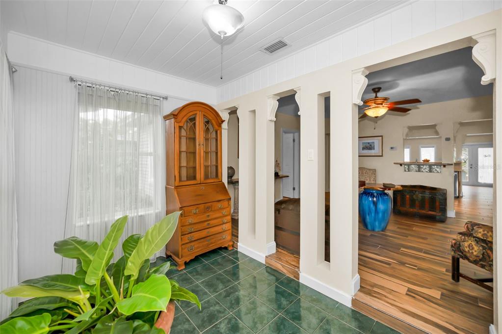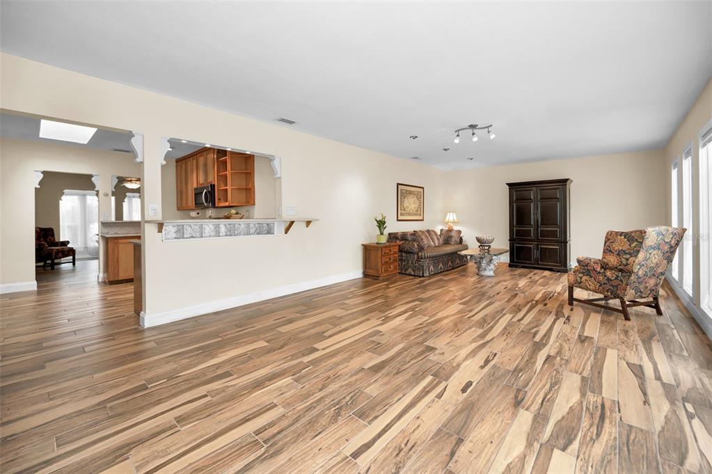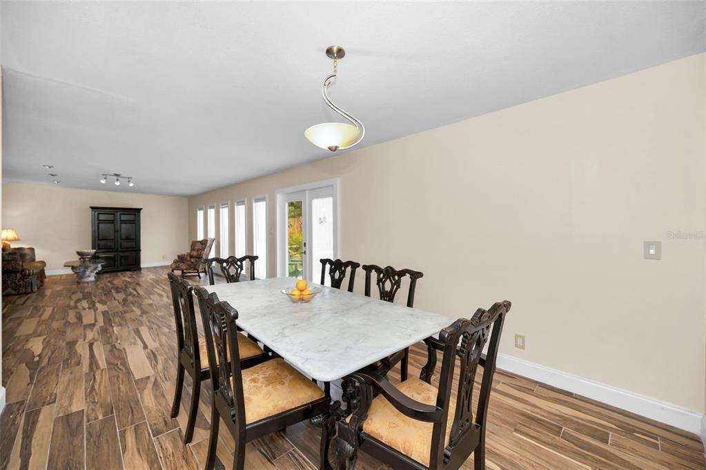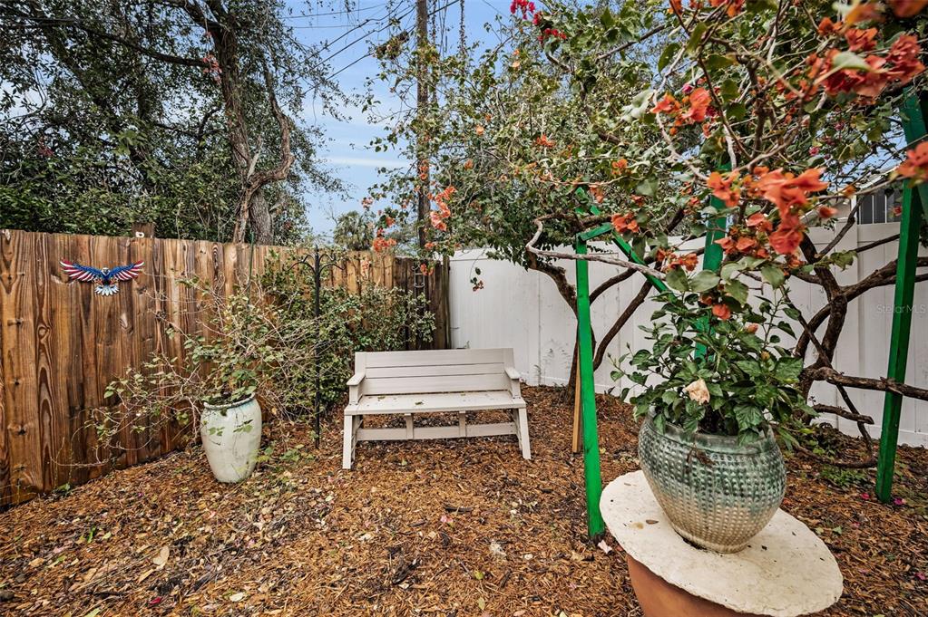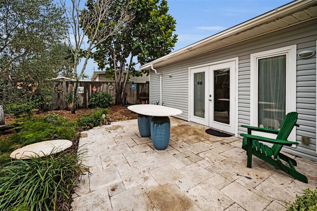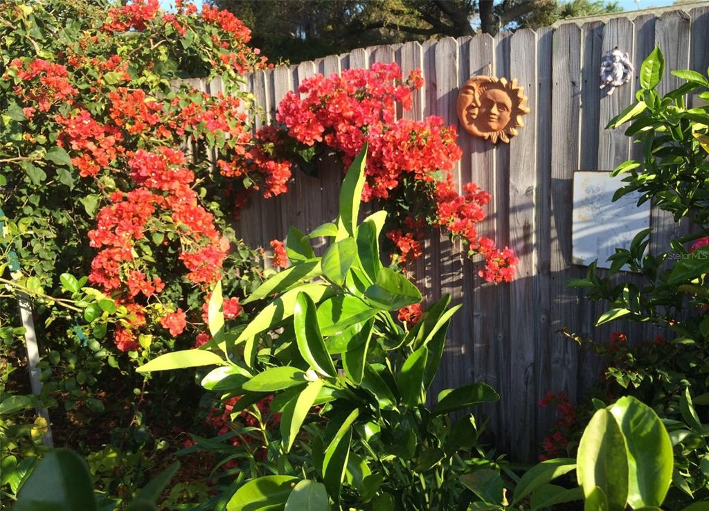 This charming mid-century home offers a blend of classic florida architecture and mediterranean-inspired landscaping. nestled on a picturesque brick-lined street, the property is part of a neighborhood experiencing signifcant revitalization, with new homes that complement the established character. the property boasts rich, mature vegetation, including a bougainvillea arbor that provides shade and vibrant color. the garden features a variety of flowers and fruit tress, such as avocado, orange and lemon trees, evoking the ambience of a mediterranean retreat. a serpentine-shaped travertine walkway and patio lead to the entrance, enhancing the italian villa feel. upon entering through a leaded glass door, you're welcomed into a sunlight-filled sunroom. the home features brazilian walnut porcelain plank tiles, complimented by high baseboards.the centrally located kitchen ensures easy traffic flow, with a split bedroom floorplan offering privacy. the primary bedroom with en-suite bath and soaring cathedral ceilings is infused with natural light. the dining and great rooms adjacent to the kitchen provide views of the patio and expansive garden. extra bonuses, all 3 bedrooms have hurricane impact rated windows and a whole house water softening system with reverse osmosis in the kitchen. the home's prime location offers convenient access to to several local attractions; intracoastal waterway: ideal for water enthusiasts. pinellas bike trail: a popular trail for biking and walking. dunedin library and senior center: community resources within walking distance. edgewater linear park: a scenic waterfront park nearby. downtown dunedin: a vibrant area with shops, restuarants, and cultural events. additionally, families will appreciate the proximty to local schools. this property offers a unique opportunity to own a piece of florida's mid-century charm, enhanced by thoughtful updates and a location that both provides tranqulity and convenience. don't miss the chance to experience this mediterranean-inspired paradise in the heart of dunedin.546 ORANGEWOOD, DUNEDIN, FL 34698