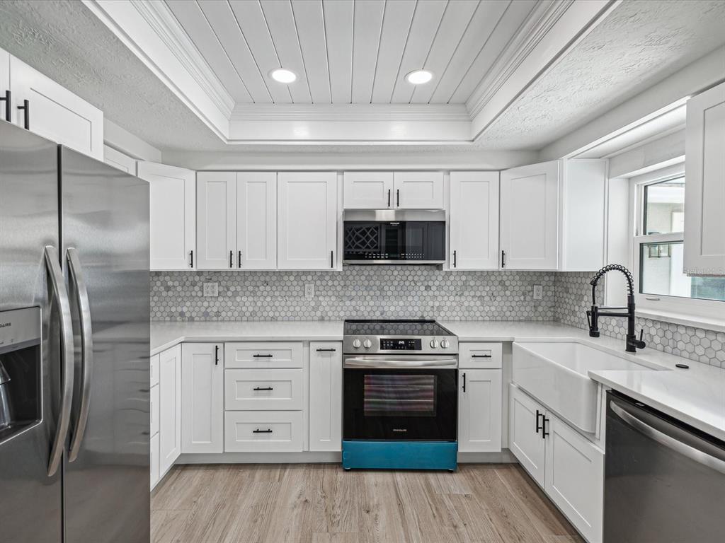 One or more photo(s) has been virtually staged. *motivated seller* all serious offers considered! perfect for a short-term rental opportunity! welcome to this stunning single-family home in the heart of new port richey! this beautifully renovated 3-bedroom, 2-bathroom home has been transformed with no expense spared. light and bright decor will greet you as you step inside, with soft wood tone lighting fixtures and elegant ceramic tile flooring throughout. the attention to detail is evident with single-panel doors and chic black door hardware that add a modern touch. the all-new kitchen is a dream, featuring sleek quartz countertops, a charming farm sink, and custom designed cabinets. the kitchen also boasts a custom-built dry bar complete with a glass and wine rack, a pull-out trash receptacle, and a spacious wall pantry. adjacent to the kitchen, the dining area offers delightful views of the pool and canal, creating a perfect setting for family meals and entertaining guests. the primary suite is a true retreat with vaulted ceilings, a planters ledge, and an oversized walk-in closet. french doors lead directly to the gorgeous pool and patio area. the primary bathroom is equally impressive with an oversized walk-in shower, split vanities, and lighted vanity mirrors for a spa-like experience. this home also features two additional bedrooms and a hall bathroom with a shower/tub combination and a lighted vanity mirror. step outside to your personal oasis where a new saltwater pool awaits, added just two years ago. the pool area is designed for relaxation and fun, featuring a tanning ledge with one detachable lounger, a side table with a hidden ice bucket for summer drinks, an umbrella stand, a spa hot tub, and additional water features. located in the charming city of new port richey, this home is just minutes from the historic downtown area, known for its vibrant restaurants, breweries, wine bars, tea rooms, boutiques, and more. it’s also conveniently located near parks, schools, and shopping, and is just 30 miles from tampa international airport. don’t miss the opportunity to own this meticulously renovated home that blends modern luxury with comfortable living. schedule your showing today! the home is being sold without appliances. a $3,500 appliance credit is available.5512 TROPIC, NEW PORT RICHEY, FL 34653