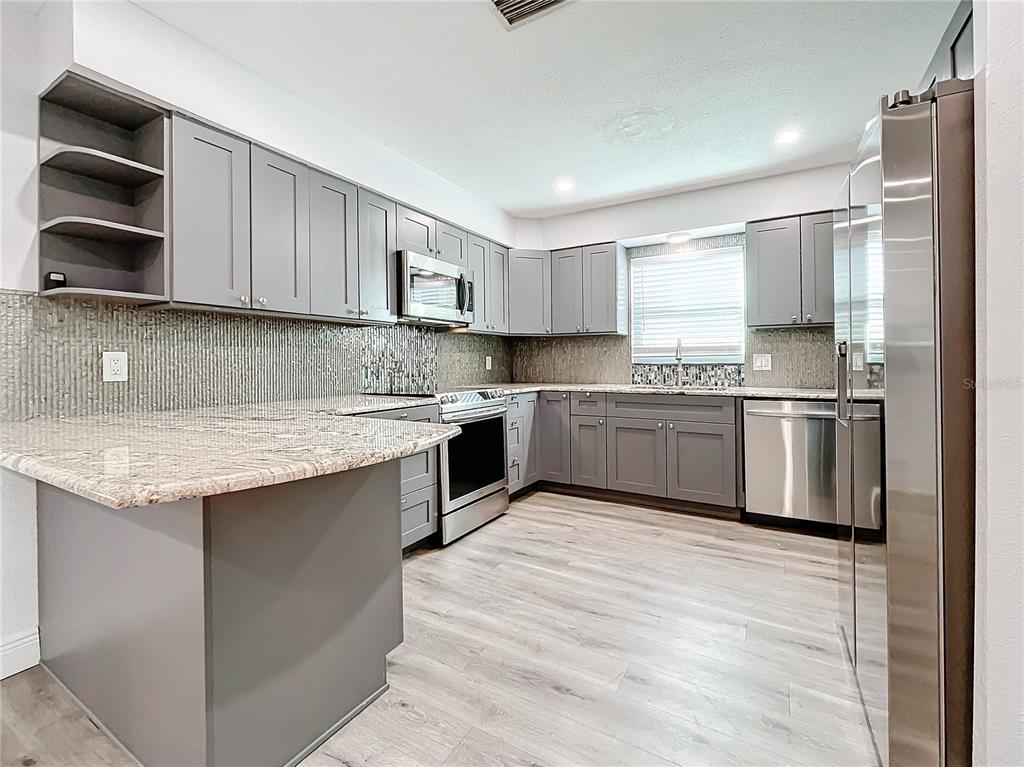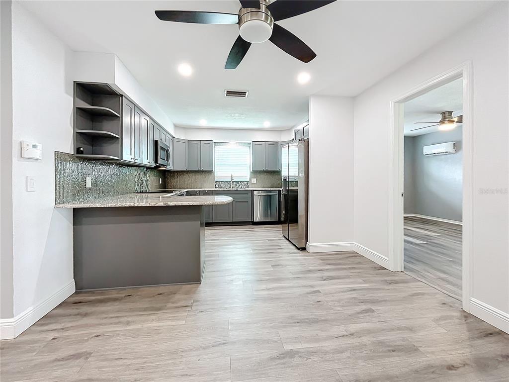One or more photo(s) has been virtually staged. looking for high & dry and no flood insurance required? this move in ready 3br/2ba on large lot in central st. pete fits the bill and more! freshly painted, new laminate flooring, screened front porch and large enclosed back porch with its own mini split. kitchen/dining area has high end stainless appliances, granite counter tops & ample cabinet storage. garage even has its own mini split, full bath with shower, w/d hookup and storage areas. easy to use the garage as a in law unit with it's own entrance and private bath. *4 mini splits are all heat pumps, each with its own compressor and allows temperature control in each zone. the central hvac is a heat pump with installed air sanitizer. also, there is a whole house soft water filtration system, on demand electric hot water heater, new well pump and new irrigation controller. the large private backyard comes with an 8x10 storage shed with hookup for whole house generator. the 10x10 framed shed would make a great workshop with power already installed. the house also has a new main sewer line, all new water lines, new electrical panel with generator switch, and replaced with hurricane impact windows. a small generator will power one or more mini splits as well as refrigerator, lights, etc. everything permitted by contractor. the house is like new construction but at a savings! all these extra perks will make for energy savings as well as peace of mind with the added convenience of being minutes from tyrone square mall, gulf beaches and downtown st. pete!5529 11TH N, ST PETERSBURG, FL 33710