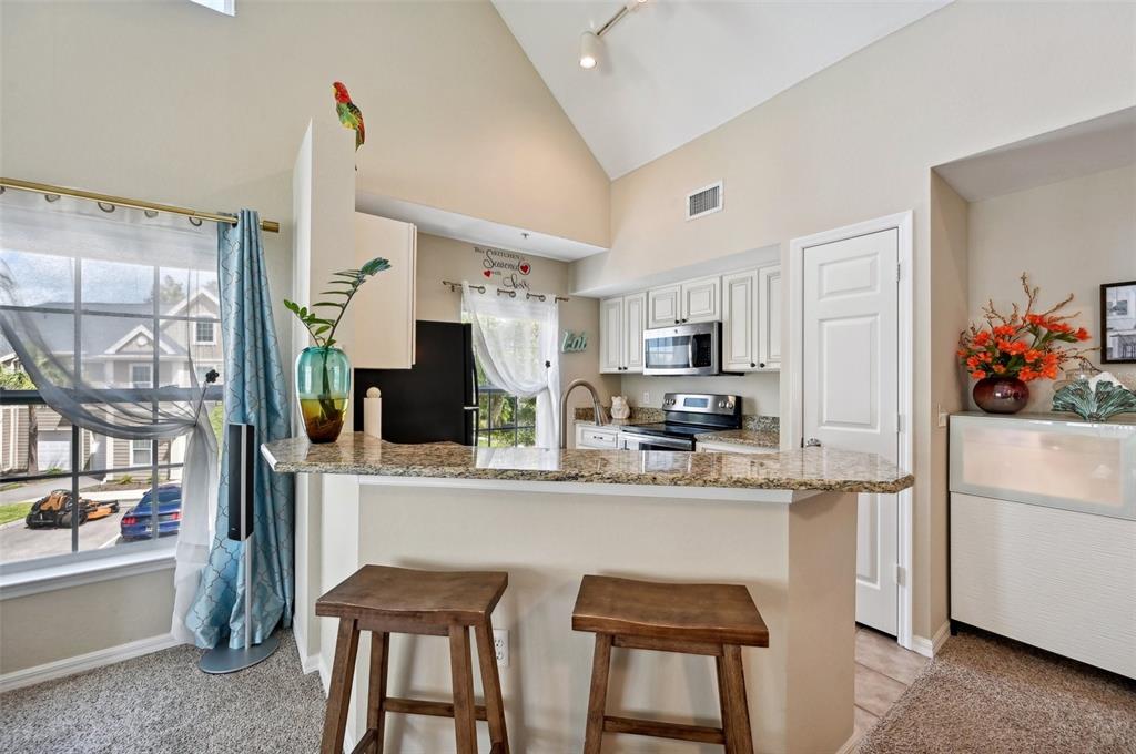 Move-in ready! discover the charm of this beautifully renovated 2-bedroom, 2-bath condo with a versatile loft/den. enjoy tranquil lake views and modern upgrades, including granite countertops, a newer sink, a newer microwave, and a brand new ac system with a smart thermostat installed in 2023. fresh paint, newer carpet, and new lighting features throughout add to the appeal. the living room, dining area, and chef’s kitchen are enhanced by soaring volume ceilings, creating an open and inviting atmosphere. both bedrooms feature spacious walk-in closets, while the primary suite boasts a private bath with a relaxing garden tub. the loft area offers flexibility, perfect as a den, office, or even a third bedroom. recent exterior updates include a new roof, siding, and paint, ensuring peace of mind. nestled in the charming, gated community of admirals walk, this home offers a range of amenities, including a community pool, spa, recreational and billiard room, fitness center, playground, and on-site management. conveniently located near i-75, shopping, medical facilities, restaurants, and just a short drive to siesta key beach, this condo is the perfect blend of comfort and convenience.5591 ROSEHILL #203, SARASOTA, FL 34233